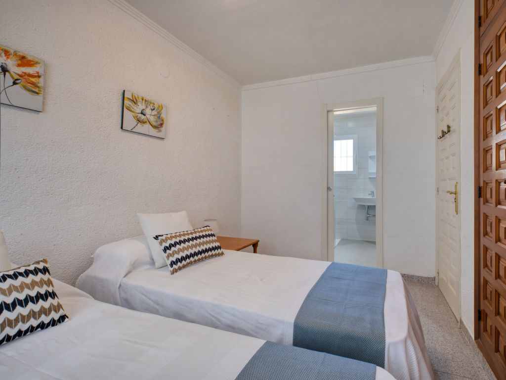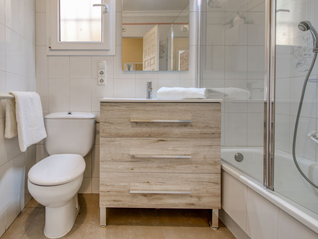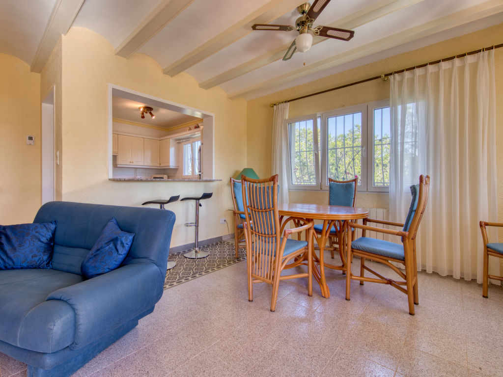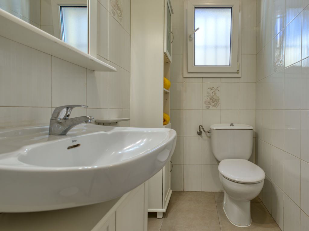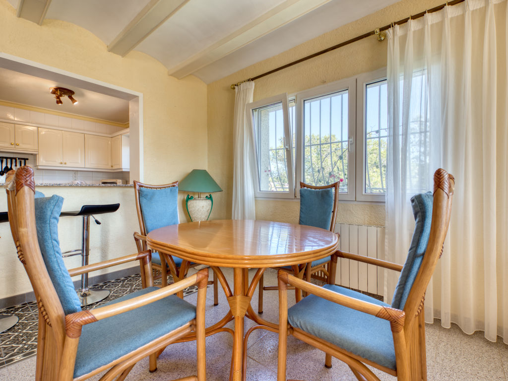 4-Zimmer-Haus 130 m2. Hell, zweckmässig und komfortabel eingerichtet: Obergeschoss: Wohn-/Esszimmer mit TV. 2 Zimmer, jedes Zimmer mit 1 franz. Bett und Klimaanlage. 1 Zimmer mit 2 Betten und Dusche. Offene Küche (Backofen, Geschirrspüler, Mikrowelle, Tiefkühler). Bad/WC, sep. WC. Terrassenmöbel, Gartengrill, Liegestühle (6). Zur Verfügung: Waschmaschine. Internet (Wireless LAN, gratis). Parkplatz (überdacht, eingezäunt) beim Haus. Bitte beachten: geeignet für Familien. Nichtraucher-Haus. TV nur ES, FR. AT446961