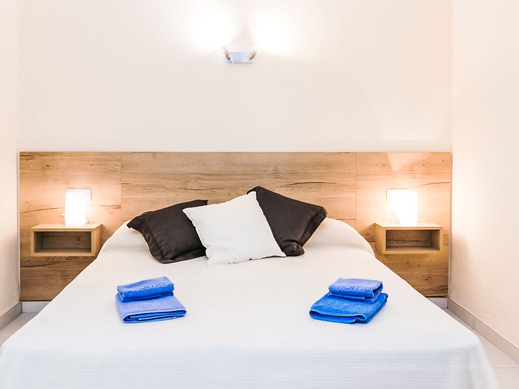 2-Zimmer-Wohnung 35 m2. Vollständig renoviert im Jahre 2018, modern und gemütlich eingerichtet: Wohn-/Esszimmer mit 1 Diwanbett und Sat-TV (Flachbildschirm). 1 Zimmer mit 2 Betten (90 cm, Länge 190 cm). Offene Küche (2 Glaskeramikherd Platten, Mikrowelle, Tiefkühler, elektrische Kaffeemaschine). Dusche/WC. Terrassenmöbel. Zur Verfügung: Waschmaschine. Internet (Wireless LAN, gratis). Bitte beachten: kein Parkplatz. Bitte beachten: Es gibt keinen paking und private Terrasse. Bitte beachten : Wohnungen ohne Heizung. HUTG007511