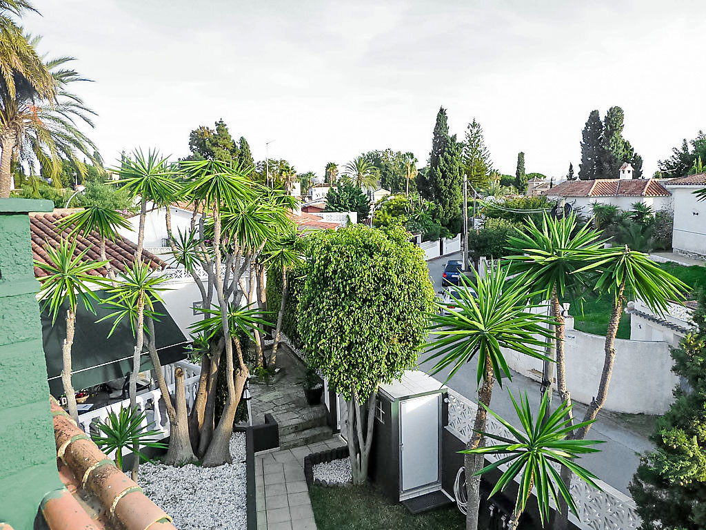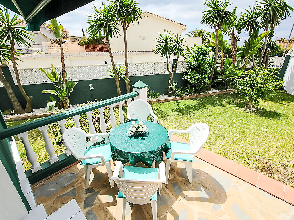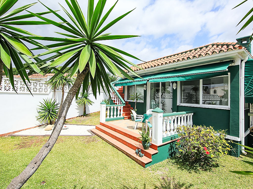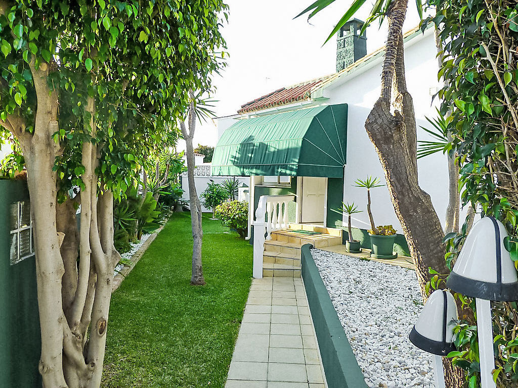 Urb. Costabella: Doppelhaus "Costabella". 5 km vom Zentrum von Marbella, 300 m vom Meer. Zur Alleinbenutzung: Garten 200 m2 mit Rasen, Schwimmbad (6 x 2 m, 01.01.-31.12.). Ungleichmässige Schwimmbadform, Aussendusche, Einzelgarage. Parkplatz/Garage nur für kleine - mittlere Fahrzeuge geeignet. Supermarkt 500 m, Restaurant, Bushaltestelle 200 m, Sandstrand 300 m. Golfplatz 2 km, Tennis 600 m. Diskothek 100 m. Das Schwimmbad (dreieckig) es wird mit Solar-Energie beheizt. Automatische Bewässerung. Das Haus wird von Abends bis früh Morgen´s elektrisch beleuchtet.