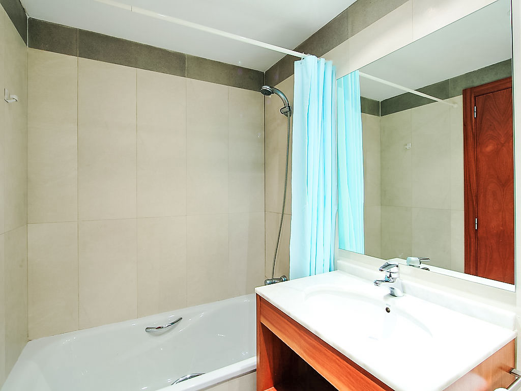 "Elegance", 2-Zimmer-Wohnung 51 m2 im 5. Stock, Ostlage. Geräumig und hell, zweckmässig eingerichtet: Wohn-/Esszimmer 19 m2 mit 1 Doppeldiwanbett, Digital-TV, Klimaanlage und Warmluftheizung. Ausgang zur Terrasse. 1 Zimmer 10 m2 mit 2 Betten (80 cm, Länge 190 cm). Offene Küche (Backofen, 4 Glaskeramikherd Platten, Toaster, Wasserkocher, Mikrowelle, Tiefkühler, elektrische Kaffeemaschine). Bad/WC. Boiler (50 Liter). Terrasse 10 m2. Terrassenmöbel. Sicht auf das Schwimmbad. Zur Verfügung: Waschmaschine, Bügeleisen, Haartrockner. Garage Nr. 255. 1 Haustier/Hund erlaubt. AT428539A