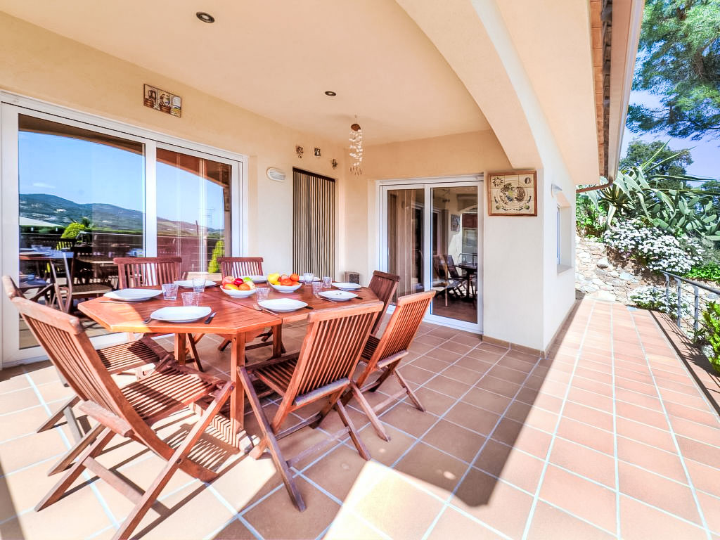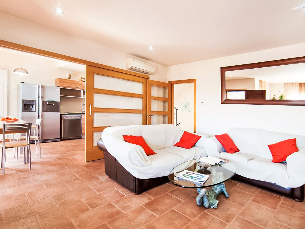5-Zimmer-Haus 180 m2 auf 3 Stockwerken. Zweckmässig eingerichtet: Wohn-/Esszimmer mit Digital-TV, Klimaanlage und Ventilator. Küche (Backofen, Geschirrspüler, 4 Glaskeramikherd Platten, Toaster, Wasserkocher, Mikrowelle, elektrische Kaffeemaschine). Ausgang zur Terrasse. Sep. WC. Obergeschoss: 2 Zimmer, jedes Zimmer mit 2 Betten. 1 Zimmer mit 1 franz. Bett und Dusche/WC. 1 Zimmer mit 1 franz. Bett, Bad/Dusche/WC, TV und Klimaanlage. Ausgang zur Terrasse. Dusche/WC. Parkettböden. 2 Terrassen. Terrassenmöbel, Liegestühle (6). Herrliche Sicht auf das Meer. Zur Verfügung: Waschmaschine, Kinderhochstuhl, Babybett bis 2 Jahre. Internet (Wireless LAN, gratis). Bitte beachten: Nichtraucher-Haus. 1 Haustier/Hund erlaubt. TV nur ES. HUTG000265