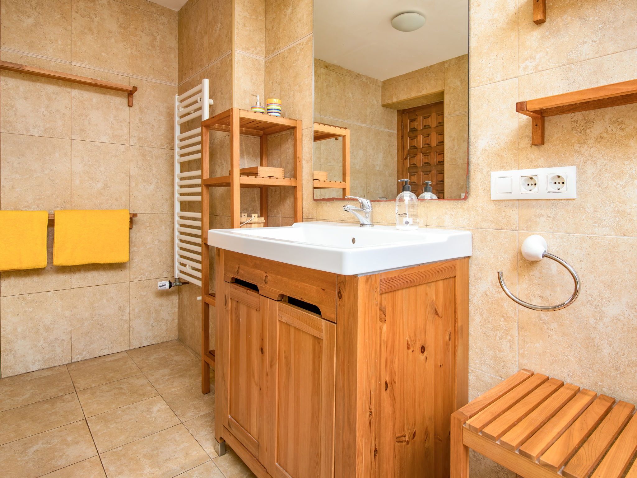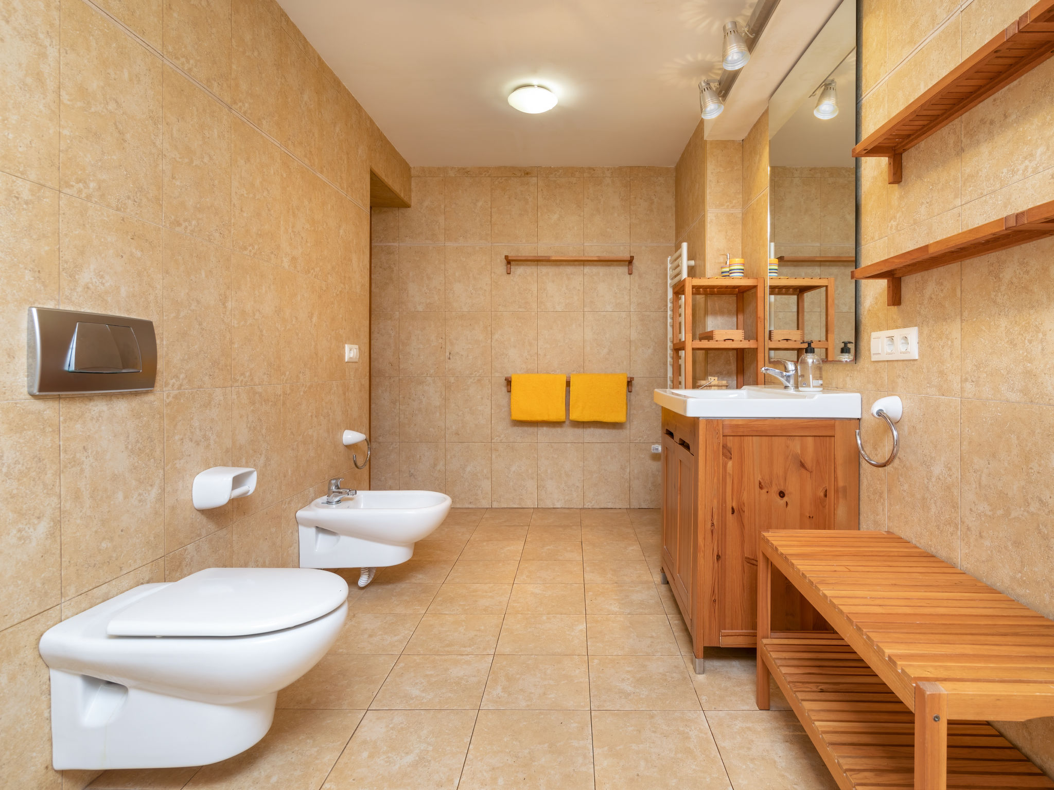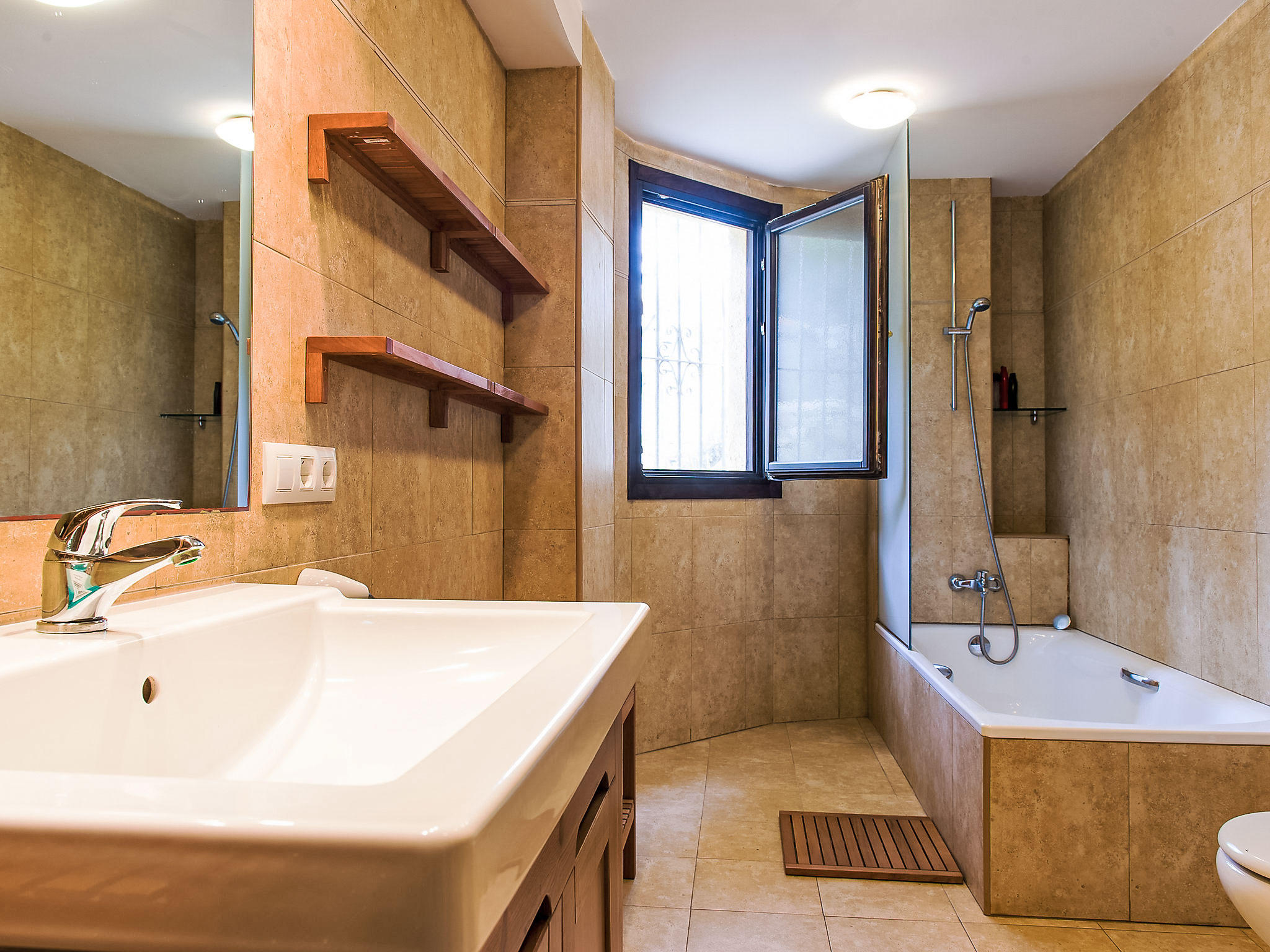 3-Zimmer-Haus 68 m2, unteres Geschoss. Zweckmässig eingerichtet: Wohn-/Esszimmer mit Sat-TV (Flachbildschirm). 1 Zimmer mit 1 Doppelbett (2 x 90 cm, Länge 200 cm), sep. WC. 1 Zimmer mit 1 Ausziehbett (2 Pers. 2 x 90 cm, Länge 190 cm). Offene Küche (Backofen, Geschirrspüler, 5 Glaskeramikherd Platten, Toaster, Wasserkocher, elektrische Kaffeemaschine). Bad/Bidet/WC. Heizung (extra). Terrasse überdacht. Terrassenmöbel, Liegestühle (4). Herrliche Panoramasicht auf das Meer. Zur Verfügung: Waschmaschine, Wäschetrockner, Bügeleisen, Haartrockner. Internet (Wireless LAN, gratis). Bitte beachten: für Kleinkinder nicht geeignet. TV nur DE. Bitte beachten Sie: Das Haus hat keine nationalen Kanäle. AT445137A