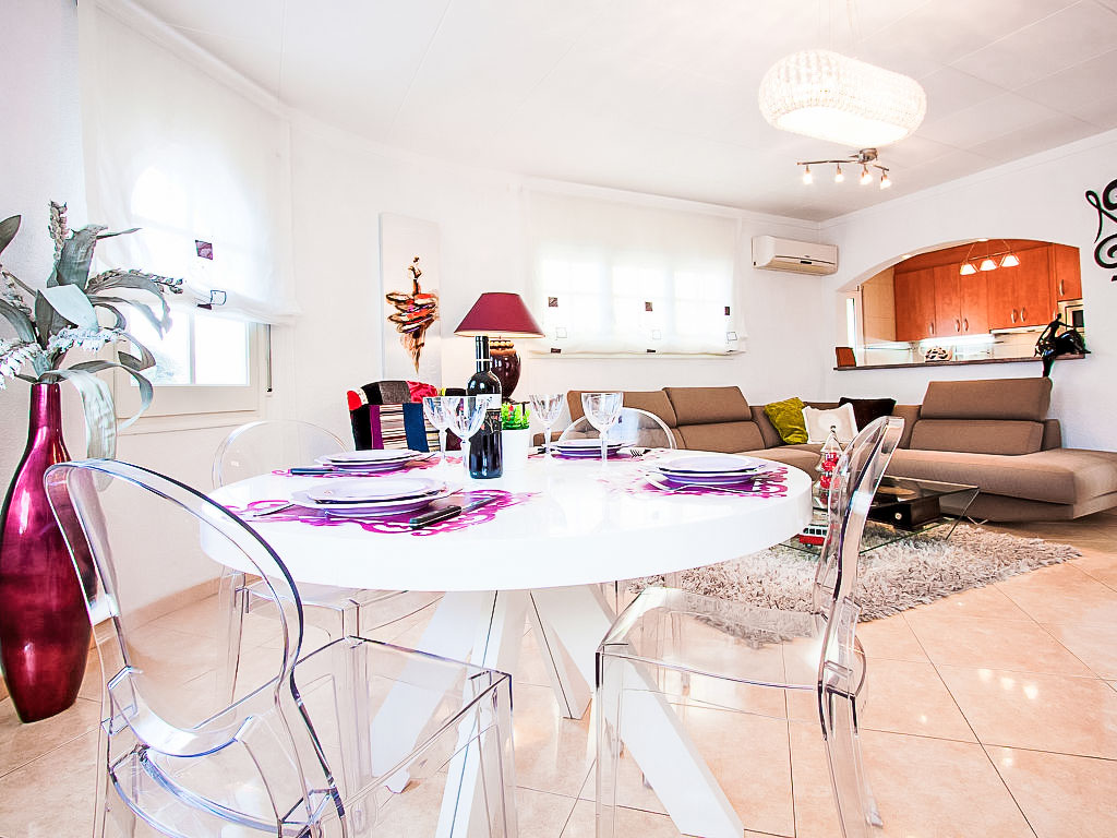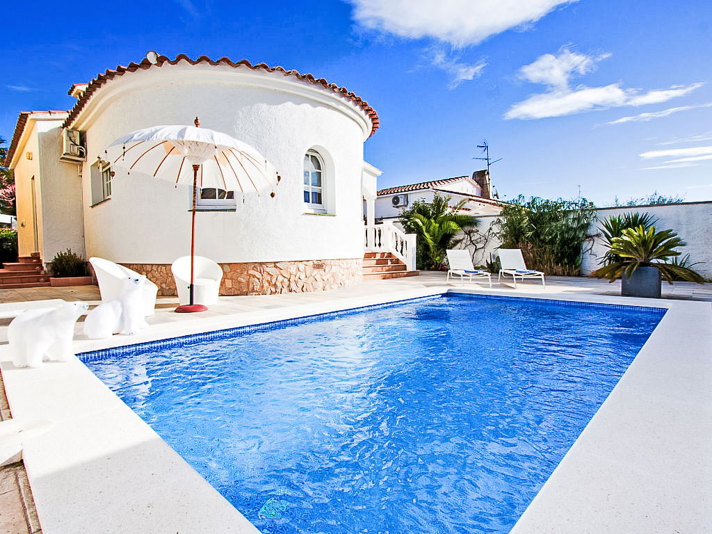 Schönes, komfortables Haus "Reynaud". Im Ortsteil Pení, 1 km vom Zentrum von Empuriabrava, ruhige, sonnige Lage im Villenviertel, verkehrsberuhigte Zone, 1.5 km vom Meer, 180 m vom Kanal, Richtung Südwesten. Zur Alleinbenutzung: Schwimmbad eckig (4 x 7 m, 01.04.-30.10.). Terrasse, Gartenmöbel, Grill, Grillhaus, Parkplatz, öffentliche Parkplätze auf der Strasse. Lebensmittelgeschäft, Supermarkt 300 m, Einkaufszentrum 2 km, Restaurant 300 m, Bar 200 m, Bushaltestelle 2 km, Sandstrand "Empuriabrava" 1.5 km. Sporthafen 1.7 km, Golfplatz 12 km, Tennis 2 km, Minigolf 750 m, Reitstall 3 km. Nahe gelegene Sehenswürdigkeiten: Centro Aerodromo y túnel del viento 1 km, Parque Acuático Roses 10 km, Casino y festival de Perelada 12 km, Museo Dalí de Figueres 15 km, Ruïnes de Sant Martí de Empuries 21 km, Monasterio de Sant Pere de Rodes 23 km. Jugendgruppen nur auf Anfrage.