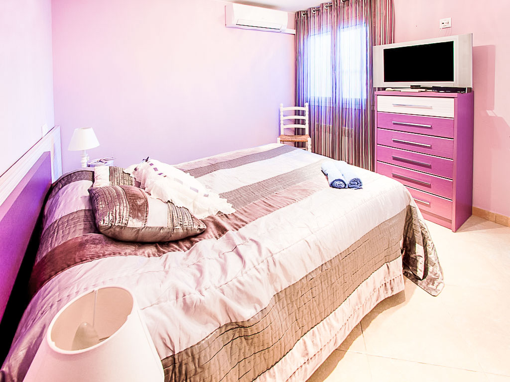 4-Zimmer-Haus 72 m2, Südwestlage. Geräumig und hell, komfortabel und modern eingerichtet: Wohn-/Esszimmer mit Esstisch, Sat-TV, Digital-TV, Klimaanlage und Warmluftheizung. Ausgang zur Terrasse, zum Schwimmbad, Richtung Süden und Richtung Westen. 2 Zimmer, jedes Zimmer mit 1 franz. Bett, Klimaanlage und Warmluftheizung. 1 Zimmer mit 1 franz. Bett, Dusche/WC, TV, Klimaanlage und Warmluftheizung. Küche (Backofen, Geschirrspüler, 4 Induktionskochplatten, Mikrowelle, Tiefkühler, elektrische Kaffeemaschine). Dusche/Bidet/WC, sep. WC. Laube. Terrassenmöbel, Gartengrill, Liegestühle (2). Sicht auf das Schwimmbad. Zur Verfügung: Waschmaschine. Internet (Wireless LAN, gratis). Parkplatz Nr. fuera del terreno beim Haus. Bitte beachten: geeignet für Familien ein Doppelzimmer liegt außerhalb der Wohnung. TV nur FR, ES, DE. HUTG025952