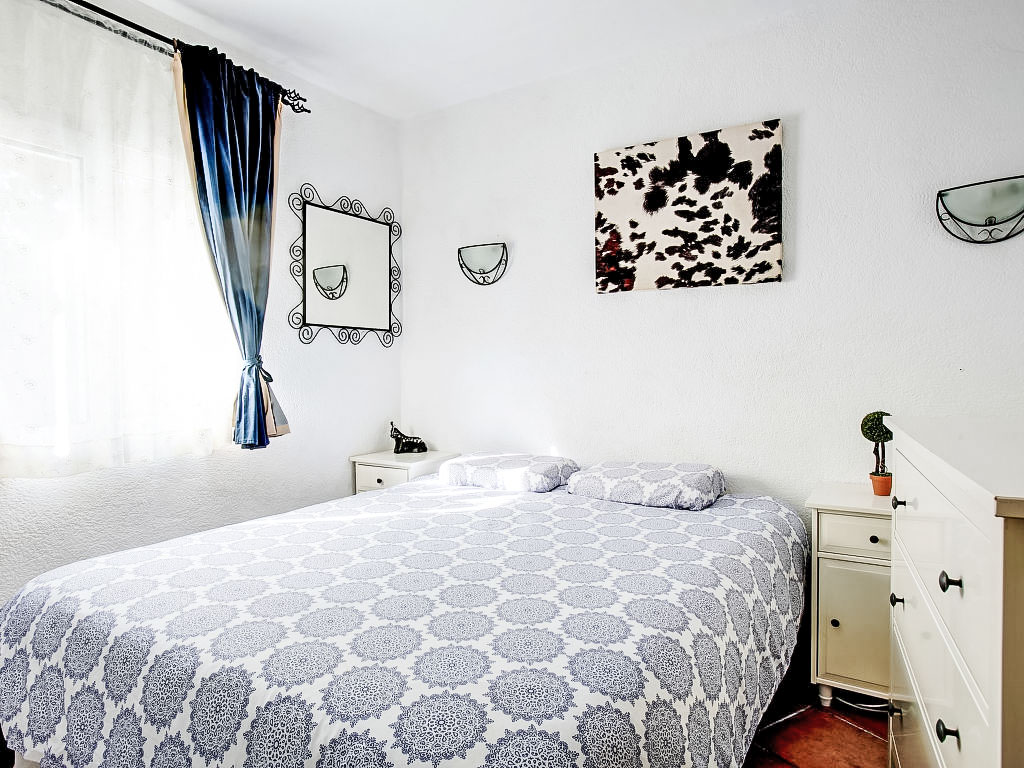 "Oasis Beach", 3-Zimmer-Wohnung. Komfortabel und gemütlich eingerichtet: Wohn-/Esszimmer mit Digital-TV, Klimaanlage und Warmluftheizung. Ausgang zur Terrasse. 1 Zimmer mit 1 franz. Bett (135 cm, Länge 190 cm). 1 Zimmer mit 1 Bett (90 cm, Länge 190 cm). Offene Küche (Geschirrspüler, 4 Glaskeramikherd Platten, Mikrowelle, Tiefkühler, elektrische Kaffeemaschine) mit Klimaanlage und Warmluftheizung. Ausgang zur Terrasse. Dusche/WC. Zur Verfügung: Waschmaschine, Bügeleisen, Haartrockner. 1 Haustier/Hund erlaubt. AT-458532-A