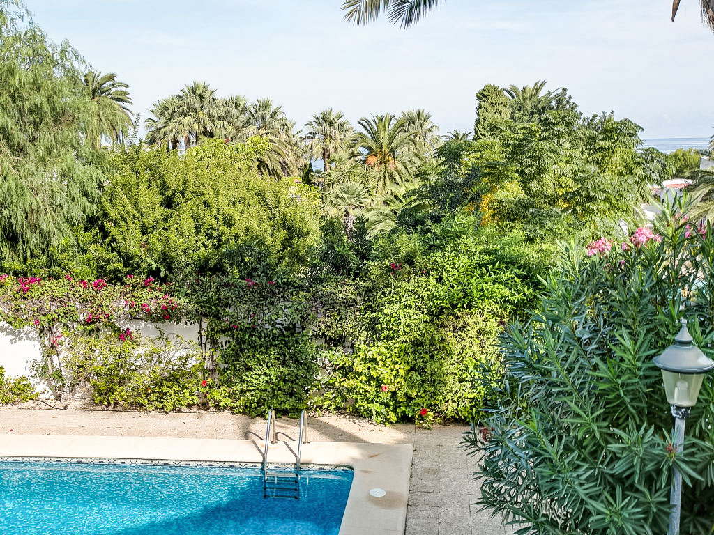 Gemütliche Residenz "Oasis Beach". Am Ortsrand, 1.5 km vom Zentrum von Denia, ruhige Lage, 200 m vom Meer. Zur Mitbenutzung: schöner, gepflegter Garten (eingezäunt) mit Rasen und Pflanzen, Schwimmbad (12 x 5 m, saisonale Verfügbarkeit: 01.Jan.-31.Dez.) mit Innentreppe. Aussendusche, Parkplatz. Supermarkt, Restaurant, Bar, Café 600 m, Sandstrand 300 m. Sporthafen 500 m, Golfplatz (18 Loch) 5 km, Tennis 3 km.