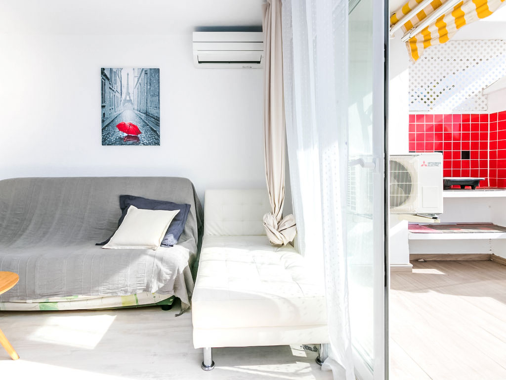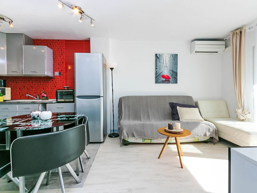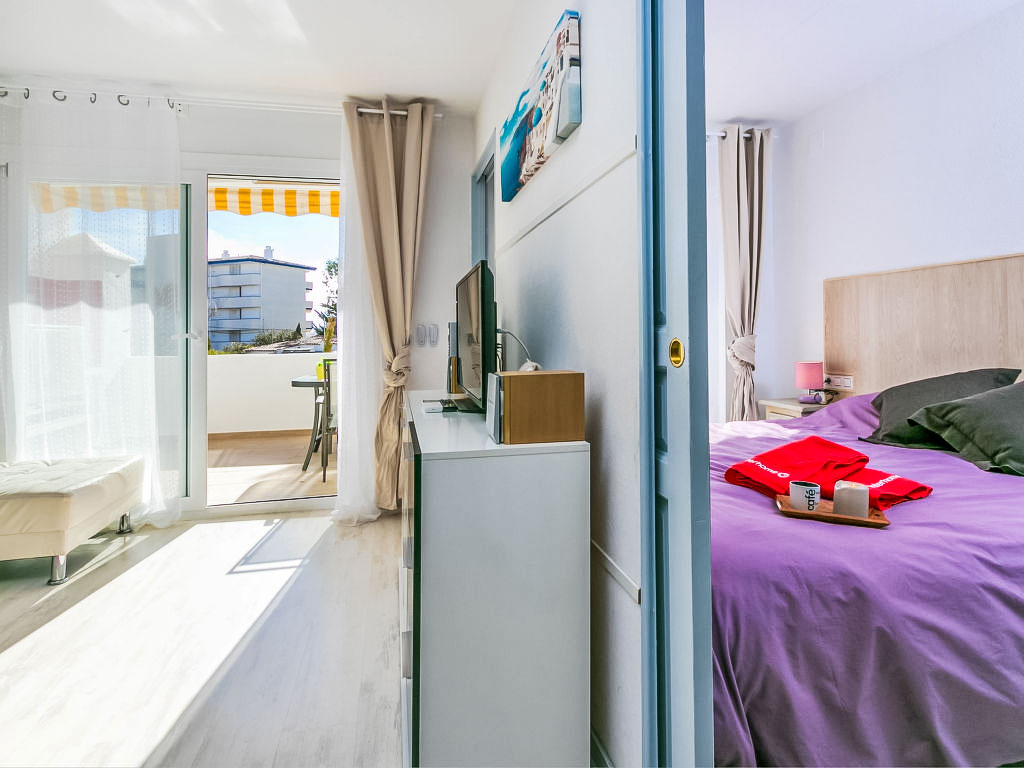 2-Zimmer-Wohnung 37 m2, Südostlage. Hell, zweckmässig und schön eingerichtet: Wohn-/Esszimmer mit 1 Doppeldiwanbett, Esstisch, Sat-TV und Digital-TV (Flachbildschirm), Klimaanlage und Warmluftheizung. Ausgang zur Terrasse, Richtung Süden und Richtung Osten. 1 Zimmer mit 1 franz. Bett. Ausgang zur Terrasse. Offene Küche (3 Glaskeramikherd Platten, Mikrowelle, Tiefkühler, elektrische Kaffeemaschine). Bad/WC. Grosse Terrasse 16 m2. Terrassenmöbel, Elektrogrill. Sicht auf die Stadt. Zur Verfügung: Waschmaschine. Bitte beachten: 1 Haustier/Hund erlaubt. TV nur ES, FR, DE. HUTG028553