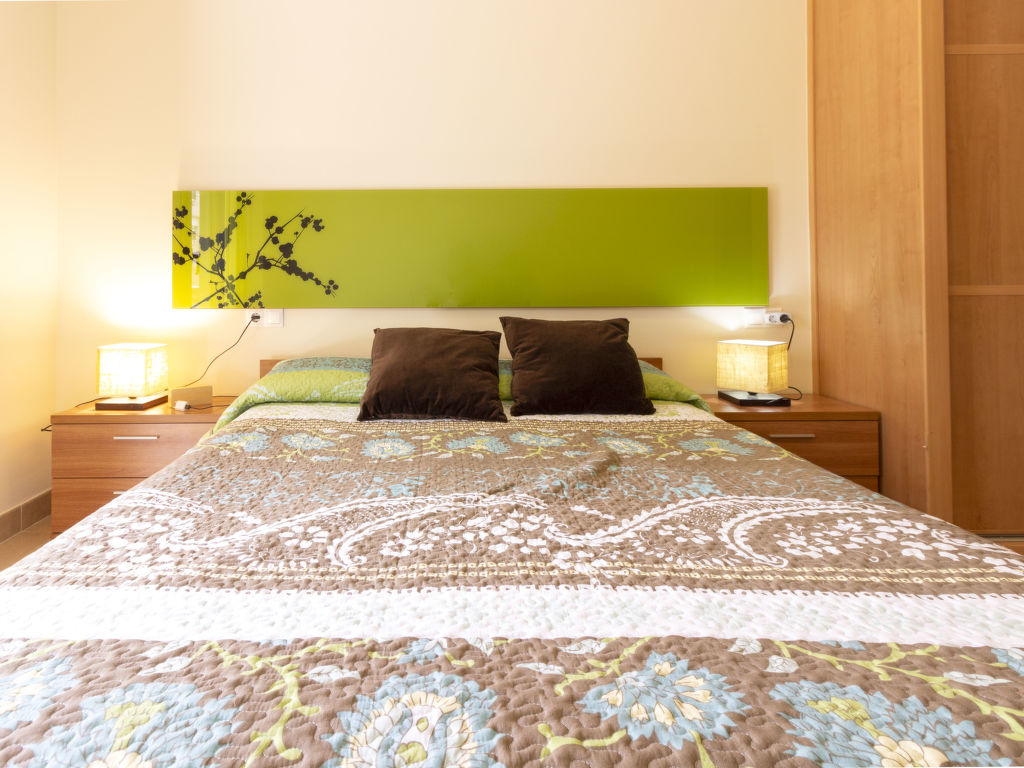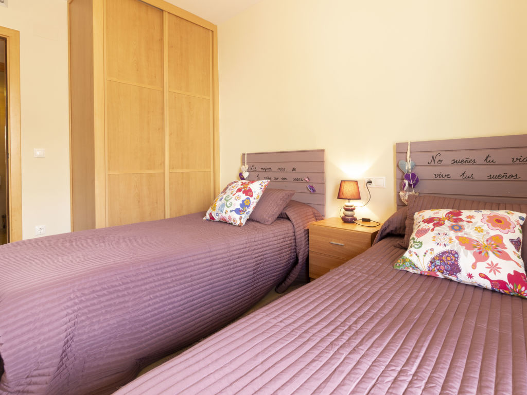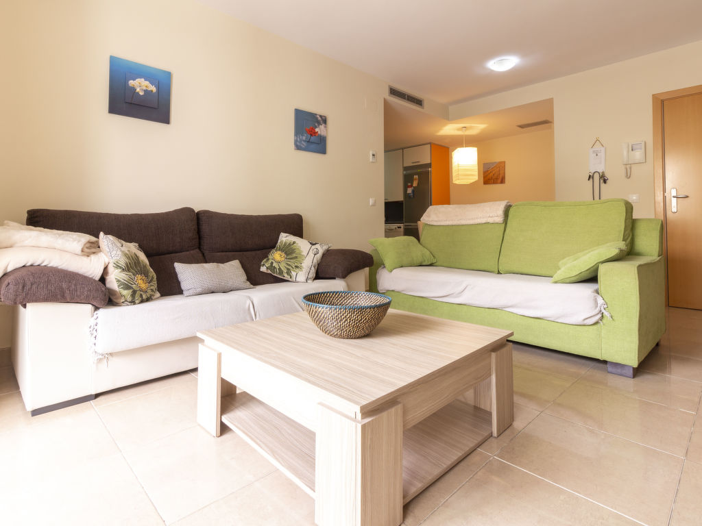 "La Goleta bajos", 4-Zimmer-Wohnung 75 m2. Komfortabel und schön eingerichtet: Wohn-/Esszimmer mit Digital-TV. Ausgang zum Gartensitzplatz. 1 Zimmer mit 1 franz. Bett (150 cm, Länge 190 cm), Dusche/WC. 2 Zimmer, jedes Zimmer mit 2 Betten (90 cm, Länge 190 cm). Offene Küche (Backofen, Geschirrspüler, 3 Glaskeramikherd Platten, Toaster, Mikrowelle, elektrische Kaffeemaschine). Dusche/WC. Klimaanlage, Warmluftheizung. Gartensitzplatz 55 m2. Terrassenmöbel. Sicht auf das Schwimmbad. Zur Verfügung: Waschmaschine, Bügeleisen, Haartrockner. Internet (Wireless LAN). Garage Nr. 25. Bitte beachten: Nichtraucher-Unterkunft. HUTT012612
