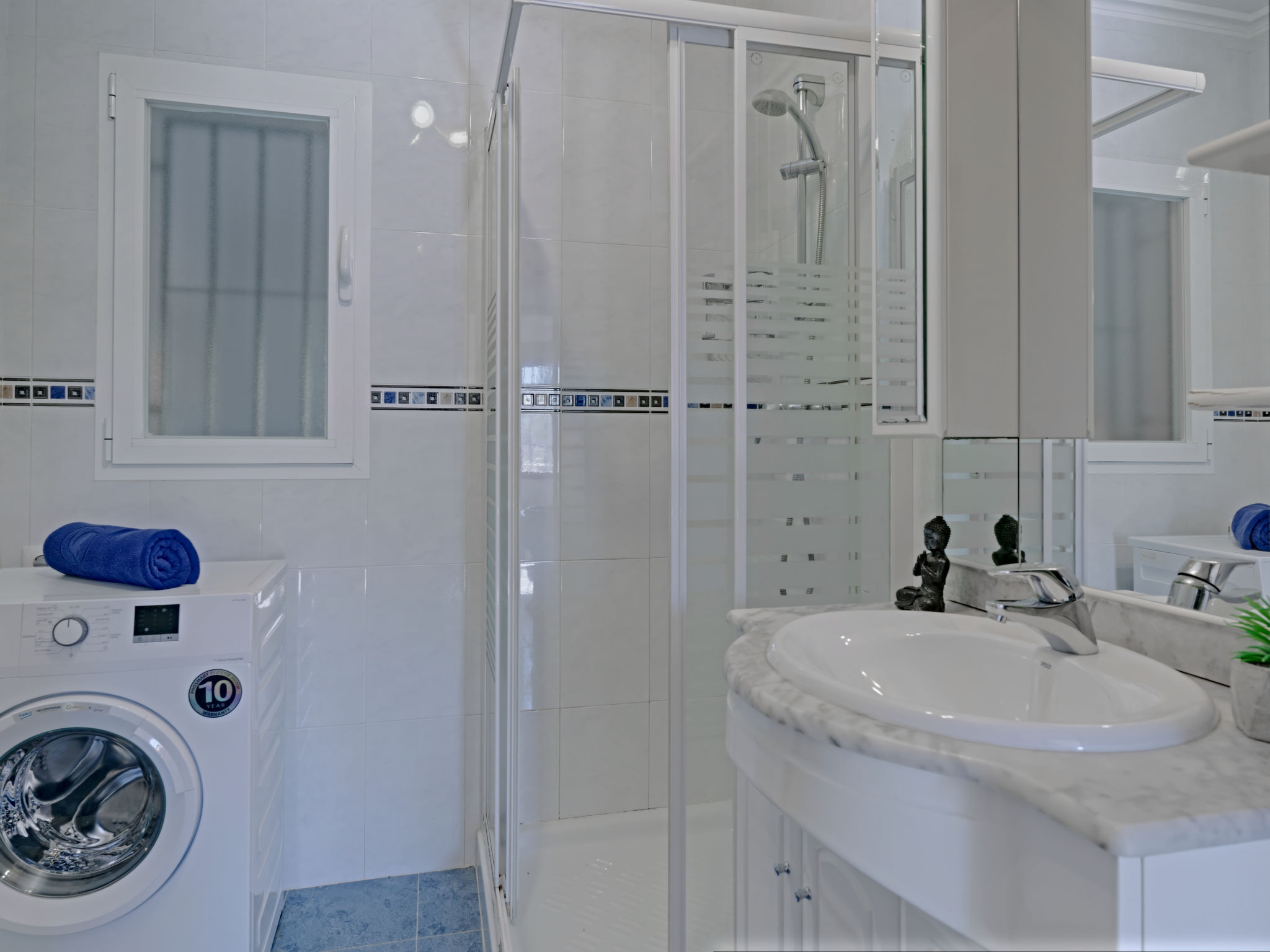 5-Zimmer-Haus 125 m2. Zweckmässig eingerichtet: Wohn-/Esszimmer mit offenem Kamin, TV, Kabel-TV und Klimaanlage. Ausgang zum Garten, zum Balkon, zum Schwimmbad. 1 Zimmer mit 1 franz. Bett (150 cm, Länge 190 cm). 2 Zimmer, jedes Zimmer mit 2 Betten (90 cm, Länge 190 cm). 1 Zimmer mit 1 Bett (90 cm, Länge 190 cm). Küche (Backofen, Geschirrspüler, 4 Glaskeramikherd Platten, Toaster, Wasserkocher, Mikrowelle, Tiefkühler, elektrische Kaffeemaschine, Kapseln für die Kaffeemaschine (Nespreso)). 2 Duschen/WC, sep. WC. Grosse Terrasse 60 m2. Terrassenmöbel, Gartengrill, Liegestühle (4). Zur Verfügung: Waschmaschine, Bügeleisen, Haartrockner. Internet (Wireless LAN, gratis). Garage beim Haus. Maximal 1 Haustier/Hund erlaubt. AT4564A
