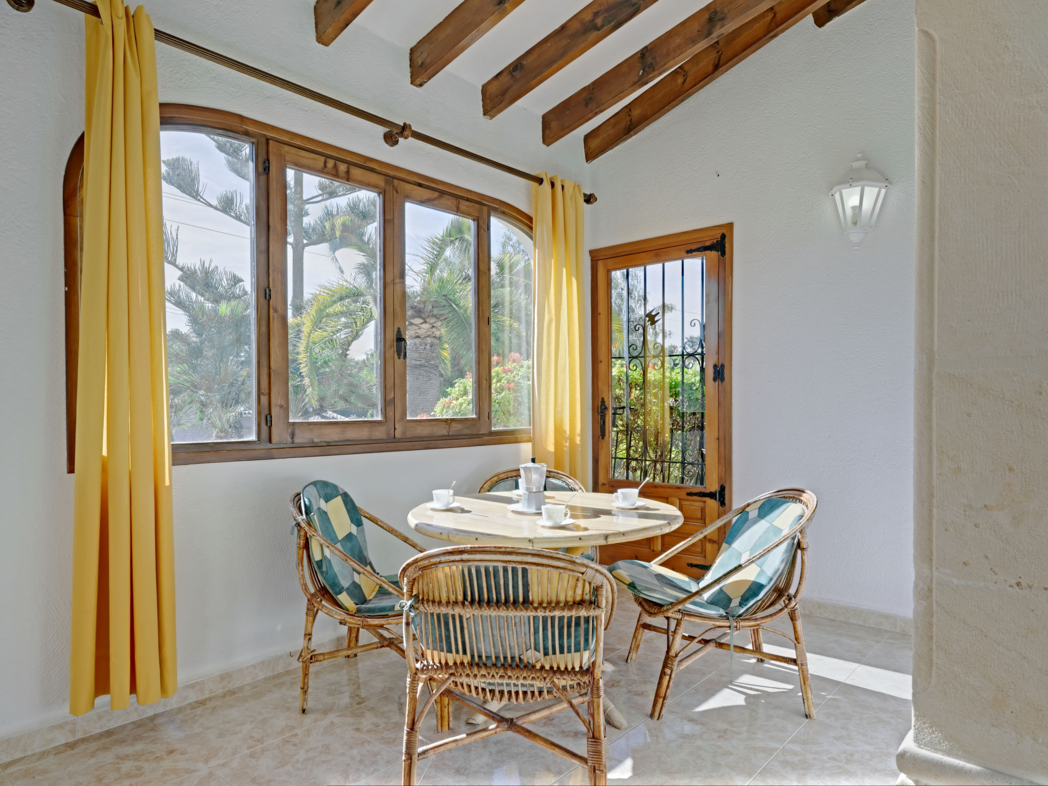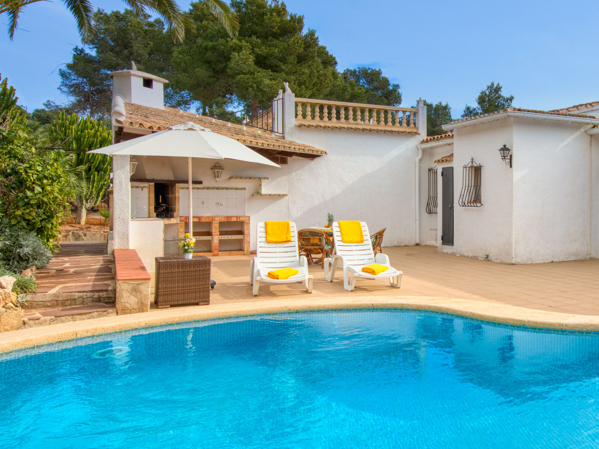 Haus "La Concha". Im Ortsteil Panorama, 5 km vom Meer. Zur Alleinbenutzung: Garten 985 m2 (nicht eingezäunt) mit Pflanzen und Blumen, Schwimmbad nierenförmig (4 x 7 m, 90 - 160 cm tief, 01.01.-31.12.) mit Innentreppe. Aussendusche. Im Hause: Dachterrasse. Restaurant, Bar 600 m, Sandstrand "Arenal" 5 km, Badebucht 3.5 km. Tennis 600 m. Jugendgruppen nur auf Anfrage.