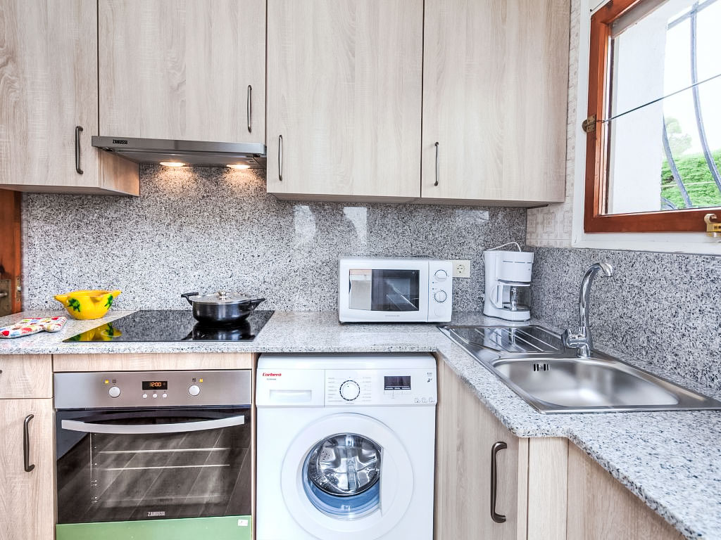 3-Zimmer-Reihenhaus 42 m2. Zweckmässig eingerichtet: Wohn-/Esszimmer mit offenem Kamin, Sat-TV und Internationale TV-Sender (Flachbildschirm). Ausgang zur Terrasse. 1 Zimmer mit 1 franz. Bett (160 cm, Länge 190 cm). 1 Zimmer mit 2 Betten (90 cm, Länge 190 cm). Küche (Backofen, 4 Glaskeramikherd Platten, Mikrowelle, elektrische Kaffeemaschine). Dusche/Bidet/WC. Terrasse 9 m2 teilweise überdacht. Terrassenmöbel, Gartengrill. Zur Verfügung: Waschmaschine. Internet (Wireless LAN, gratis). Maximal 1 Haustier/Hund erlaubt. HUTG011212