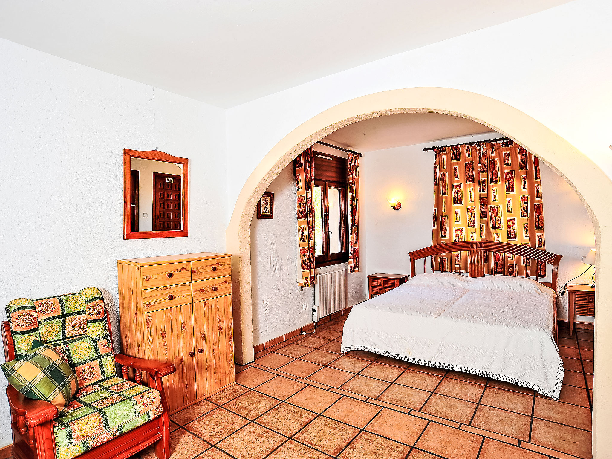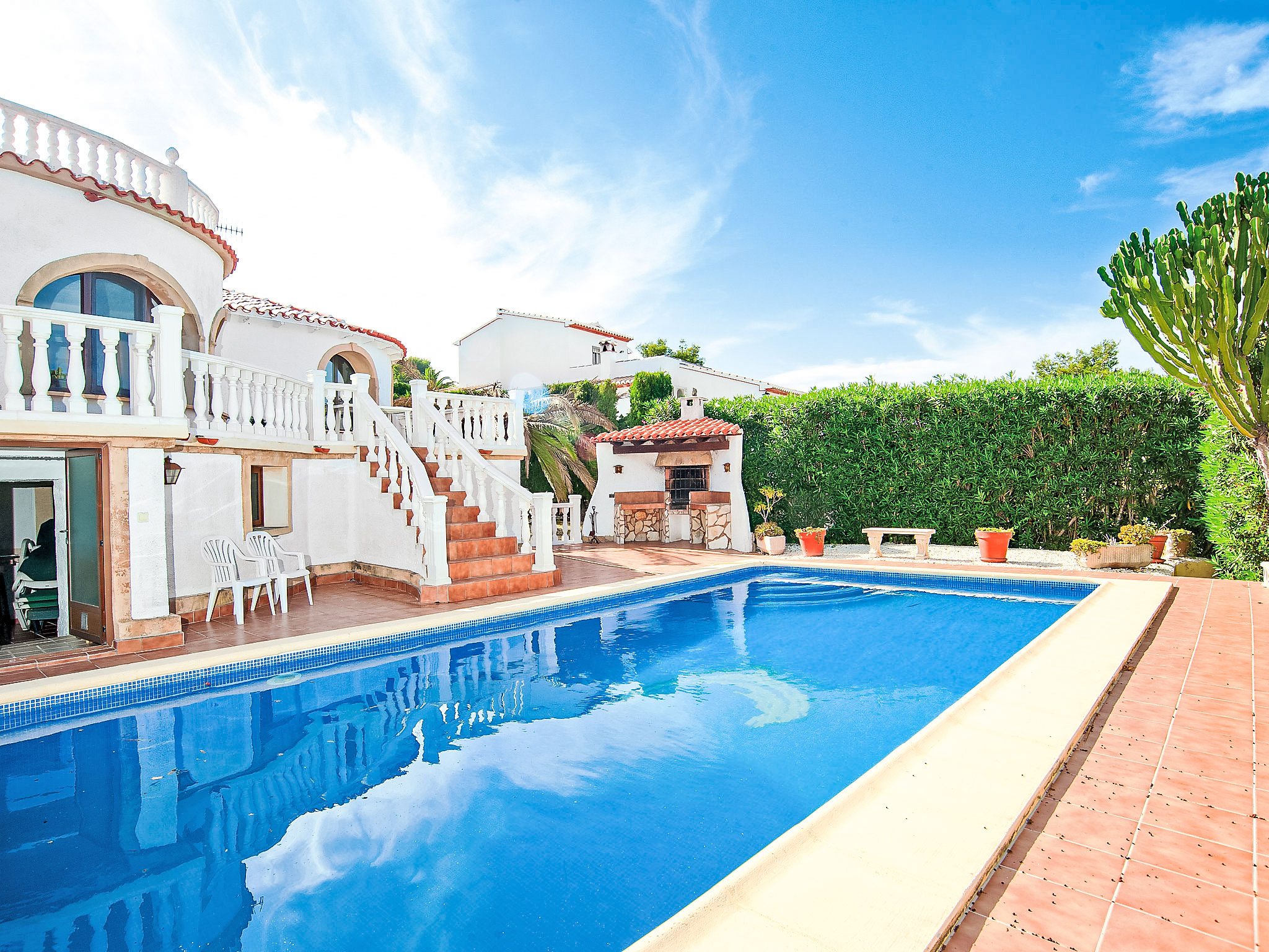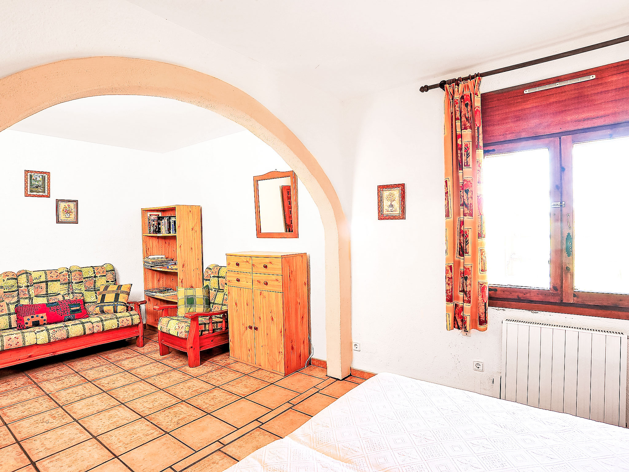 5-Zimmer-Haus 120 m2. Zweckmässig eingerichtet: Wohnzimmer mit Schwedenofen, Kabel-TV und Internationale TV-Sender (Flachbildschirm), DVD. Esszimmer. Ausgang zur Terrasse. 1 Zimmer mit 1 franz. Bett (180 cm, Länge 200 cm), Klimaanlage. 1 Zimmer mit 2 Betten (80 cm, Länge 190 cm), Klimaanlage. Küche (Backofen, Geschirrspüler, 4 Glaskeramikherd Platten, Toaster, Wasserkocher, Mikrowelle, Tiefkühler, elektrische Kaffeemaschine). Bad/WC, Dusche/WC. Unteres Geschoss: (Aussentreppe) 1 Zimmer, Deckenhöhe 180 cm mit 1 franz. Bett (180 cm, Länge 200 cm), Dusche/WC und Klimaanlage. Terrassenmöbel, Gartengrill, Liegestühle (6). Zur Verfügung: Waschmaschine, Wäschetrockner, Bügeleisen, Kinderhochstuhl, Babybett bis 2 Jahre, Haartrockner. Internet (Wireless LAN, gratis). Parkplatz (überdacht, 2 Autos) beim Haus. AT-439328-A