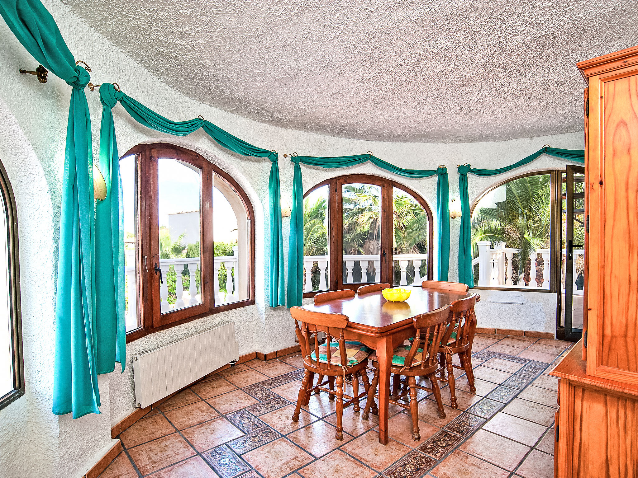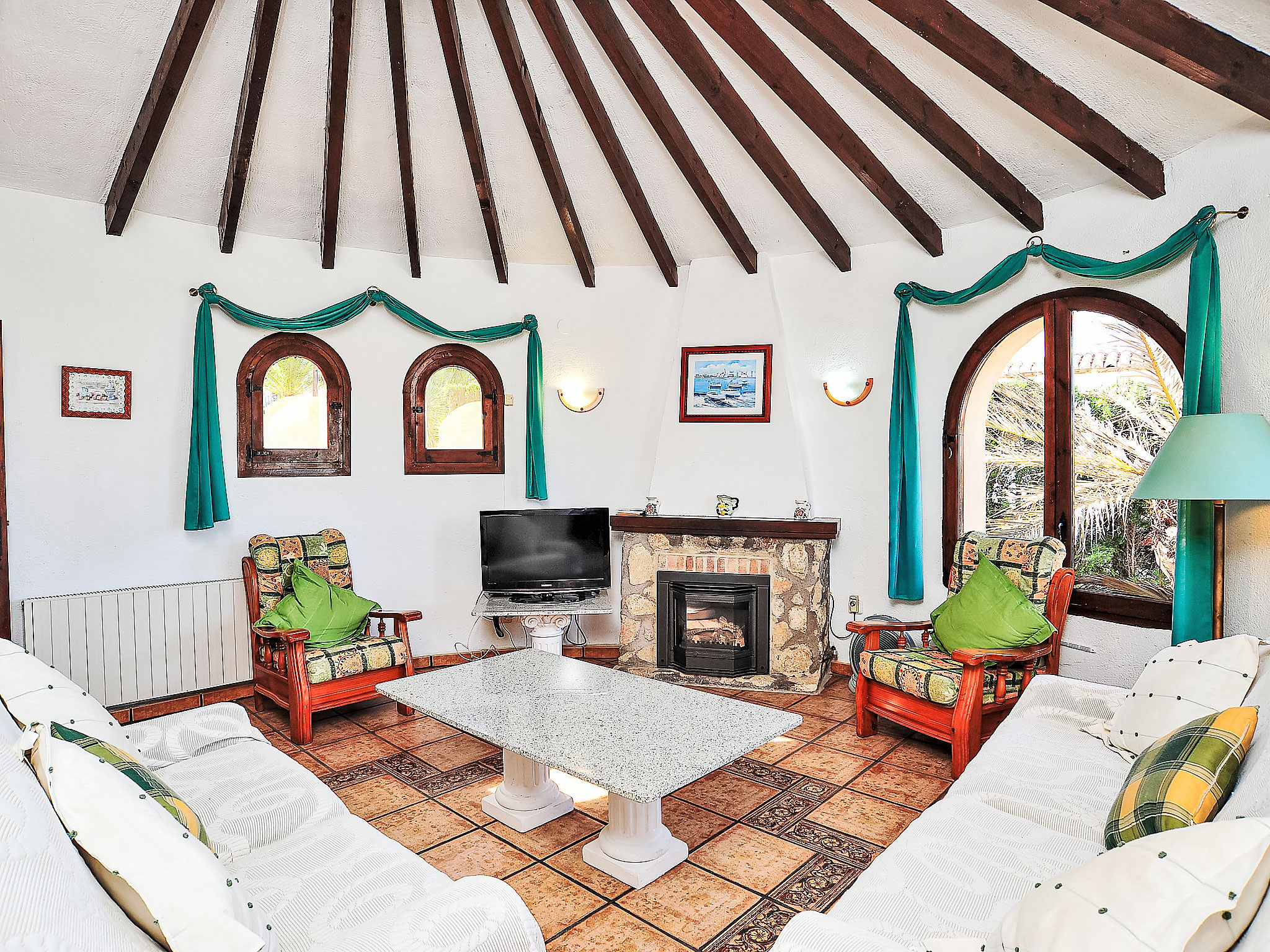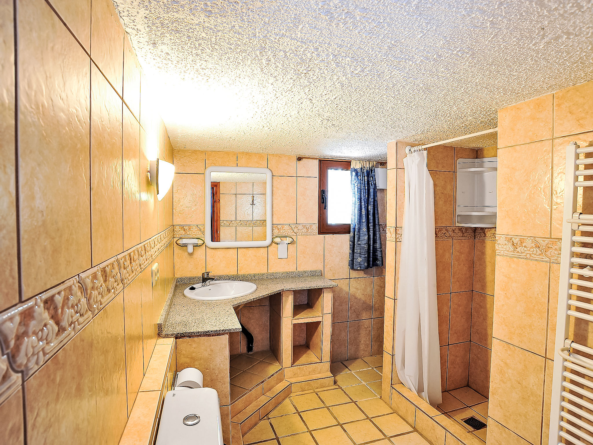 5-Zimmer-Haus 120 m2. Zweckmässig eingerichtet: Wohnzimmer mit Schwedenofen, Kabel-TV und Internationale TV-Sender (Flachbildschirm), DVD. Esszimmer. Ausgang zur Terrasse. 1 Zimmer mit 1 franz. Bett (180 cm, Länge 200 cm), Klimaanlage. 1 Zimmer mit 2 Betten (80 cm, Länge 190 cm), Klimaanlage. Küche (Backofen, Geschirrspüler, 4 Glaskeramikherd Platten, Toaster, Wasserkocher, Mikrowelle, Tiefkühler, elektrische Kaffeemaschine). Bad/WC, Dusche/WC. Unteres Geschoss: (Aussentreppe) 1 Zimmer, Deckenhöhe 180 cm mit 1 franz. Bett (180 cm, Länge 200 cm), Dusche/WC und Klimaanlage. Terrassenmöbel, Gartengrill, Liegestühle (6). Zur Verfügung: Waschmaschine, Wäschetrockner, Bügeleisen, Kinderhochstuhl, Babybett bis 2 Jahre, Haartrockner. Internet (Wireless LAN, gratis). Parkplatz (überdacht, 2 Autos) beim Haus. AT-439328-A