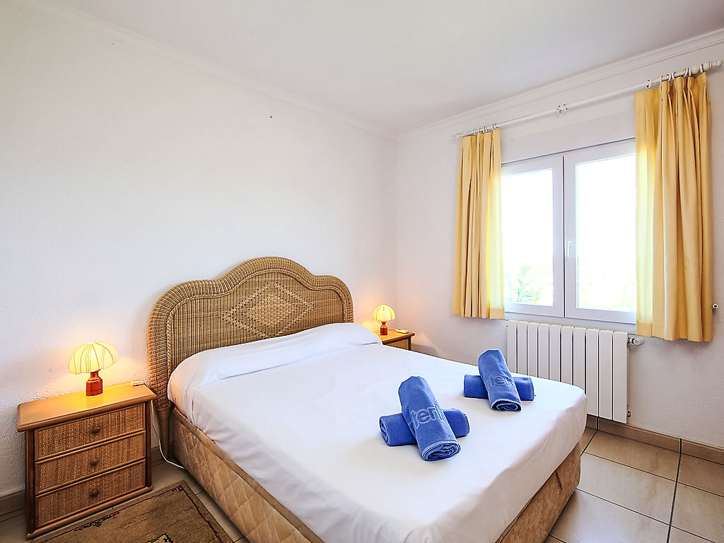 4-Zimmer-Haus 160 m2. Komfortabel und schön eingerichtet: Wohn-/Esszimmer mit offenem Kamin und Sat-TV. Ausgang zur Terrasse. 1 Zimmer mit 1 franz. Bett (150 cm, Länge 190 cm), Klimaanlage. 1 Zimmer mit 2 Betten (90 cm, Länge 180 cm), Klimaanlage. Küche (4 Kochplatten, Backofen, Geschirrspüler, Toaster, Wasserkocher, Mikrowelle, Tiefkühler, elektrische Kaffeemaschine). Dusche/WC. Obergeschoss: 1 Zimmer mit 1 Doppelbett (180 cm, Länge 190 cm), Bad/Bidet/WC und Klimaanlage. Ausgang zur Terrasse. Grosse Terrasse 27 m2, überdacht. Terrassenmöbel, Gartengrill (mobil), Liegestühle. Eingeschränkte Sicht auf das Meer. Zur Verfügung: Waschmaschine, Bügeleisen, Kinderhochstuhl, Babybett, Haartrockner. Internet (Wireless LAN, gratis). Garage beim Haus. AT-430946-A