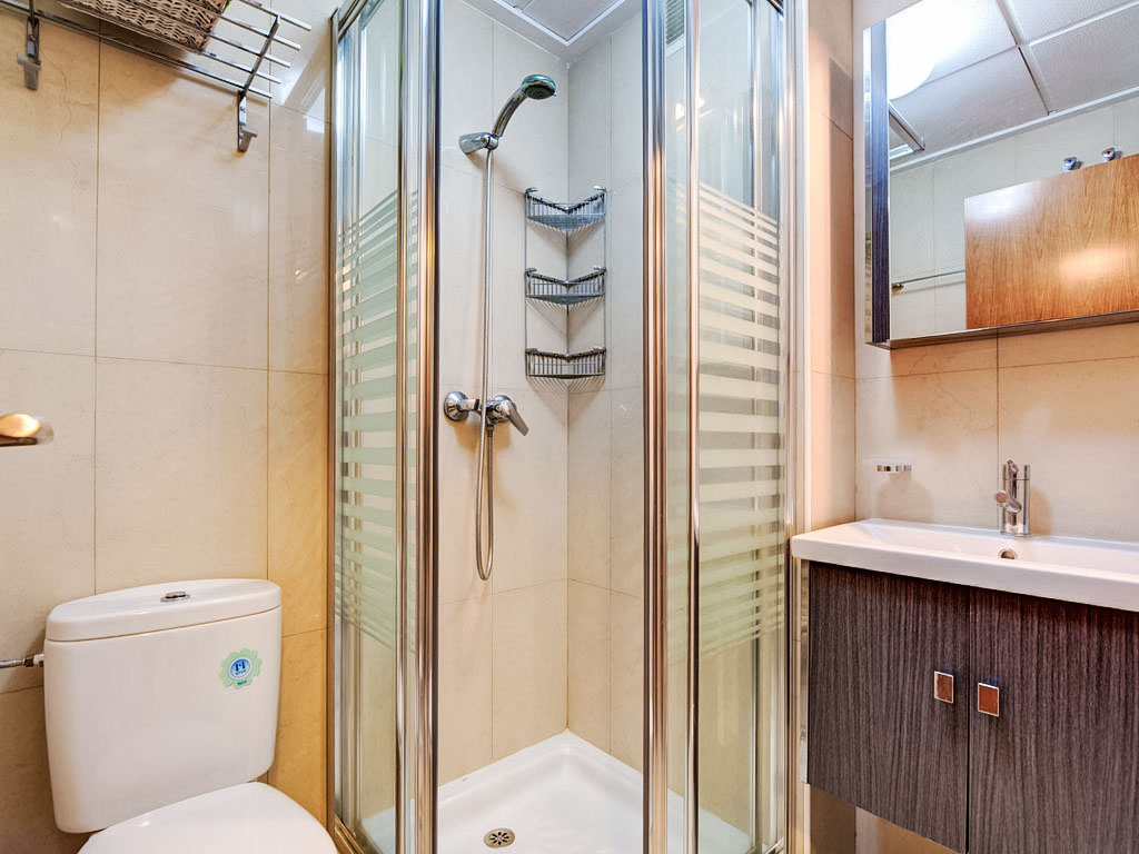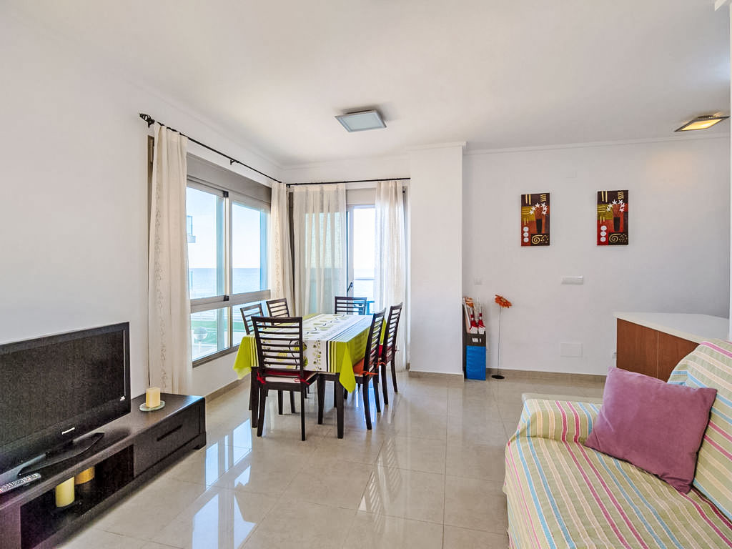 3-Zimmer-Wohnung 77 m2 im 1. Stock. Komfortabel und modern eingerichtet: Wohn-/Esszimmer mit 1 Diwanbett, Sat-TV, Video und DVD. Ausgang zum Balkon. 1 Zimmer mit 1 franz. Bett (135 cm, Länge 190 cm), Bad/Bidet/WC und Sprudelbad. 1 Zimmer mit 2 Betten (90 cm, Länge 190 cm), Dusche/Bidet/WC. Offene Küche (4 Kochplatten, Backofen, Geschirrspüler, Wasserkocher, Tiefkühler, elektrische Kaffeemaschine). E-Heizung, Klimaanlage. Balkon 5 m2. Terrassenmöbel. Sehr schöne Sicht auf das Meer. Zur Verfügung: Waschmaschine, Bügeleisen, Kinderhochstuhl, Haartrockner. Internet (Wireless LAN, gratis). Bitte beachten: Nichtraucher-Unterkunft.