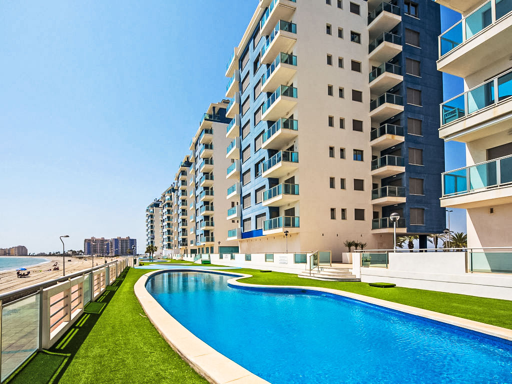 La Manga del Mar Menor: Appartementhaus "Euromarina Towers", Baujahr 2007. Am Ortsrand, 4.5 km vom Zentrum von La Manga, sonnige Lage, 50 m vom Meer. Zur Mitbenutzung: 2 Schwimmbäder (saisonale Verfügbarkeit: 01.Jan.-31.Dez.). Kinderbecken, Aussendusche. Im Hause: Fahrstuhl. Öffentliches Parkhaus in 50 m. Lebensmittelgeschäft 200 m, Restaurant, Bushaltestelle, Sandstrand 100 m. Reitstall 20 km.