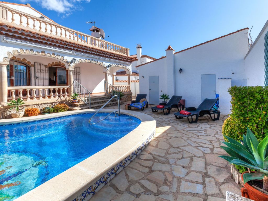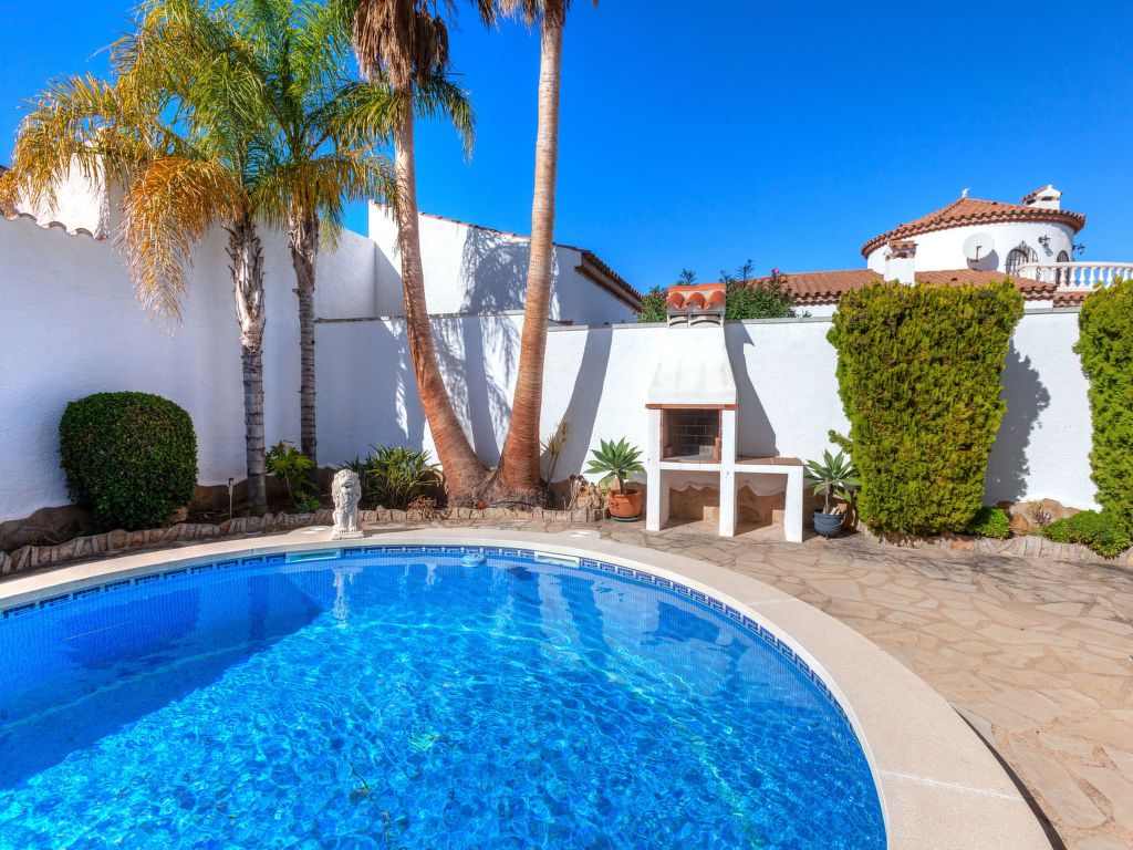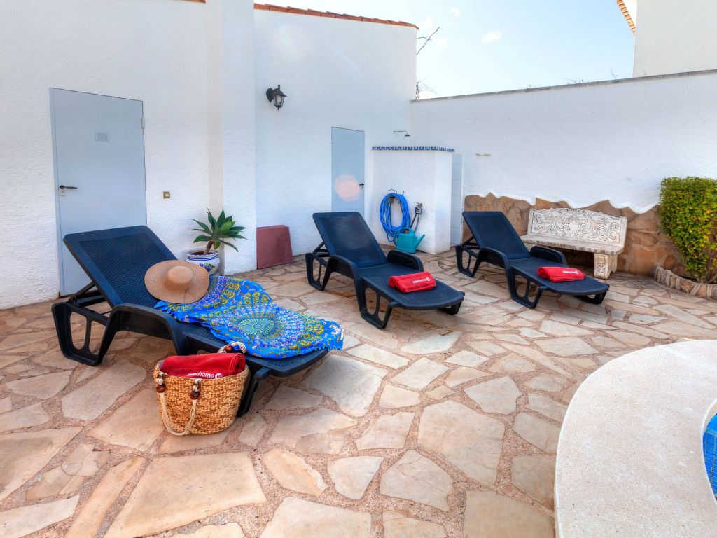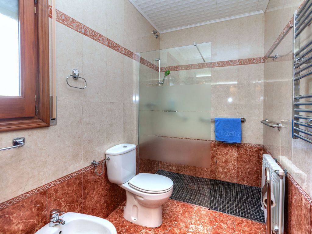 4-Zimmer-Villa 149 m2. Komfortabel und geschmackvoll eingerichtet: Wohn-/Esszimmer mit Esstisch, Sat-TV, Digital-TV und Ventilator. Ausgang zur Terrasse, zum Schwimmbad. 1 Zimmer mit 1 franz. Bett (160 cm, Länge 190 cm), Dusche/WC und Ventilator. 1 Zimmer mit 2 Betten (90 cm, Länge 190 cm), Dusche/WC und Ventilator. 1 Zimmer mit 1 franz. Bett (135 cm, Länge 190 cm), Ventilator. Küche (Backofen, Geschirrspüler, 4 Glaskeramikherd Platten, Toaster, Wasserkocher, Mikrowelle, Tiefkühler) mit Esstisch. Dusche/WC. Gartensitzplatz. Terrassenmöbel, Gartengrill, Loggia. Fernsicht auf das Meer. Zur Verfügung: Waschmaschine, Bügeleisen, Haartrockner. Internet (Wireless LAN, gratis). Parkplatz (eingezäunt, 3 Autos) beim Haus. Bitte beachten: geeignet für Familien. TV nur ES, DE, FR. Badezimmer im Hauptschlafzimmer für behinderte Menschen angepasst. HUTT010996