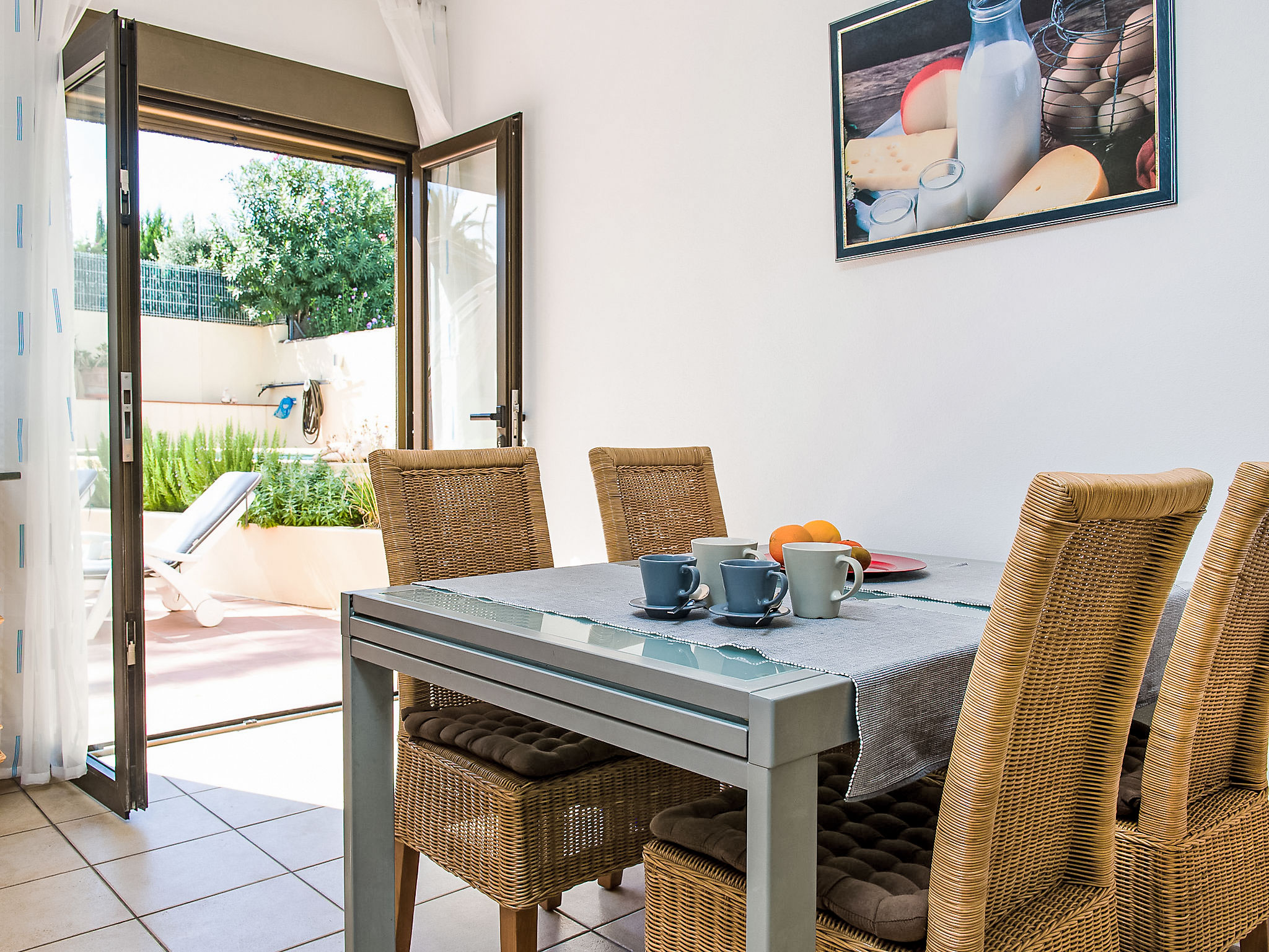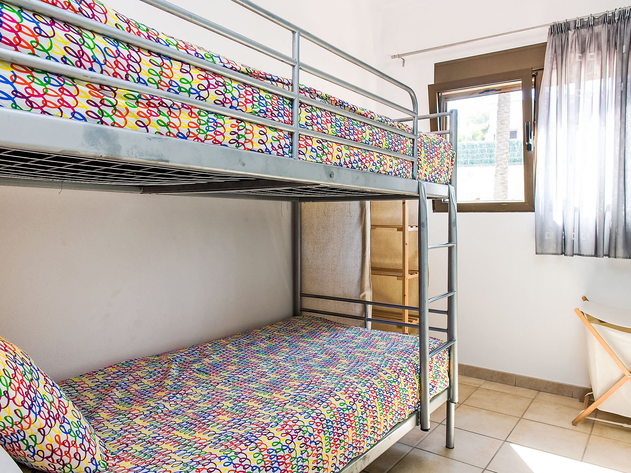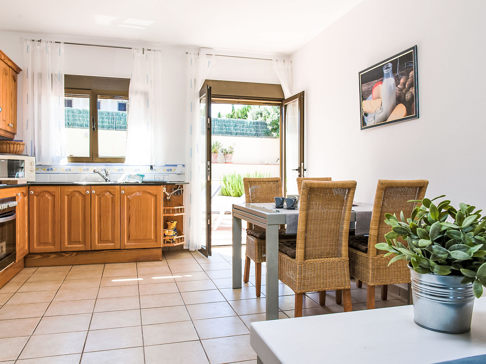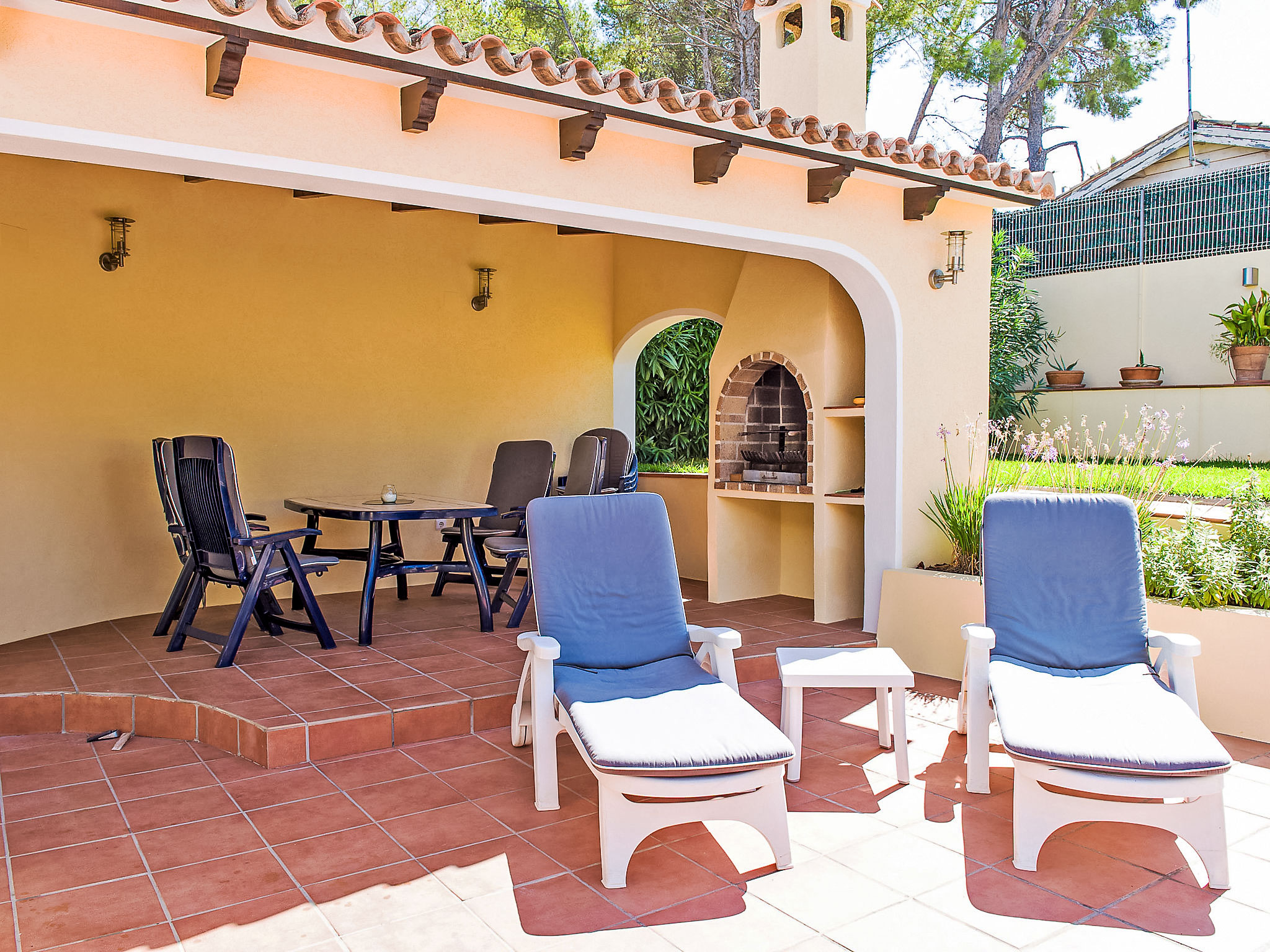 4-Zimmer-Haus 130 m2. Schön und geschmackvoll eingerichtet: grosses Wohn-/Esszimmer mit Sat-TV. Ausgang zur Veranda. 1 Zimmer mit 1 franz. Bett (200 cm, Länge 200 cm), Klimaanlage. Ausgang zum Garten. 1 grosses Doppelzimmer mit Klimaanlage. 1 Kinderzimmer mit 1 x 2 Etagenbetten (90 cm, Länge 190 cm), Klimaanlage. Offene Küche (Backofen, Mikrowelle, Tiefkühler, elektrische Kaffeemaschine). Ausgang zum Garten. Bad/WC, Dusche/WC. Grosse Terrasse. Terrassenmöbel, Gartengrill, Liegestühle (4). Zur Verfügung: Waschmaschine. Internet (Wireless LAN, gratis). Parkplatz beim Haus. Bitte beachten: Nichtraucher-Haus. AT444595A