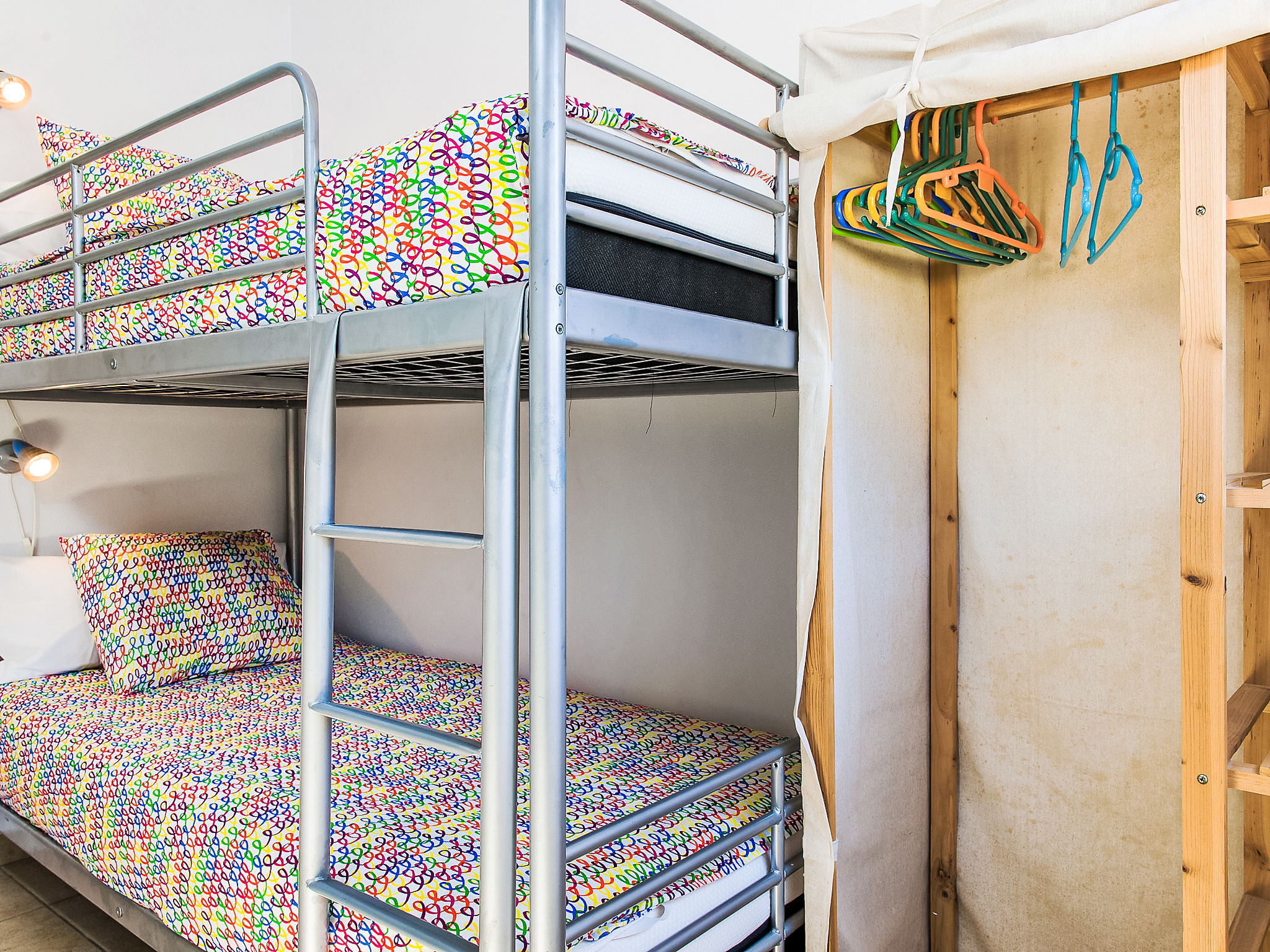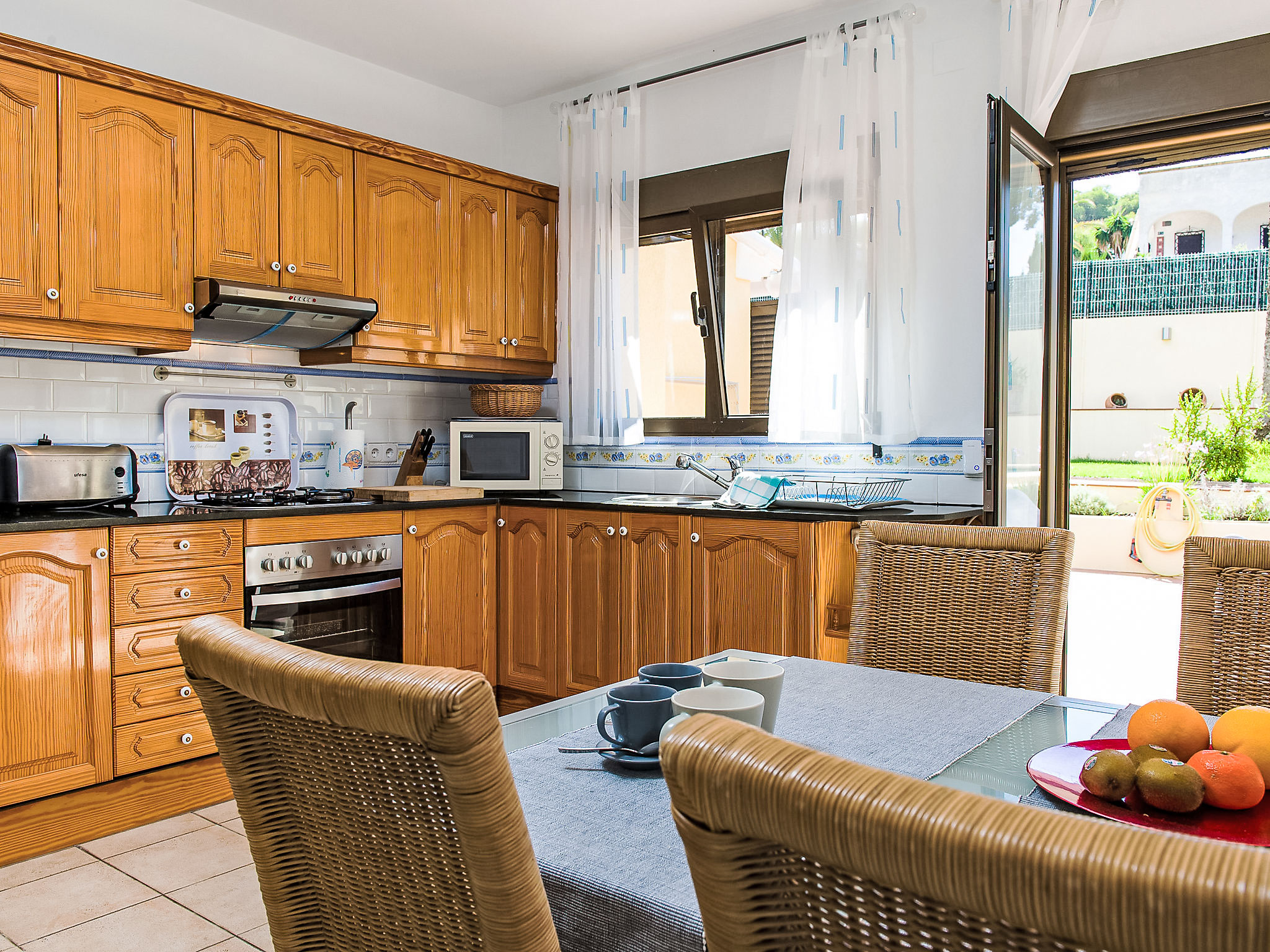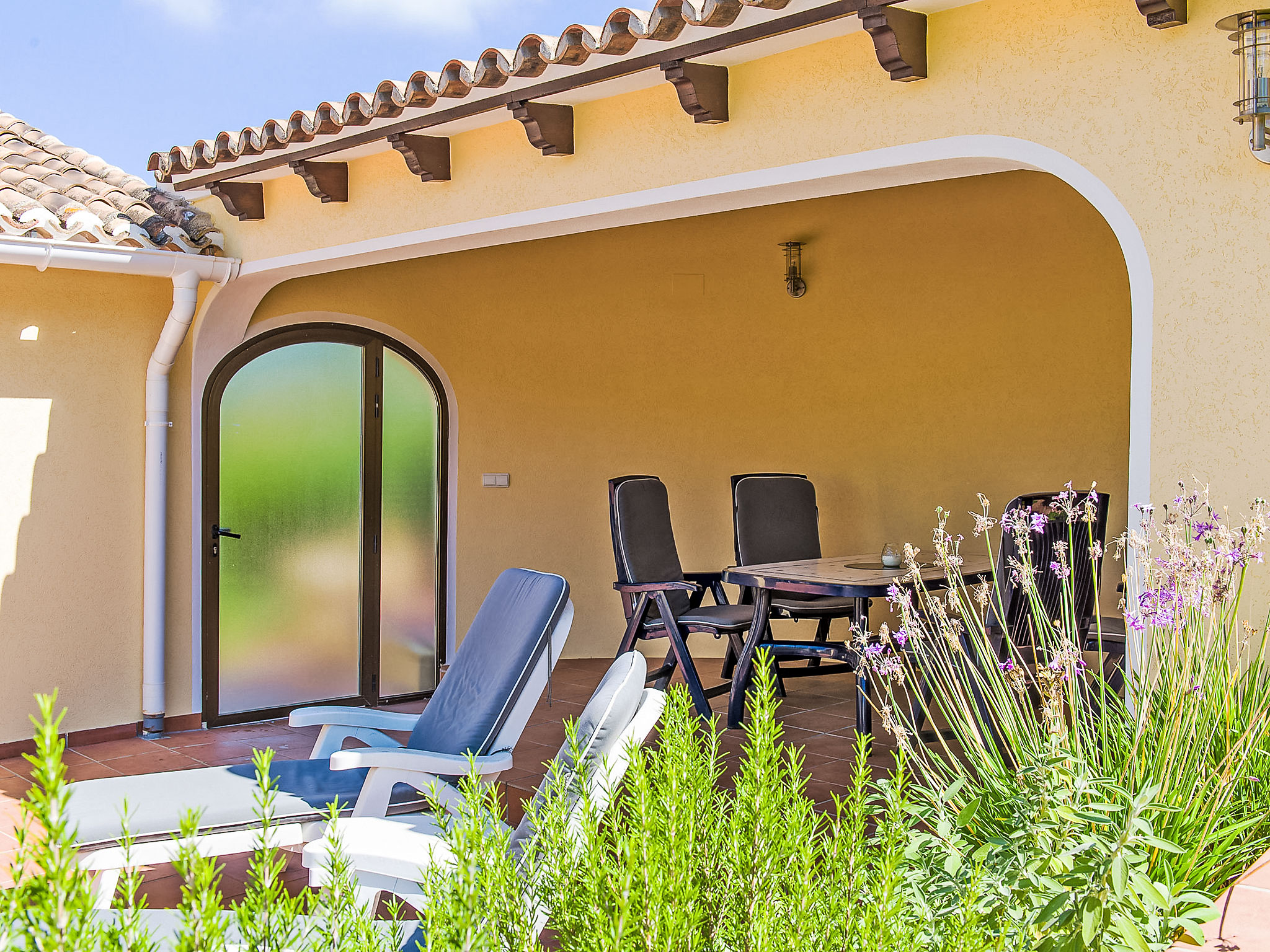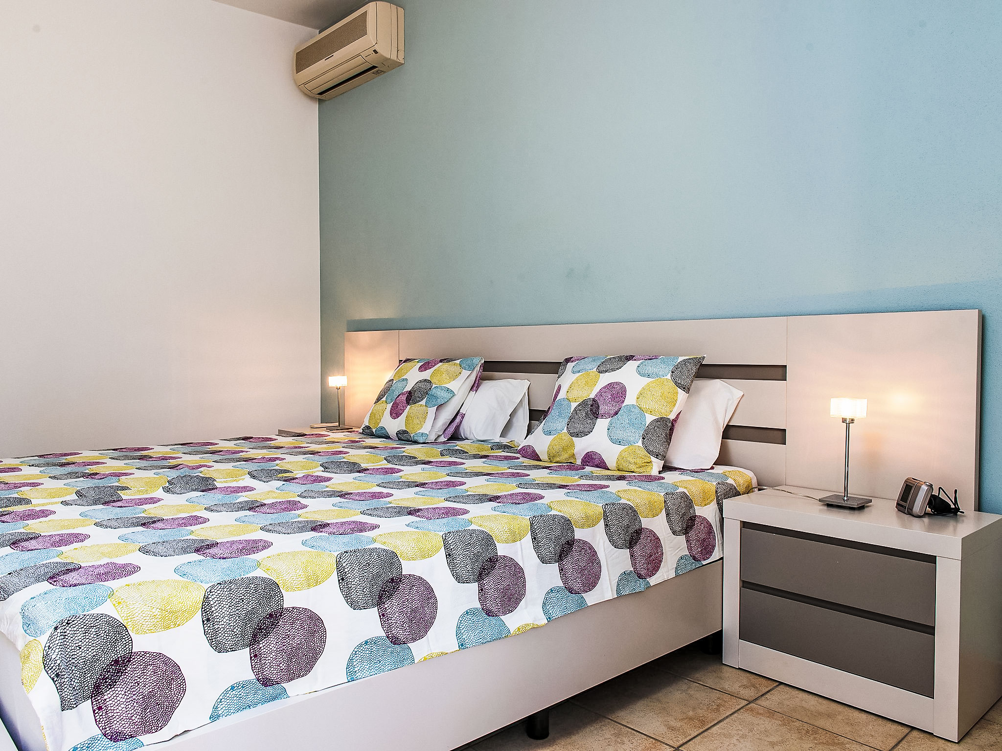 4-Zimmer-Haus 130 m2. Schön und geschmackvoll eingerichtet: grosses Wohn-/Esszimmer mit Sat-TV. Ausgang zur Veranda. 1 Zimmer mit 1 franz. Bett (200 cm, Länge 200 cm), Klimaanlage. Ausgang zum Garten. 1 grosses Doppelzimmer mit Klimaanlage. 1 Kinderzimmer mit 1 x 2 Etagenbetten (90 cm, Länge 190 cm), Klimaanlage. Offene Küche (Backofen, Mikrowelle, Tiefkühler, elektrische Kaffeemaschine). Ausgang zum Garten. Bad/WC, Dusche/WC. Grosse Terrasse. Terrassenmöbel, Gartengrill, Liegestühle (4). Zur Verfügung: Waschmaschine. Internet (Wireless LAN, gratis). Parkplatz beim Haus. Bitte beachten: Nichtraucher-Haus. AT444595A