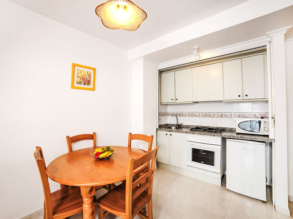 "Topacio III", 2-Zimmer-Wohnung 34 m2 im 3. Stock. Objekt geeignet für 2 Erwachsene. Hell, zweckmässig und komfortabel eingerichtet: Wohn-/Esszimmer 16 m2 mit 1 Doppeldiwanbett und Digital-TV. Ausgang zur Terrasse. 1 Zimmer 10 m2 mit 1 franz. Bett (150 cm, Länge 190 cm). Offene Küche (4 Kochplatten, Backofen). Bad/WC. Boiler (75 Liter). Terrasse 13 m2. Terrassenmöbel. Sicht auf das Meer. Zur Verfügung: Waschmaschine, Bügeleisen, Haartrockner. Internet (Wireless LAN, gratis). Bitte beachten: geeignet für Familien. Kein Parkplatz. AT-454823-A