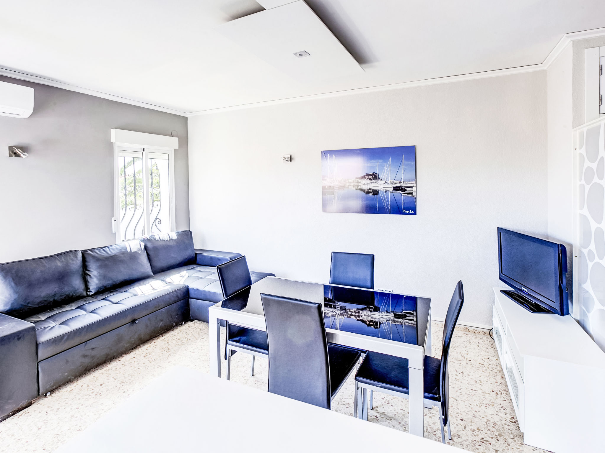 Grosse, gemütliche Residenz "El Palmar". Im Ortsteil Las Marinas, 4.5 km vom Zentrum von Dénia, 400 m vom Meer, Strasse zu überqueren. Zur Mitbenutzung: Schwimmbad (saisonale Verfügbarkeit: 01.Jan.-31.Dez.). Kinderbecken, Rutschbahn, Kinderspielplatz. Treppenweg (17 Stufen) bis zum Haus. Supermarkt 400 m, Restaurant, Bar, Café, Bushaltestelle 300 m, Sandstrand 400 m. Golfplatz 11 km, Tennis 2 km. Bitte beachten: kein Fahrstuhl vorhanden. Der Besitzer akzeptiert keine Jugendgruppen. Residenz mit 2 gemeinschaftlichen Schwimmbecken.