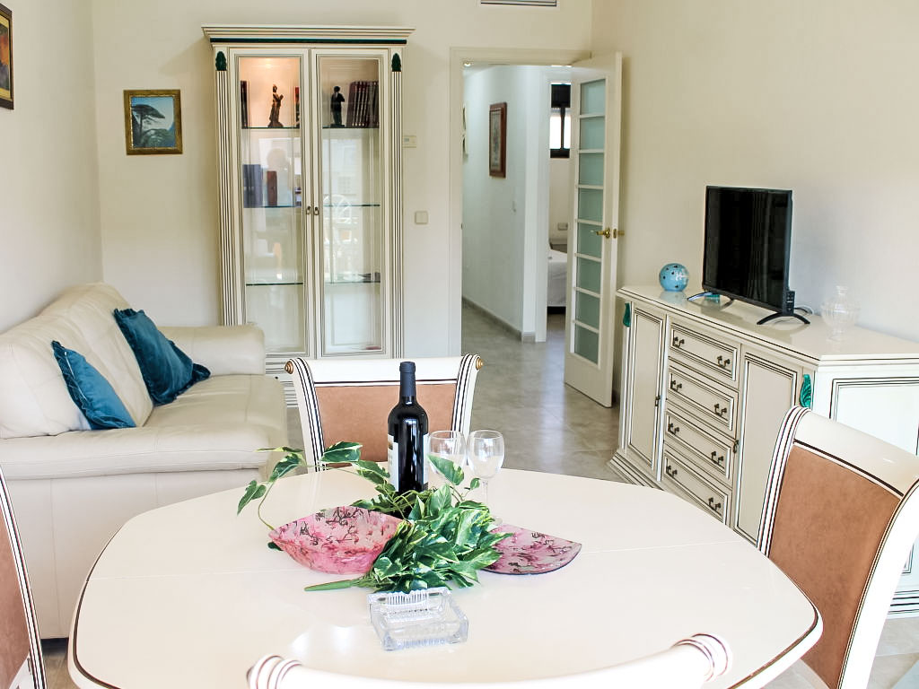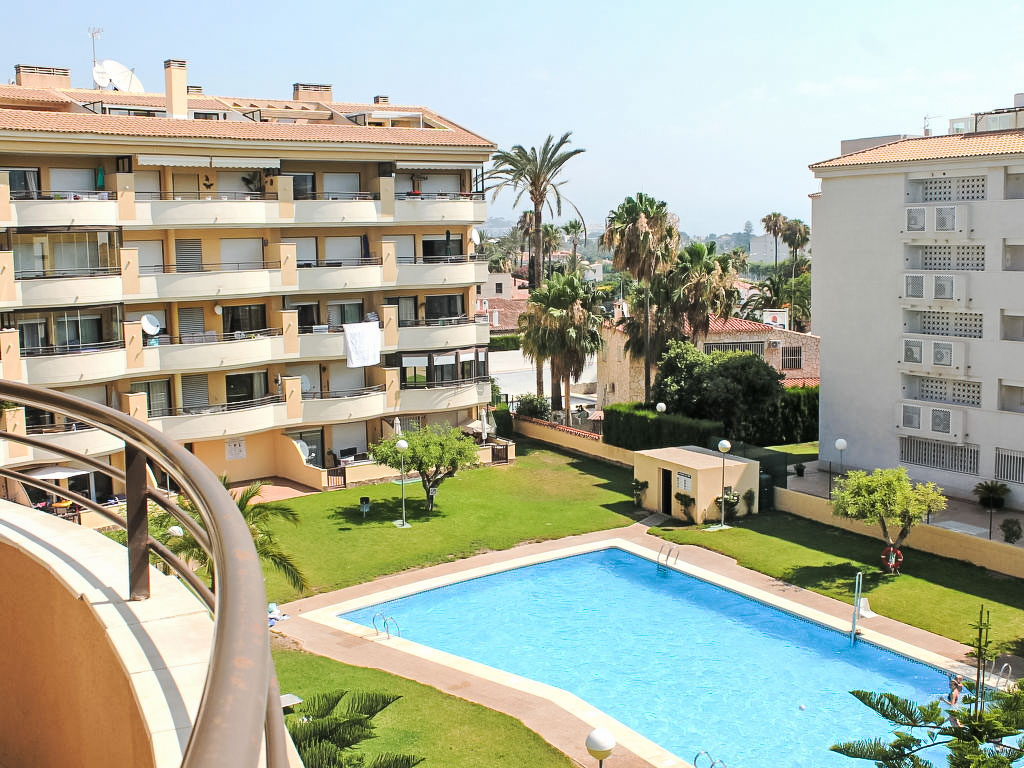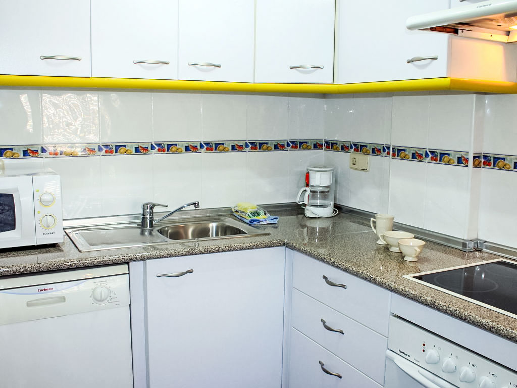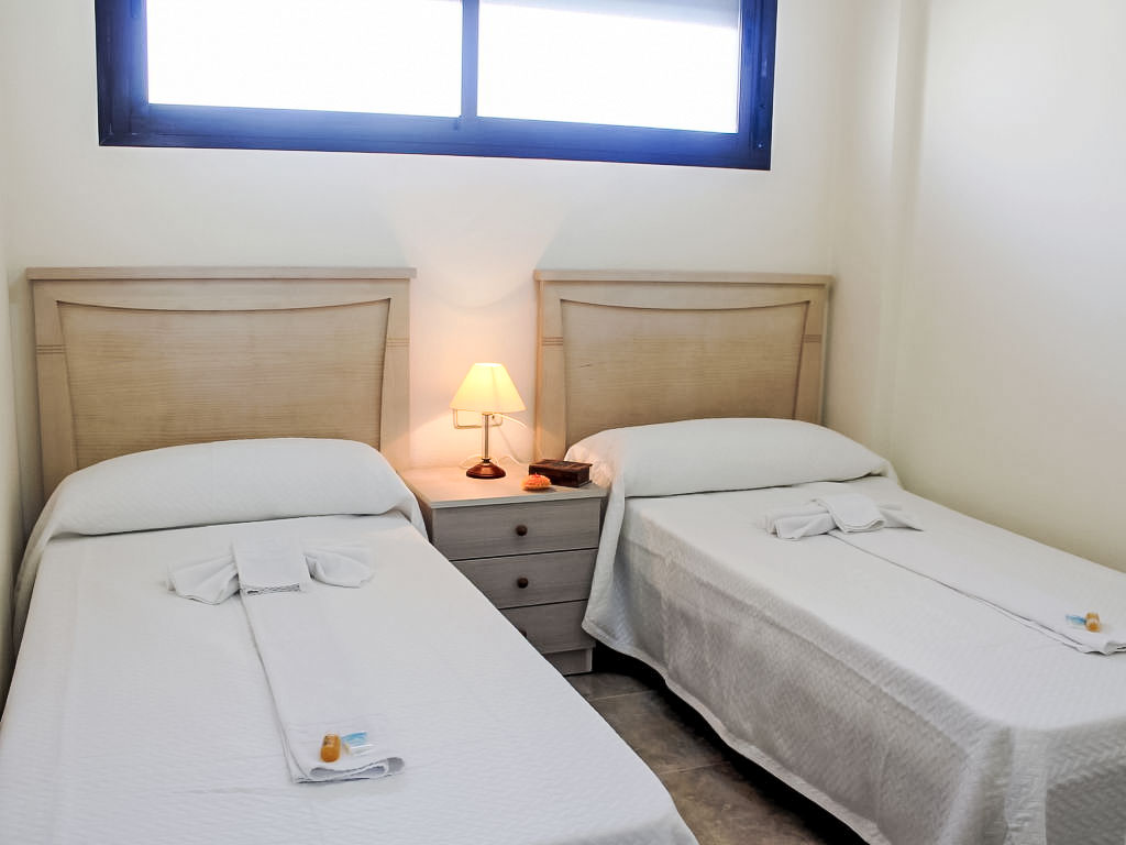 "Estrella del Albir", 3-Zimmer-Wohnung 50 m2 im 3. Stock. Objekt geeignet für 4 Erwachsene. Geräumig und hell, zweckmässig und komfortabel eingerichtet: Wohn-/Esszimmer 17 m2 mit Digital-TV. Ausgang zur Terrasse. 1 Zimmer 10 m2 mit 1 franz. Bett (135 cm, Länge 190 cm), Klimaanlage. Ausgang zur Terrasse. 1 Zimmer 8 m2 mit 2 Betten (90 cm, Länge 190 cm), Klimaanlage. Küche (Backofen, Geschirrspüler, 4 Glaskeramikherd Platten, Toaster, Wasserkocher, Mikrowelle, Tiefkühler, elektrische Kaffeemaschine). Bad/Bidet/WC, Dusche/WC. Terrasse 12 m2. Terrassenmöbel. Sicht auf das Schwimmbad, den Garten und die Ortschaft. Zur Verfügung: Waschmaschine, Bügeleisen, Haartrockner. Internet (Wireless LAN). Parkplatz Nr. 73. 1 kleines Haustier/Hund erlaubt. AT469966A