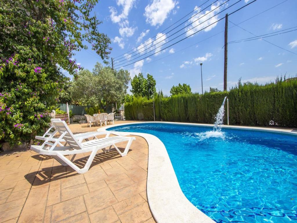 Haus "Villa Rosa". Im Ort, 200 m vom Zentrum, sonnige Lage, 7 km vom Meer. Zur Alleinbenutzung: Grundstück 1'400 m2, Pflanzen und Bäumen, Schwimmbad nierenförmig (8 x 5 m, 01.06.-30.09.). Aussendusche, Tennis, beleuchtet, Gartenmöbel, Grill. Im Hause: Waschmaschine, Wäschetrockner. Parkplatz (für 2 Autos) auf dem Grundstück, Einzelgarage Nr. 1. Supermarkt 150 m, Restaurant 80 m, Bäckerei 200 m, Bushaltestelle 150 m, Sandstrand "Sitges" 12 km, Felsstrand "Vilanova" 7 km. Nahe gelegene Sehenswürdigkeiten: Zona vitivinícola del Penedés St Sadurní, Port Aventura parque de atracciones 65 km, Aeropuerto de Barcelona 30 km, Monasterio de Montserrat. Der Besitzer akzeptiert keine Jugendgruppen. 25 m2 grosses, unregelmässig geformtes Schwimmbad. Es gibt zudem 3 überdachte Terrassen (6, 17 und 4 m2). Steintisch und Sitzbänke 100 m. Lokaler Anschluss auf die Schnellstrasse AP-7. Terrain mit Treppen. Bei einem Aufenthalt von mehr als 7 Tagen erfolgt auf Anfrage ein Wäschewechsel (Bett und Bad).