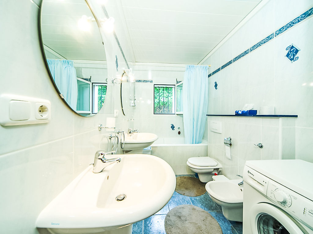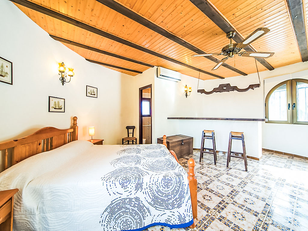 "Vogel", 5-Zimmer-Villa 163 m2 auf 2 Stockwerken. Geräumig, komfortabel und gemütlich eingerichtet: Wohn-/Esszimmer mit offenem Kamin, Sat-TV, Digital-TV, Radio und Stereoanlage. Ausgang zum Gartensitzplatz, zum Schwimmbad. 1 Zimmer mit 1 franz. Bett (135 cm, Länge 190 cm). 1 Doppelzimmer mit 2 Betten (90 cm, Länge 190 cm). 1 Doppelzimmer mit 1 Bett (180 cm, Länge 200 cm). Kleine, offene Küche (4 Kochplatten, Backofen, Geschirrspüler, Mikrowelle, Tiefkühler, elektrische Kaffeemaschine). Bad/Bidet/WC, Dusche/WC. Obergeschoss: (Aussentreppe) 1 grosses Doppelzimmer mit 1 franz. Bett, Waschbecken, sep. WC, E-Heizung und Klimaanlage. Ausgang zur Terrasse. Terrasse. Terrassenmöbel, Gartengrill, Liegestühle (5). Zur Verfügung: Waschmaschine. Internet (Wireless LAN, gratis). 1 Haustier/Hund erlaubt. Klimaanlage und Warmluftheizung im Flur. AT-437870-A