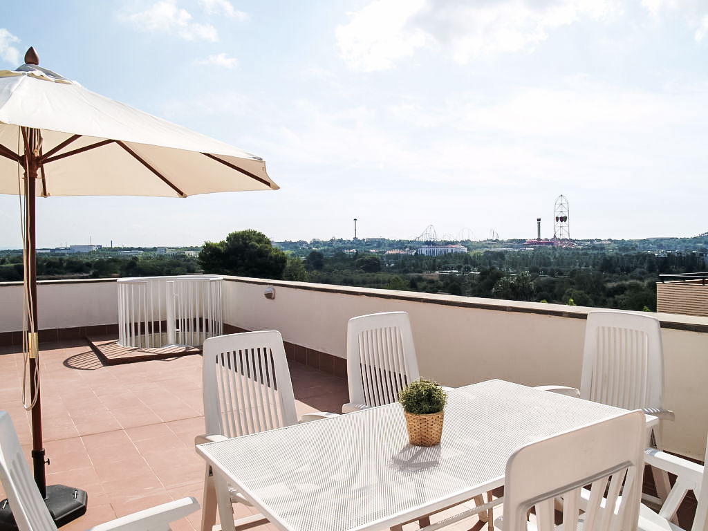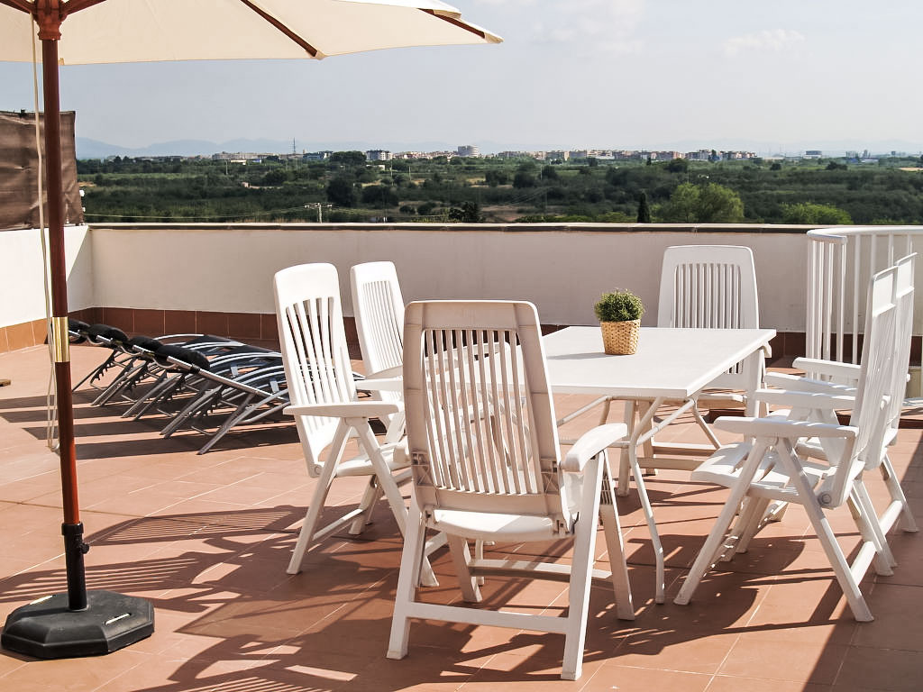 4-Zimmer-Attikawohnung 84 m2. Geräumig und hell, komfortabel und geschmackvoll eingerichtet: Wohn-/Esszimmer mit Esstisch, Digital-TV, Klimaanlage und Warmluftheizung. Ausgang zur Terrasse. 1 Zimmer mit 2 Betten (90 cm). 1 Zimmer mit 2 Betten (80 cm). 1 Zimmer mit 1 franz. Bett (150 cm, Länge 190 cm), Bad/Bidet/WC. Grosse Küche (Backofen, Geschirrspüler, X Glaskeramikherd Platten, Mikrowelle). Ausgang zur Terrasse. Bad/Bidet/WC. Klimaanlage, Warmluftheizung. Grosser Balkon 14 m2, grosse Terrasse 80 m2. Terrassenmöbel, Gartengrill, Liegestühle. Sicht auf die Landschaft. Zur Verfügung: Waschmaschine. Internet (Wireless LAN, gratis). Parkplatz Nr. 9 (überdacht). HUTT002986
