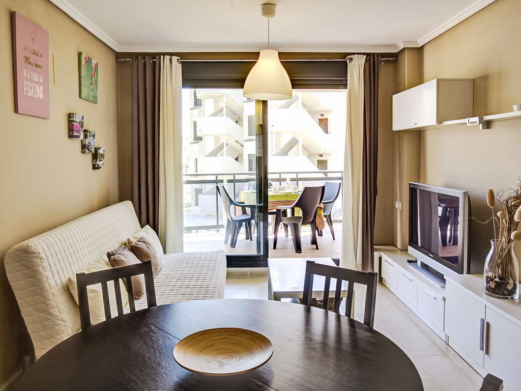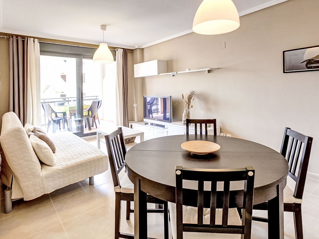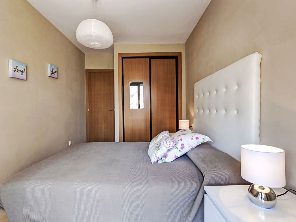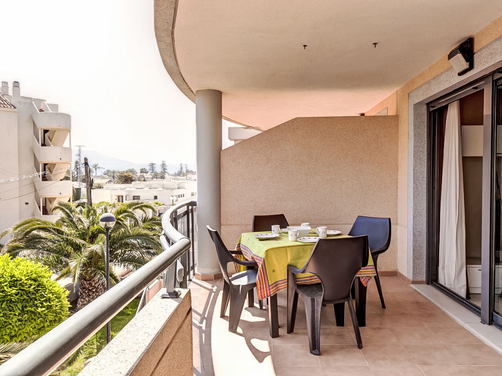 "Jacaranda", 3-Zimmer-Wohnung 60 m2 im 1. Stock. Zweckmässig eingerichtet: Wohn-/Esszimmer mit Digital-TV, Flachbildschirm und E-Heizung. Ausgang zur Terrasse. 1 Zimmer mit 1 franz. Bett (135 cm, Länge 190 cm), E-Heizung. Ausgang zur Terrasse. 1 Zimmer mit 2 Betten (90 cm, Länge 190 cm), E-Heizung. Küche (Backofen, 4 Glaskeramikherd Platten, Toaster, Wasserkocher, Mikrowelle, Tiefkühler, elektrische Kaffeemaschine). Bad/Bidet/WC, Dusche/WC. E-Heizung. Grosse Terrasse 18 m2. Terrassenmöbel. Zur Verfügung: Waschmaschine, Bügeleisen, Kinderhochstuhl, Babybett bis 2 Jahre, Haartrockner. Internet (Wireless LAN, gratis). Garage Nr. 1 (1 Auto). Bitte beachten: geeignet für Familien. Nichtraucher-Unterkunft. TV nur ES. AT-455756-A