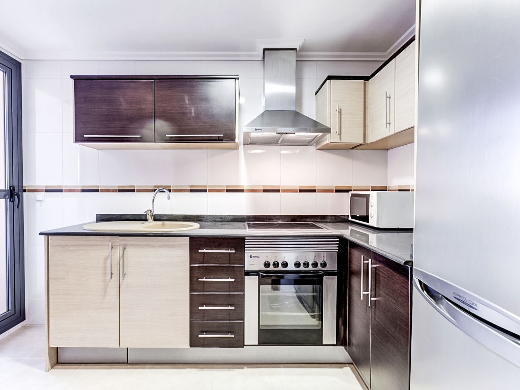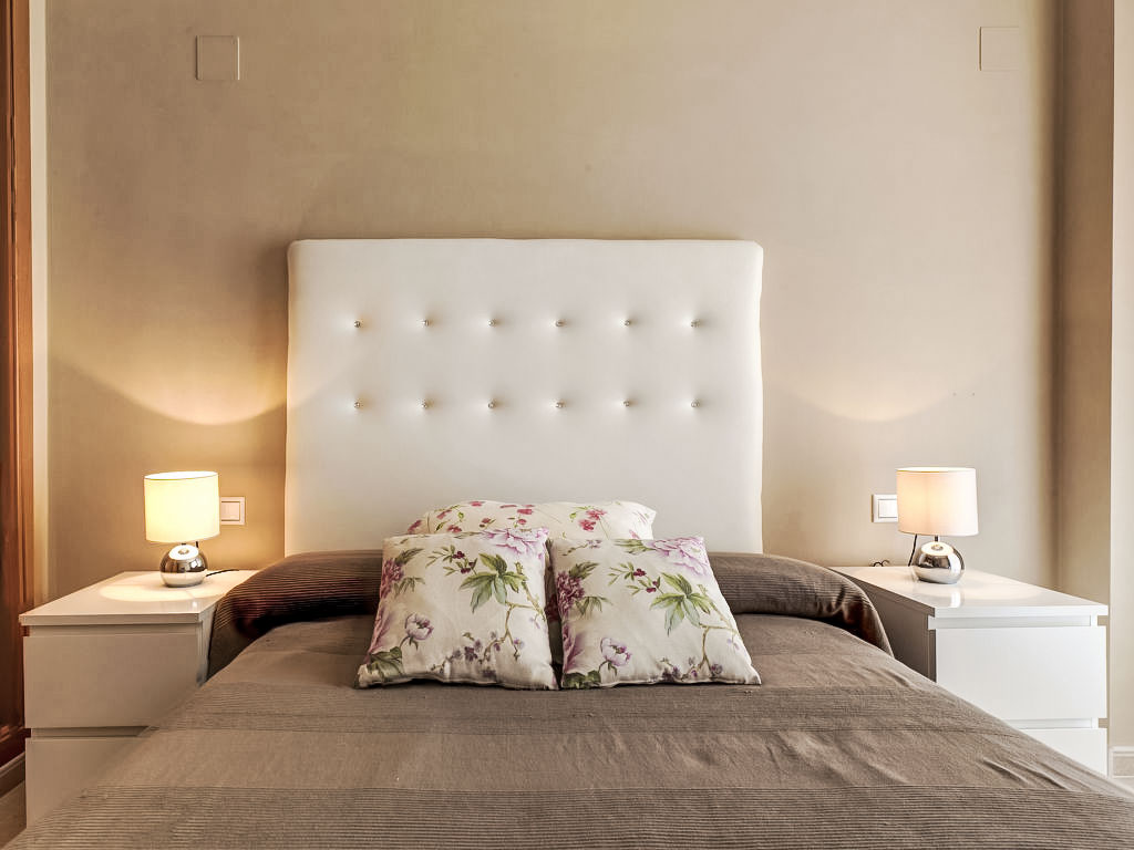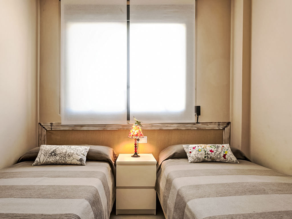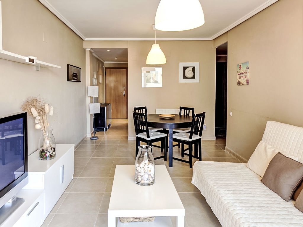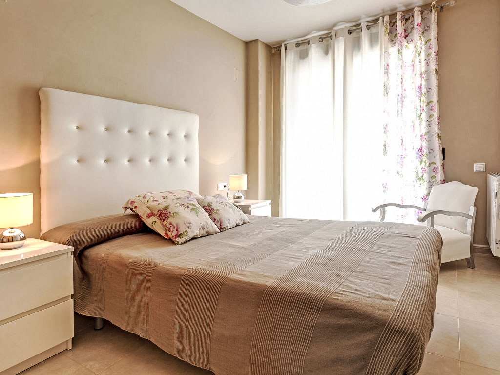 "Jacaranda", 3-Zimmer-Wohnung 60 m2 im 1. Stock. Zweckmässig eingerichtet: Wohn-/Esszimmer mit Digital-TV, Flachbildschirm und E-Heizung. Ausgang zur Terrasse. 1 Zimmer mit 1 franz. Bett (135 cm, Länge 190 cm), E-Heizung. Ausgang zur Terrasse. 1 Zimmer mit 2 Betten (90 cm, Länge 190 cm), E-Heizung. Küche (Backofen, 4 Glaskeramikherd Platten, Toaster, Wasserkocher, Mikrowelle, Tiefkühler, elektrische Kaffeemaschine). Bad/Bidet/WC, Dusche/WC. E-Heizung. Grosse Terrasse 18 m2. Terrassenmöbel. Zur Verfügung: Waschmaschine, Bügeleisen, Kinderhochstuhl, Babybett bis 2 Jahre, Haartrockner. Internet (Wireless LAN, gratis). Garage Nr. 1 (1 Auto). Bitte beachten: geeignet für Familien. Nichtraucher-Unterkunft. TV nur ES. AT-455756-A
