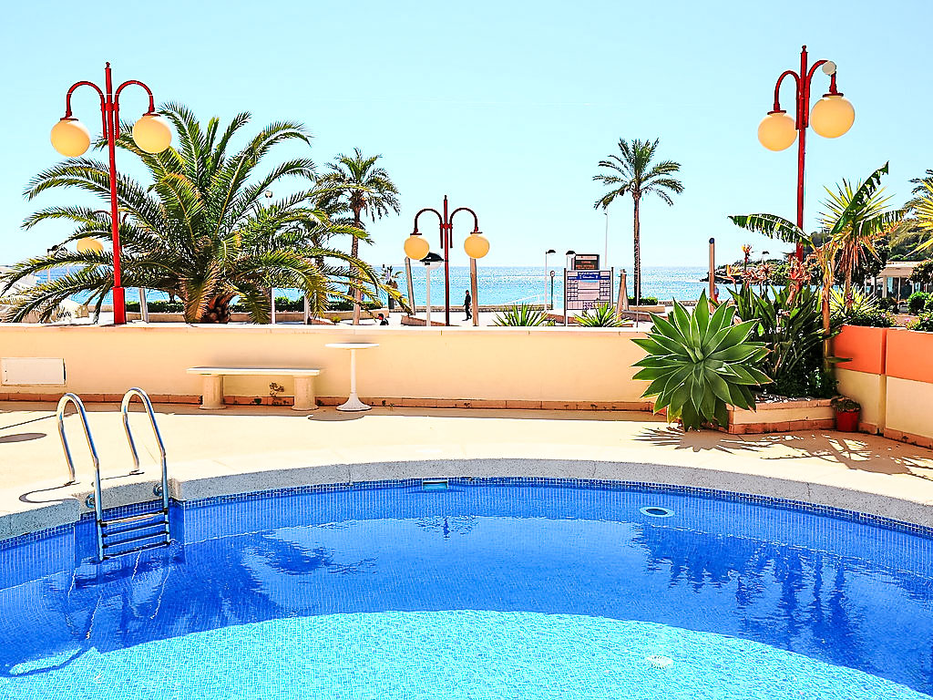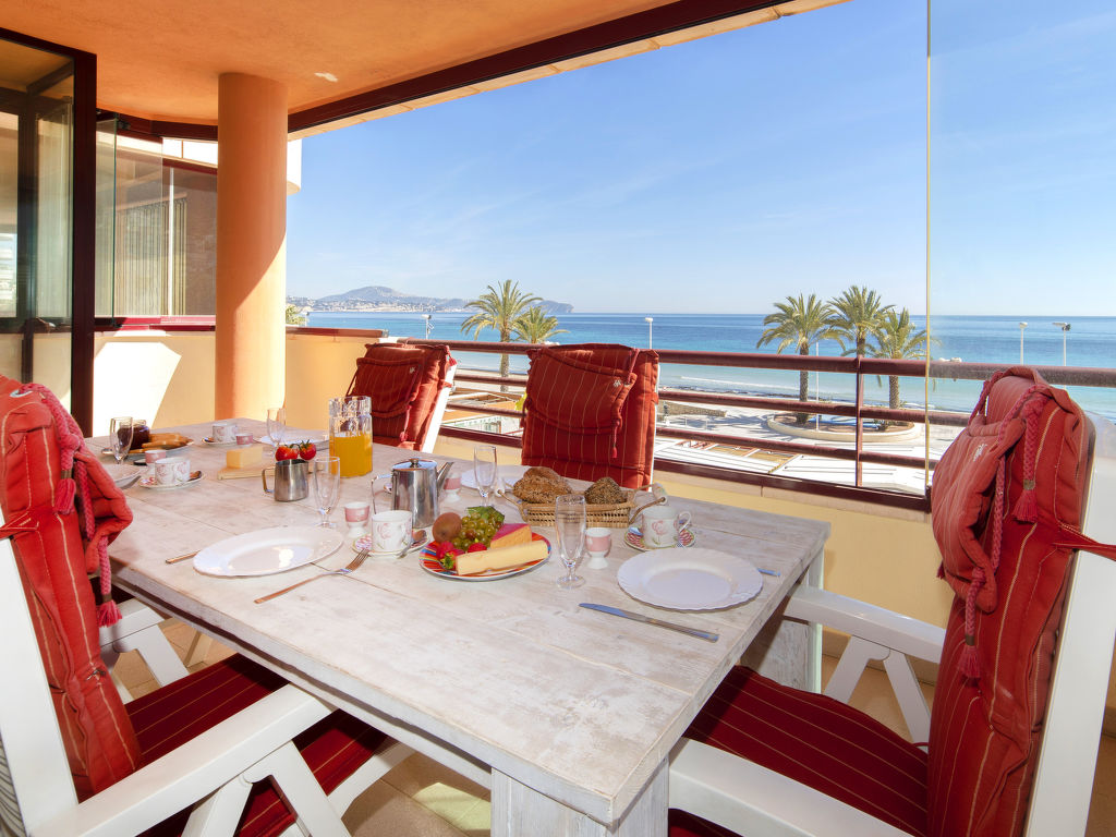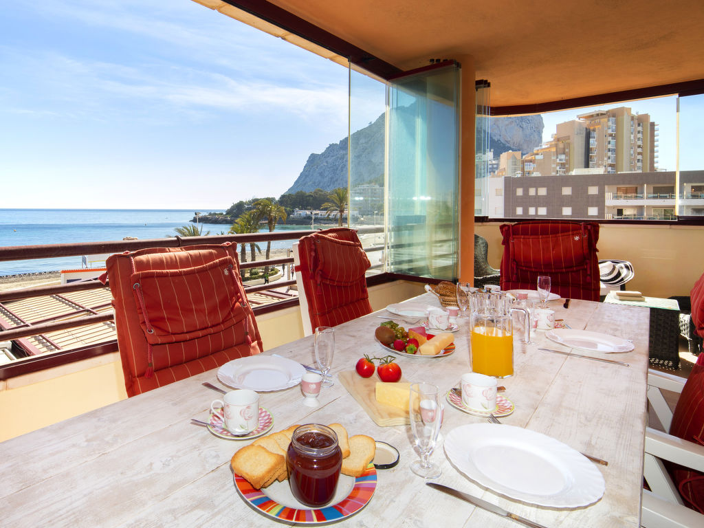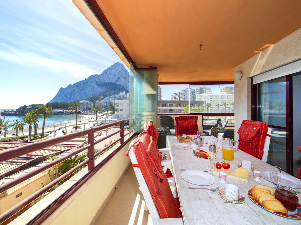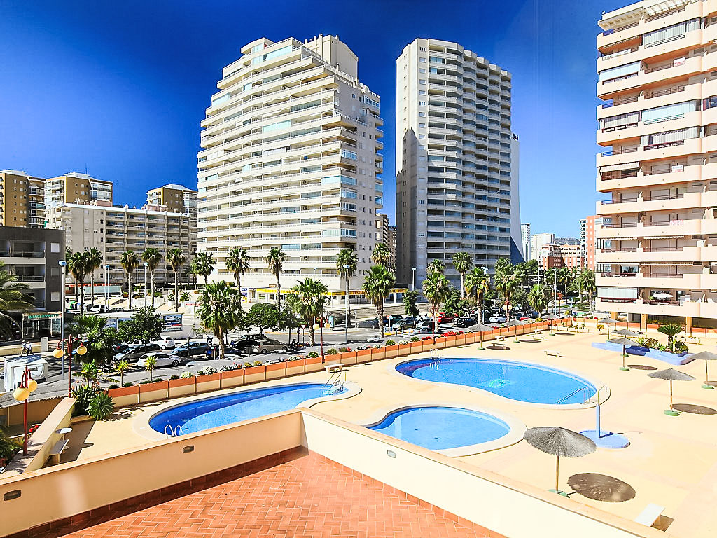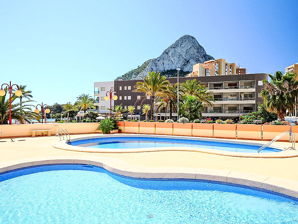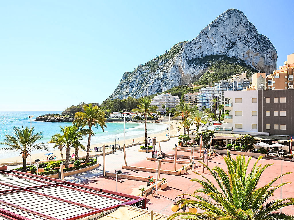 Playa Levante: Grosses, schönes Appartementhaus "Zafiro". 1.8 km vom Zentrum von Calpe, sonnige Lage, 50 m vom Meer, 50 m vom Strand, direkter Zugang zum Strand. Zur Mitbenutzung: Grundstück (eingezäunt), 3 Schwimmbäder (40 - 180 cm tief, saisonale Verfügbarkeit: 01.Jan.-31.Dez.). Kinderbecken, Aussendusche, Terrasse. Zur Alleinbenutzung: Terrasse. In der Anlage: Fahrstuhl. Supermarkt 100 m, Restaurant, Bar 10 m. Golfplatz (9 Loch) 12 km, Tennis 2 km. Nahe gelegene Sehenswürdigkeiten: Aqualandia, Mundomar, Terra Mítica, Terra Natura, Benidorm Palace (Benidorm). Wandergebiete: Peñon de Ifach 700 m.