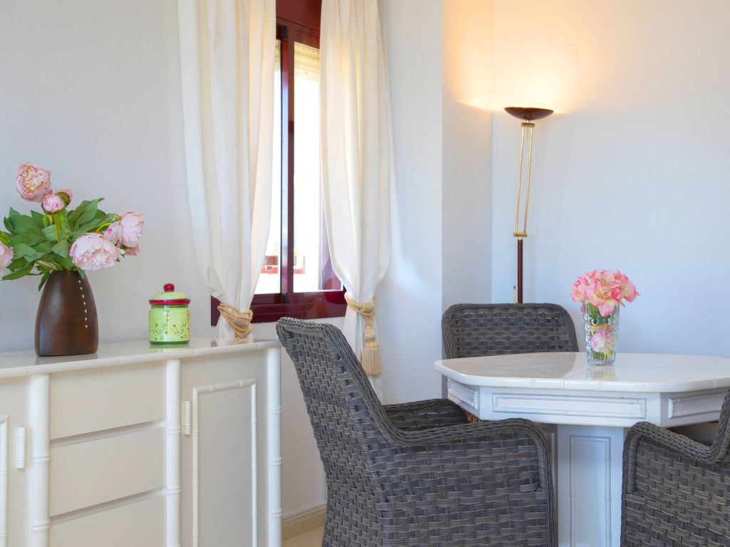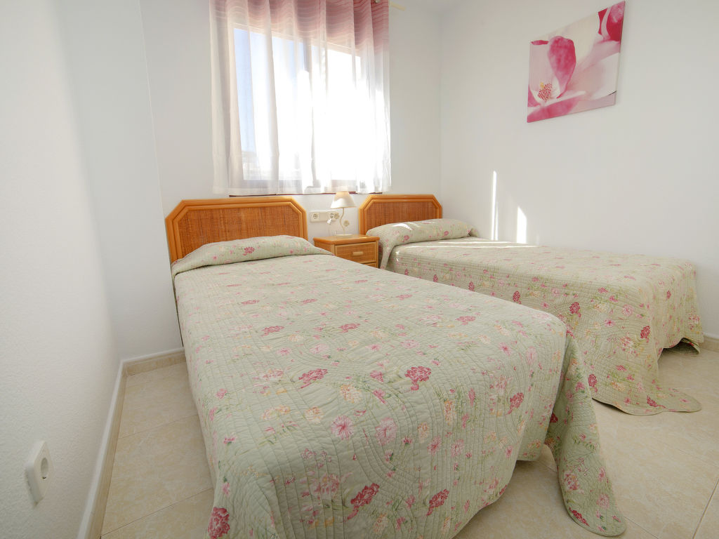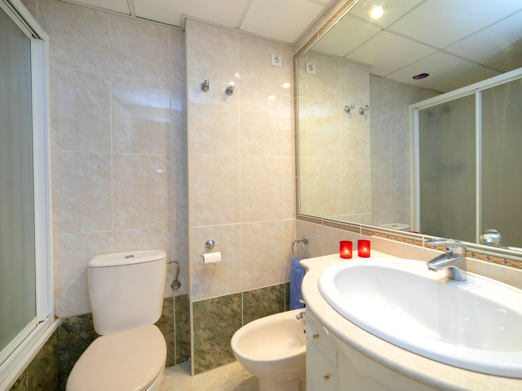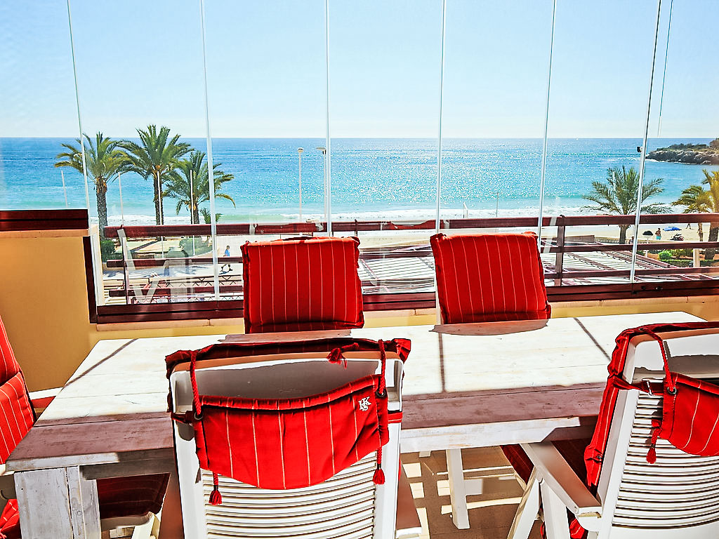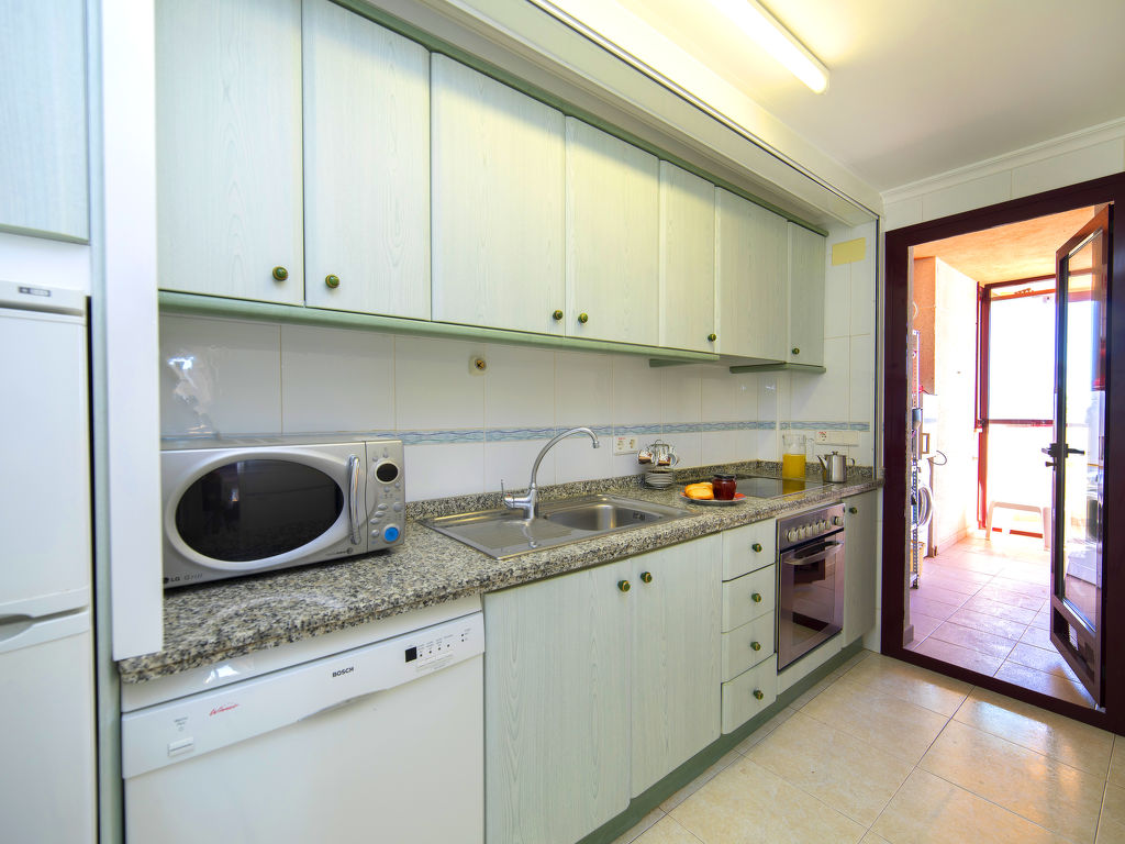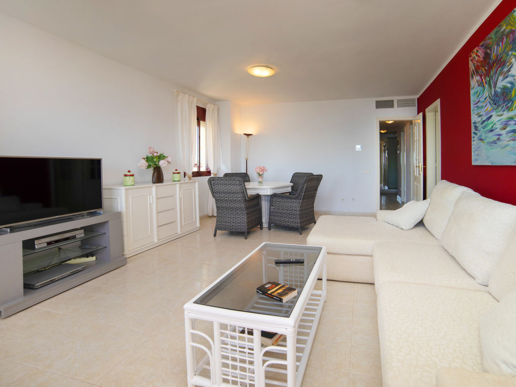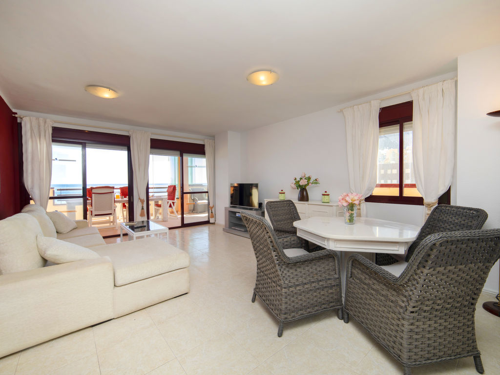 "Zafiro 01", 3-Zimmer-Wohnung 120 m2 im 2. Stock. Geräumig und hell, komfortabel und geschmackvoll eingerichtet: Wohn-/Esszimmer 26 m2 mit Sat-TV und Digital-TV. Ausgang zur Terrasse. 1 Zimmer mit 1 franz. Bett (180 cm, Länge 190 cm), Klimaanlage und Warmluftheizung. 1 Zimmer mit 2 Betten (90 cm, Länge 190 cm), Klimaanlage und Warmluftheizung. Küche (Backofen, Geschirrspüler, Toaster, Wasserkocher, Mikrowelle, Tiefkühler, elektrische Kaffeemaschine). Bad/Bidet/WC, Dusche/WC. E-Heizung, Klimaanlage. Grosse Terrasse. Terrassenmöbel, Liegestühle, Abstellkammer. Panoramasicht auf das Meer. Zur Verfügung: Waschmaschine. Parkplatz Nr. 89. Bitte beachten: Nichtraucher-Unterkunft. TV nur ES. AT-432363-A