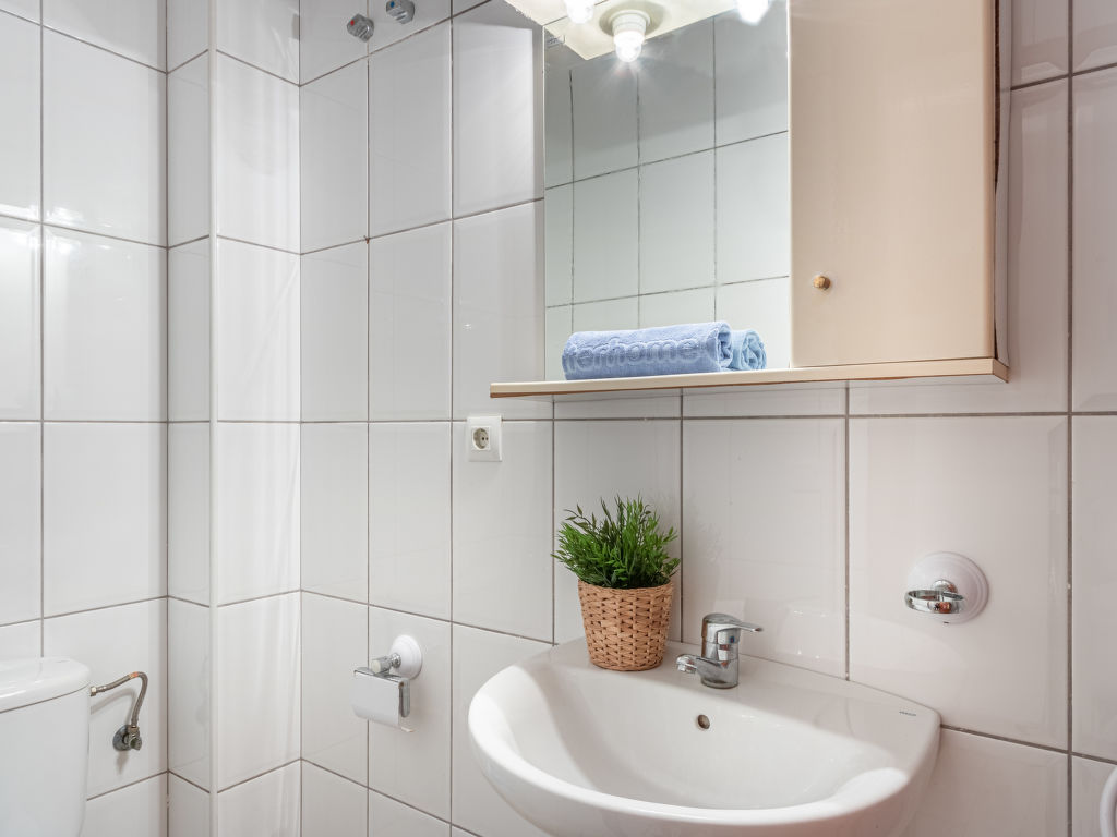 3-Zimmer-Wohnung 75 m2 auf 3 Stockwerken im 1. Stock. Hell, zweckmässig und komfortabel eingerichtet: Wohn-/Esszimmer mit Digital-TV, Flachbildschirm und Klimaanlage. Ausgang zur Terrasse. Offene Küche (Backofen, Geschirrspüler, 4 Glaskeramikherd Platten, Mikrowelle). Sep. WC. Obergeschoss: 1 Zimmer mit 1 franz. Bett. 1 Zimmer mit 1 x 2 Etagenbetten. Bad/Bidet/WC. Terrasse 20 m2. Terrassenmöbel, Liegestühle. Sehr schöne Sicht auf den Kanal. Zur Verfügung: Waschmaschine. Internet (Wireless LAN, gratis). Bitte beachten: Maximal 1 Haustier/Hund erlaubt. TV nur ES. HUTG017577