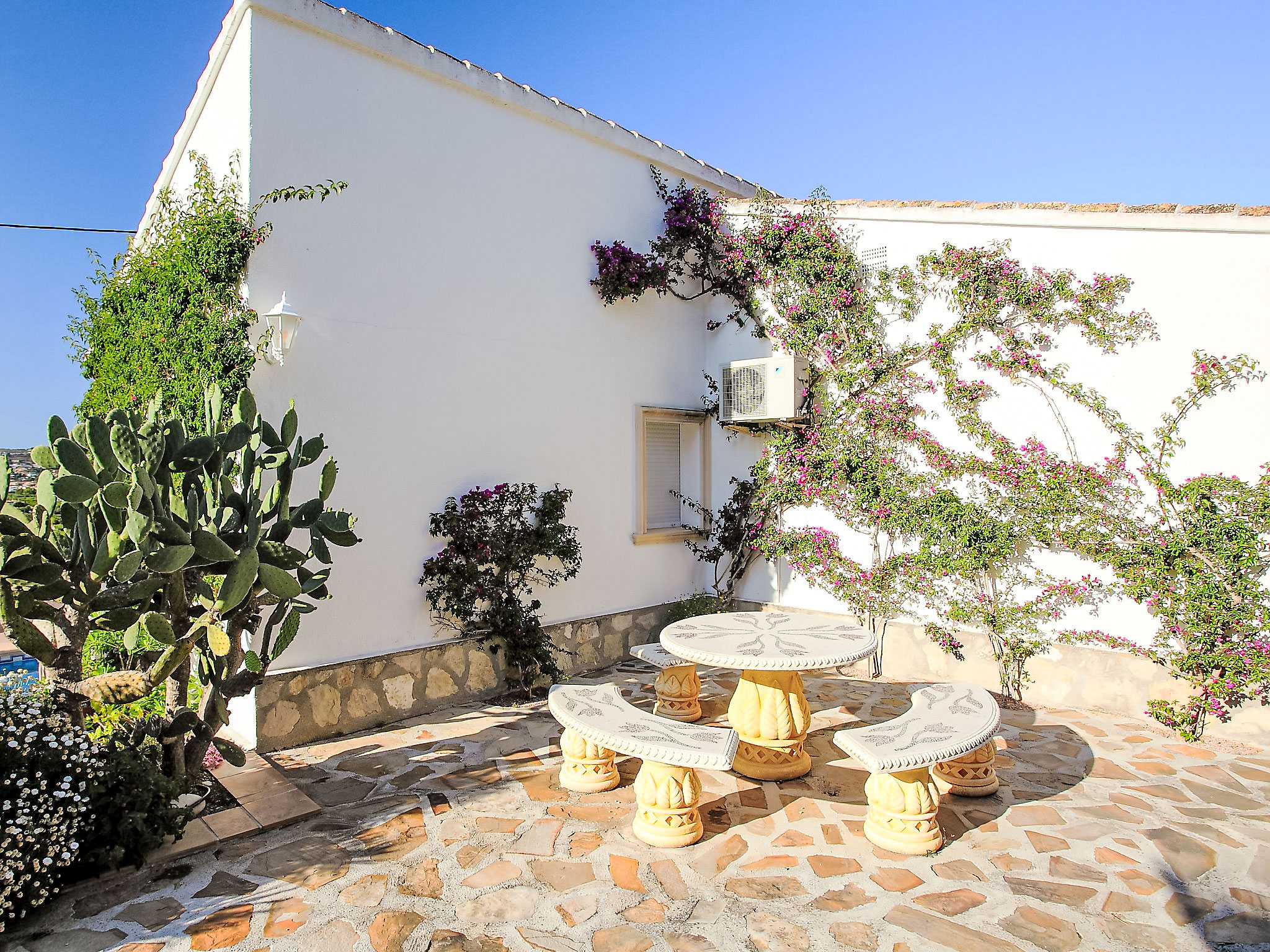 Schönes Haus "Sara". Im Ortsteil Adsubia, ruhige, sonnige, erhöhte Lage in einem Wohnquartier, 5 km vom Meer. Zur Alleinbenutzung: Garten 780 m2 (eingezäunt) mit Pflanzen, Naturgarten 780 m2, Schwimmbad nicht einsehbar (4 x 8 m, 01.01.-31.12.) mit Innentreppe. Aussendusche. Im Hause: Zentralheizung. Supermarkt 4 km, Restaurant 4 km, Sandstrand "Arenal" 5 km. Jugendgruppen nur auf Anfrage.