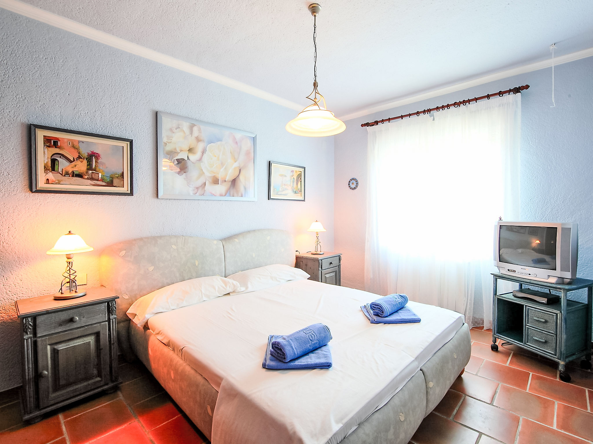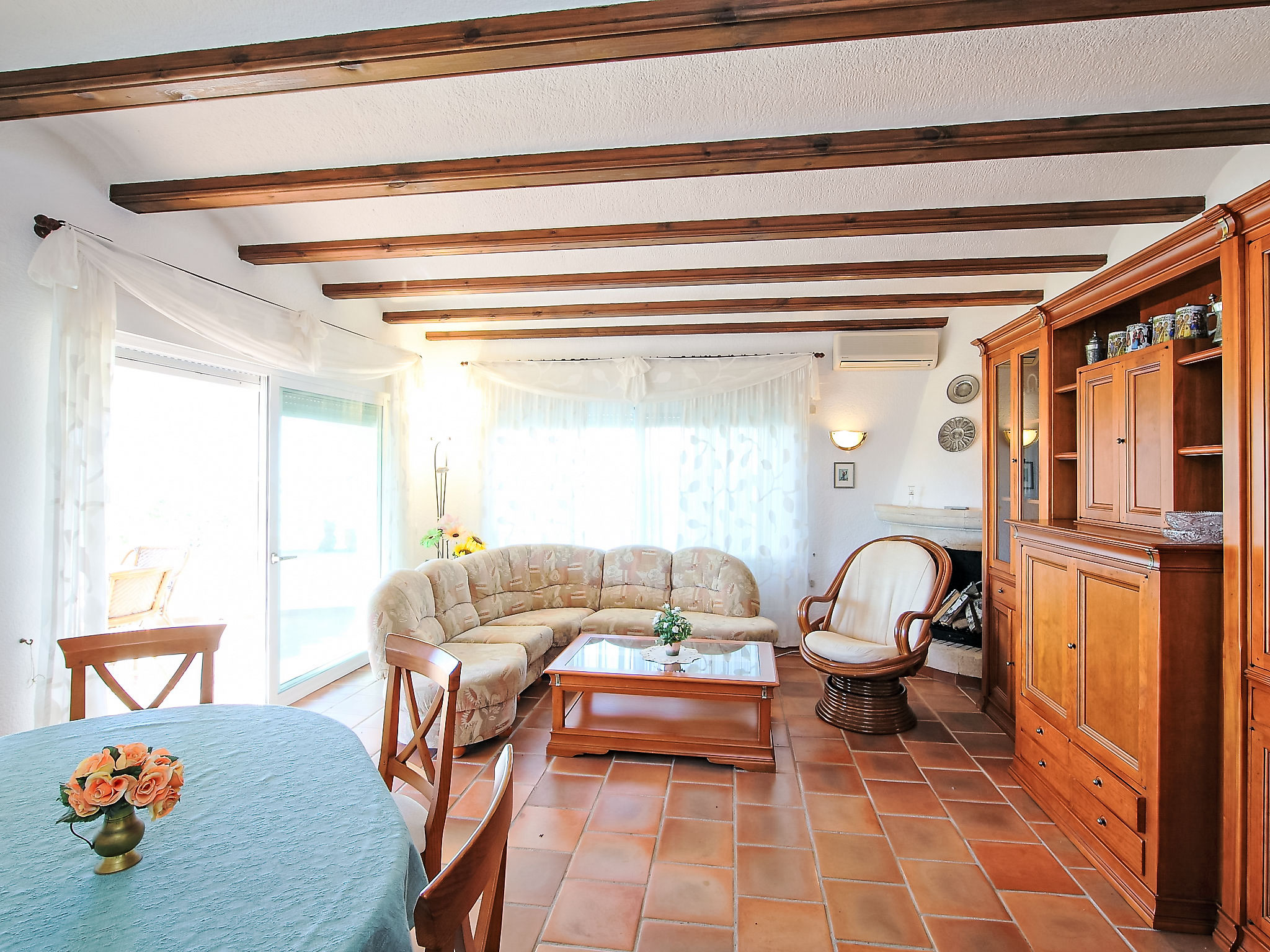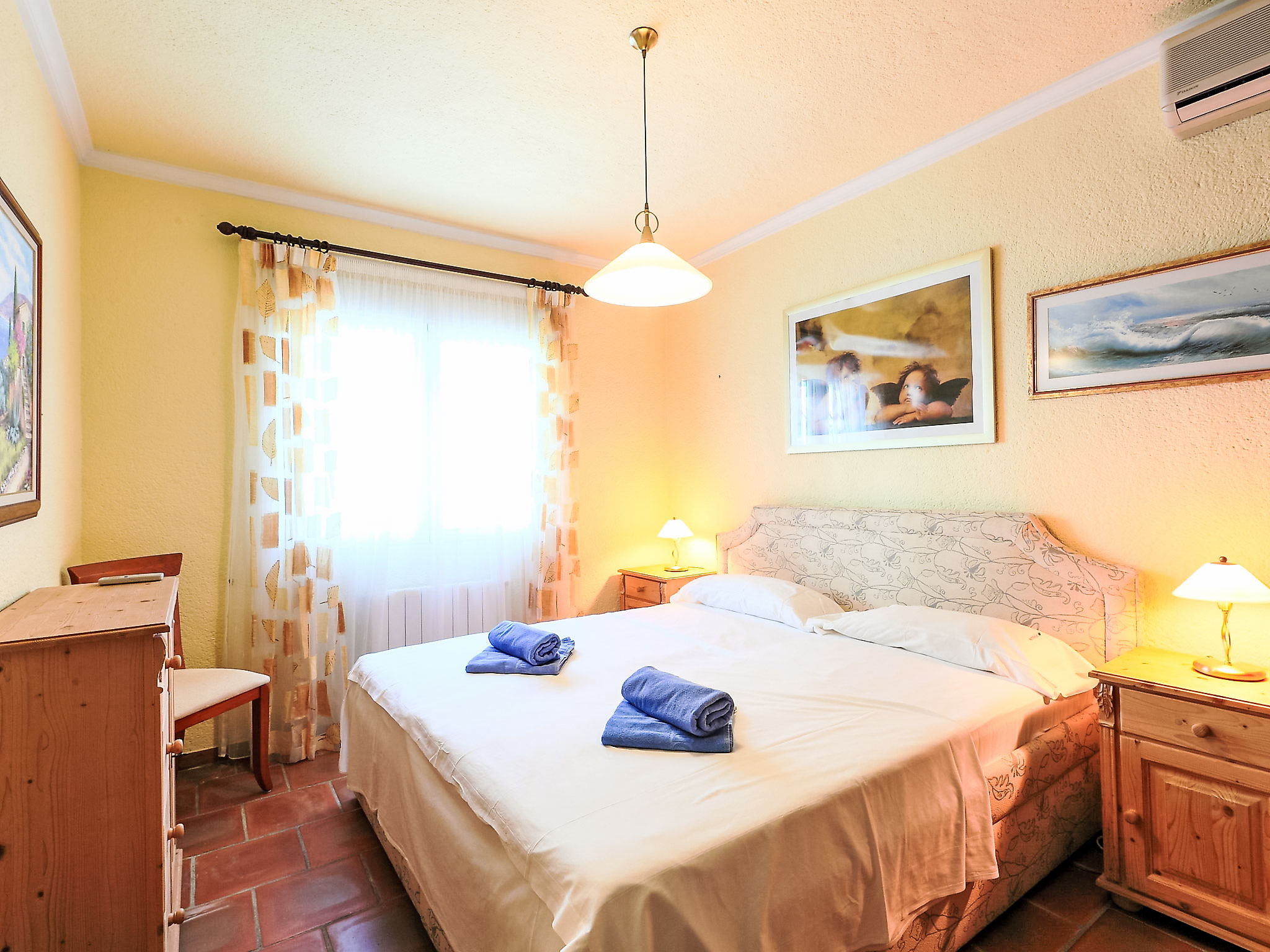 "Casa Sara", 4-Zimmer-Haus 128 m2. Komfortabel eingerichtet: Wohn-/Esszimmer mit Sat-TV, Digital-TV und Klimaanlage. Ausgang zur Terrasse. 1 Zimmer mit 1 franz. Bett, Dusche/WC, mit Eckbadewanne, Sat-TV, Flachbildschirm und Klimaanlage. 2 Zimmer, jedes Zimmer mit 1 franz. Bett. Küche (Backofen, Geschirrspüler, 4 Glaskeramikherd Platten, Mikrowelle, Tiefkühler, elektrische Kaffeemaschine). Ausgang zur Terrasse. Bad/Bidet/WC, sep. WC. Grosse Terrasse 31 m2, überdacht. Terrassenmöbel, Gartengrill (mobil), Liegestühle (6). Schöne Sicht auf das Meer und die Landschaft. Zur Verfügung: Waschmaschine, Wäschetrockner. Internet (Wireless LAN, gratis). Parkplatz (eingezäunt, 3 Autos). Bitte beachten: 1 Haustier/Hund erlaubt. TV nur DE, ES. Bitte beachten Sie: Das Haus hat keine nationalen Kanäle. Verfügbar: Netflix. AT-440948-A