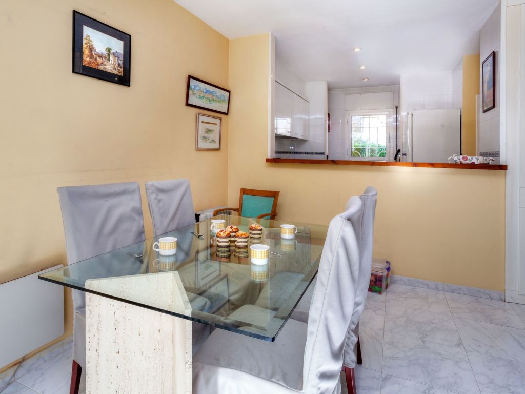 "Trebol Rojo", 4-Zimmer-Reihenhaus auf 2 Stockwerken. Zweckmässig eingerichtet: Wohn-/Esszimmer mit offenem Kamin (nur Deko), Digital-TV. Ausgang zum Gartensitzplatz. Offene Küche (Geschirrspüler, 4 Glaskeramikherd Platten, Mikrowelle, elektrische Kaffeemaschine). Sep. WC. Boiler (100 Liter). Obergeschoss: 1 Zimmer mit 1 franz. Bett (150 cm, Länge 190 cm). Ausgang zum Balkon. 2 Zimmer, jedes Zimmer mit 2 Ausziehbetten (2 Pers. 2 x 90 cm, Länge 190 cm). Bad/Bidet/WC. Gartensitzplatz. Terrassenmöbel. Zur Verfügung: Waschmaschine, Wäschetrockner, Bügeleisen, Kinderhochstuhl, Babybett, Haartrockner. Internet (Wireless LAN, gratis). Parkplatz. Bitte beachten: TV nur ES. HUTG008898