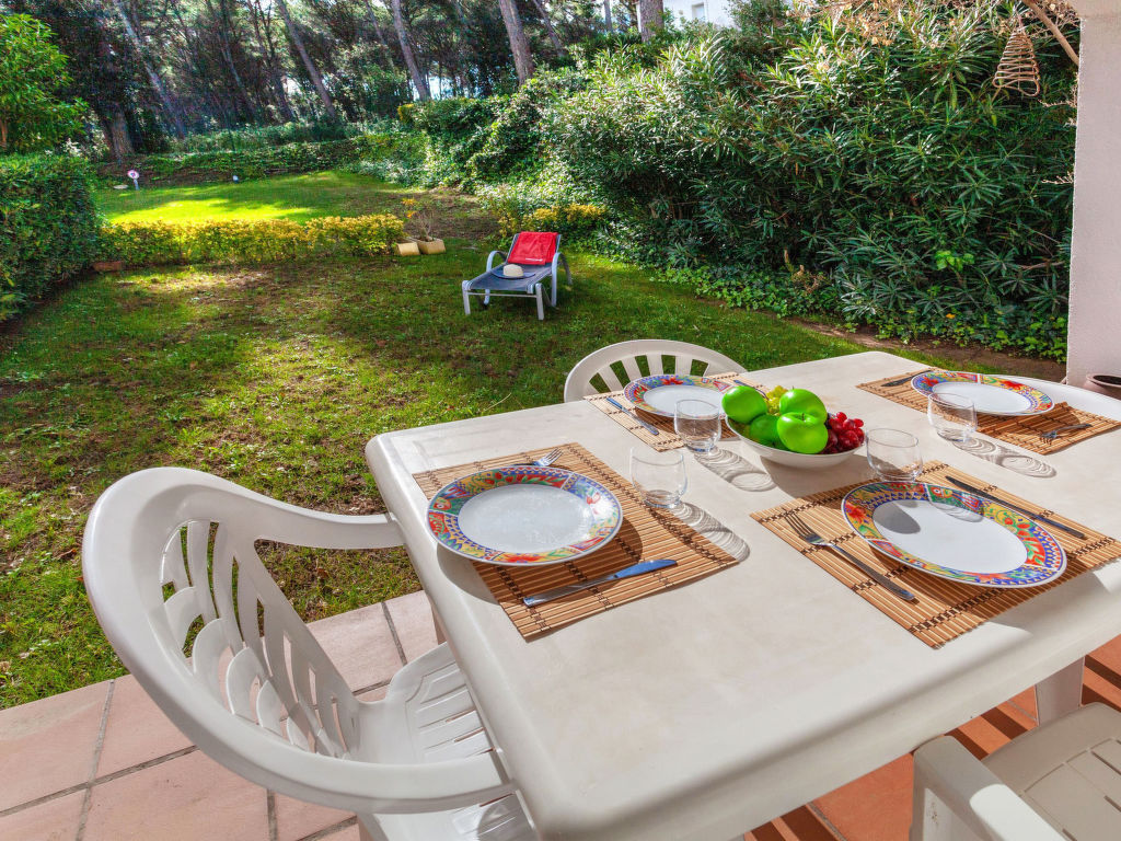Reihenhaus "Trebol". 1900 km vom Meer. Zur Mitbenutzung: mit Rasen, Naturgarten, Schwimmbad (10 x 6 m, 95 - 185 cm tief, saisonale Verfügbarkeit: 15.Mai.-16.Okt.). Aussendusche. Supermarkt 1 km, Restaurant 1 km, Sandstrand "Playa de Pals" 1.9 km. Golfplatz (18 Loch) 400 m. Nahe gelegene Sehenswürdigkeiten: Illes Medes 17 km.