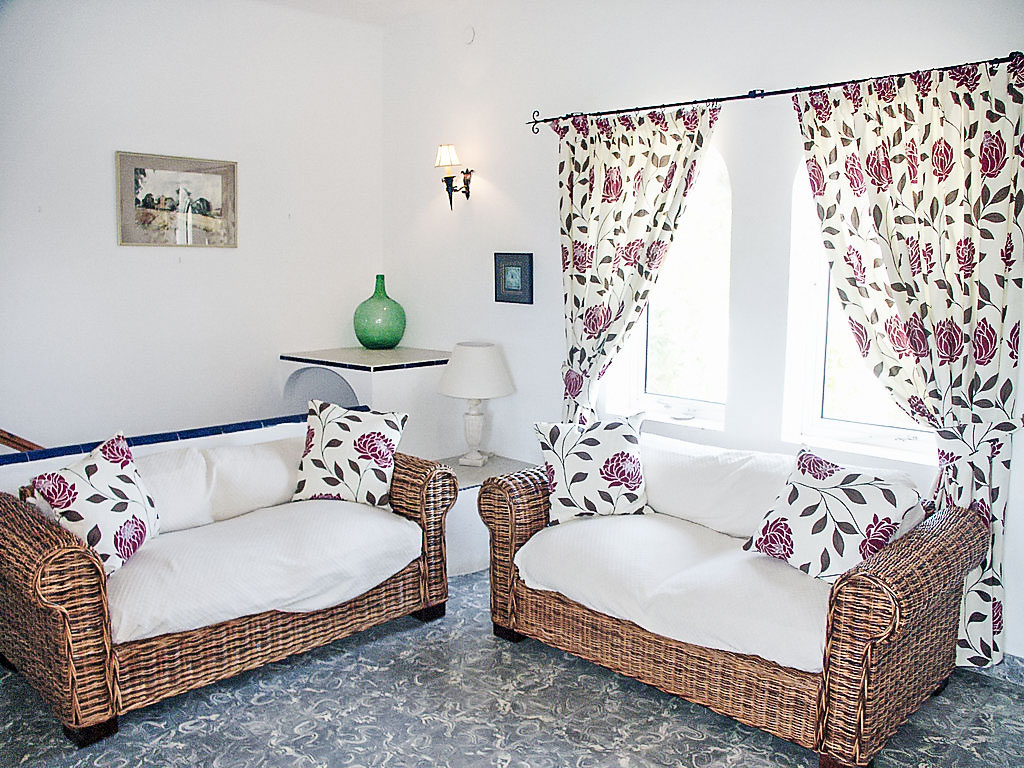 "Carolina", 4-Zimmer-Haus 142 m2 auf 2 Stockwerken. Geräumig, zweckmässig und rustikal eingerichtet: Wohn-/Esszimmer 22 m2 mit offenem Kamin, Sat-TV, Digital-TV und DVD. Ausgang zur Terrasse. 1 Zimmer mit 2 Betten (90 cm, Länge 180 cm), Ventilator. Küche 5 m2 (Backofen, Geschirrspüler, 3 Glaskeramikherd Platten, Toaster, Wasserkocher, Mikrowelle, Tiefkühler, elektrische Kaffeemaschine). Ausgang zum Garten. Bad/WC. Unteres Geschoss: 2 Zimmer, jedes Zimmer mit 2 Betten (90 cm, Länge 180 cm), Ventilator. Ausgang zum Garten. Dusche/WC. Terrassenmöbel. Schöne Sicht auf das Meer. Zur Verfügung: Waschmaschine, Bügeleisen, Kinderhochstuhl, Babybett bis 2 Jahre, Haartrockner. Internet (Wireless LAN, gratis). Parkplatz, Garage. AT-4126-A