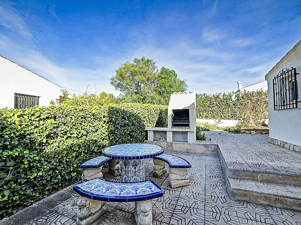 3-Zimmer-Haus 85 m2. Zweckmässig und komfortabel eingerichtet: Wohn-/Esszimmer mit Sat-TV und Digital-TV. Ausgang zur Terrasse. 1 Zimmer mit 1 franz. Bett (160 cm, Länge 200 cm), Dusche/WC und Klimaanlage. 1 Zimmer mit 2 Betten (90 cm, Länge 190 cm), Klimaanlage. Küche (Backofen, Geschirrspüler, 4 Glaskeramikherd Platten, Mikrowelle, Tiefkühler, elektrische Kaffeemaschine). Bad/Bidet/WC. E-Heizung, G-Heizung. Terrasse überdacht. Terrassenmöbel, Gartengrill, Liegestühle (4). Zur Verfügung: Waschmaschine, Bügeleisen, Kinderhochstuhl, Babybett bis 2 Jahre. Internet (Wireless LAN, gratis). Parkplatz (eingezäunt) beim Haus. Bitte beachten: TV nur ES, FR, DE. AT-411549-A