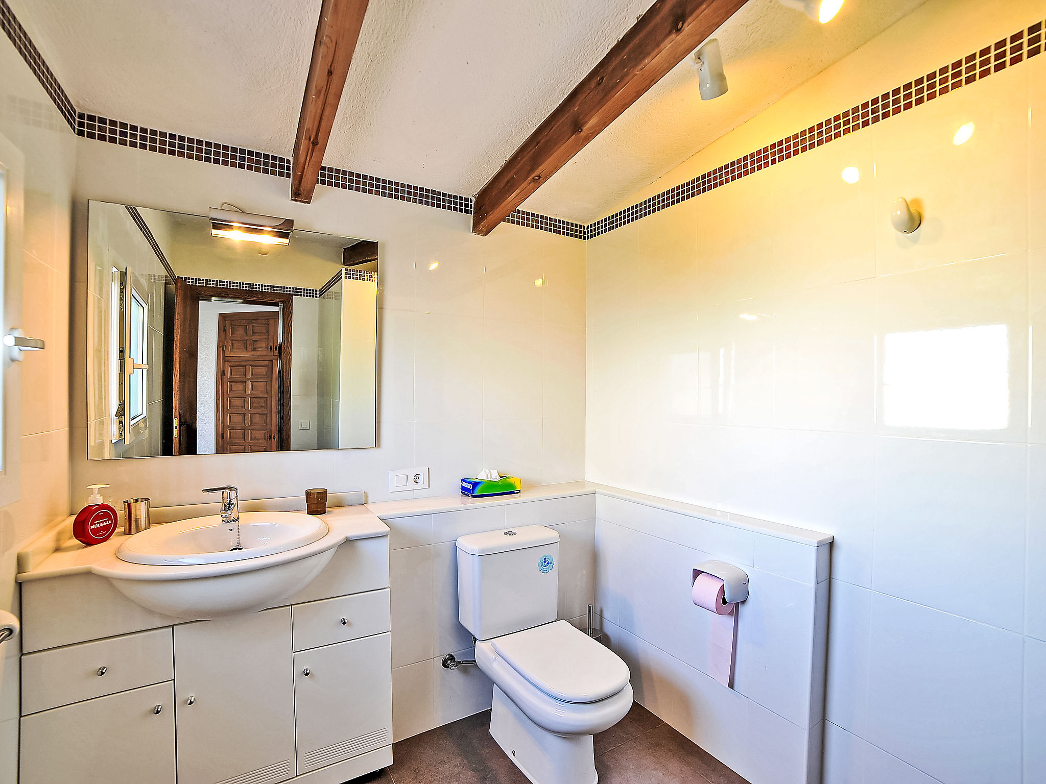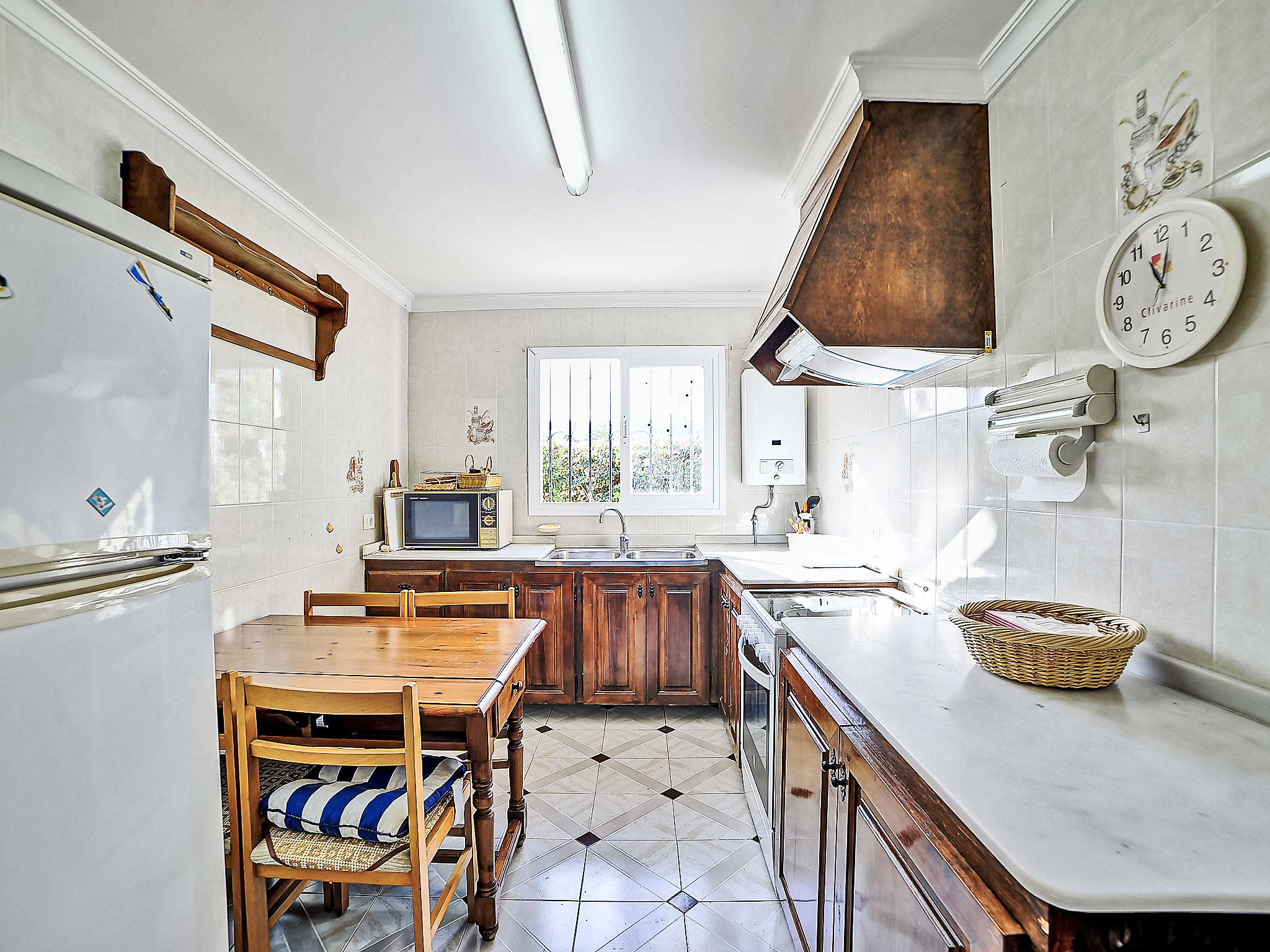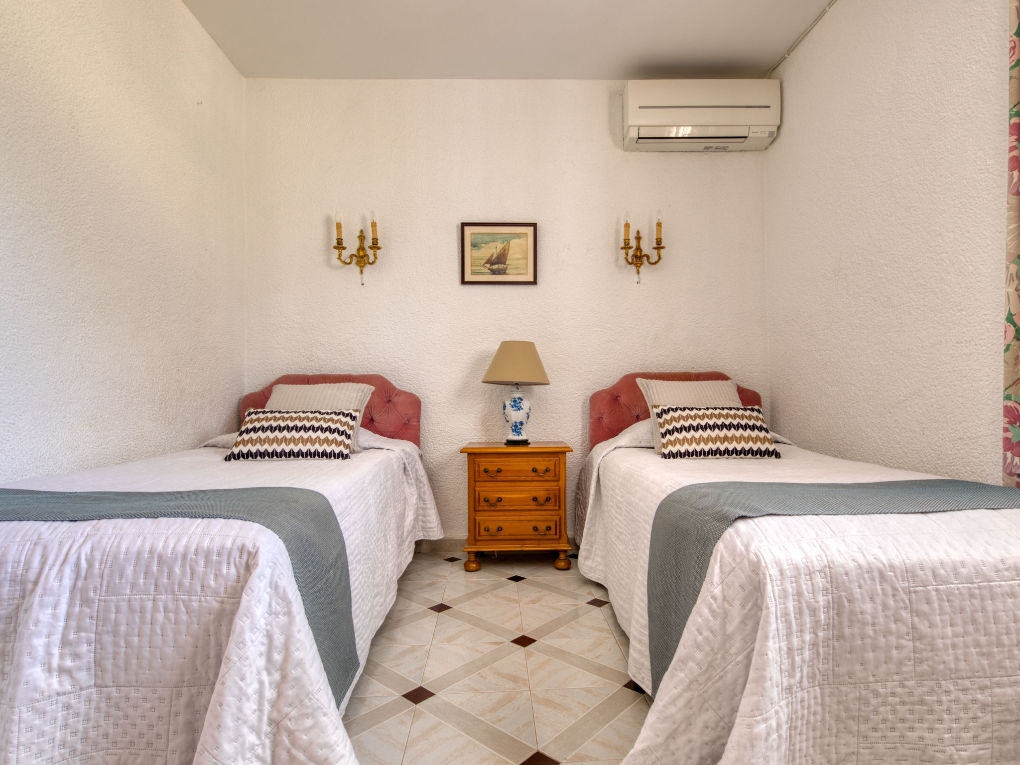 3-Zimmer-Haus 85 m2. Zweckmässig und komfortabel eingerichtet: Wohn-/Esszimmer mit Sat-TV und Digital-TV. Ausgang zur Terrasse. 1 Zimmer mit 1 franz. Bett (160 cm, Länge 200 cm), Dusche/WC und Klimaanlage. 1 Zimmer mit 2 Betten (90 cm, Länge 190 cm), Klimaanlage. Küche (Backofen, Geschirrspüler, 4 Glaskeramikherd Platten, Mikrowelle, Tiefkühler, elektrische Kaffeemaschine). Bad/Bidet/WC. E-Heizung, G-Heizung. Terrasse überdacht. Terrassenmöbel, Gartengrill, Liegestühle (4). Zur Verfügung: Waschmaschine, Bügeleisen, Kinderhochstuhl, Babybett bis 2 Jahre. Internet (Wireless LAN, gratis). Parkplatz (eingezäunt) beim Haus. Bitte beachten: TV nur ES, FR, DE. AT-411549-A