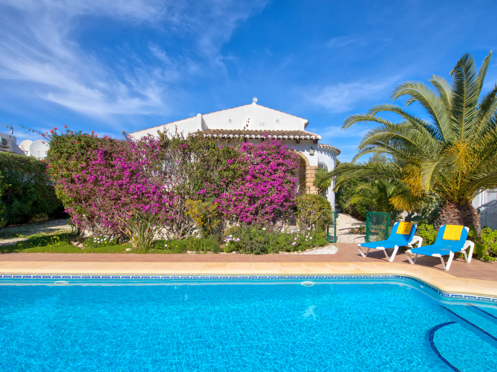Haus "Pinomar". Im Ortsteil Pinomar, 3 km vom Meer, an einer Hauptstrasse. Zur Alleinbenutzung: Garten (eingezäunt) mit Pflanzen und Blumen, Schwimmbad geschützt, eingezäunt (4 x 8 m, 01.01.-31.12.) mit Innentreppe. Aussendusche. Einkaufsgeschäft 2.5 km, Supermarkt 2.5 km, Restaurant 50 m, Bar 2.5 km, Sandstrand "Arenal" 3 km. Golfplatz (9 Loch) 3 km. Jugendgruppen nur auf Anfrage.
