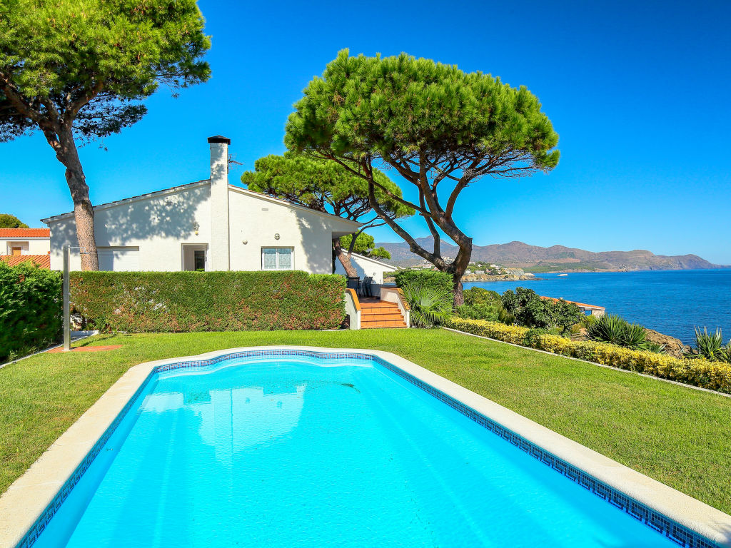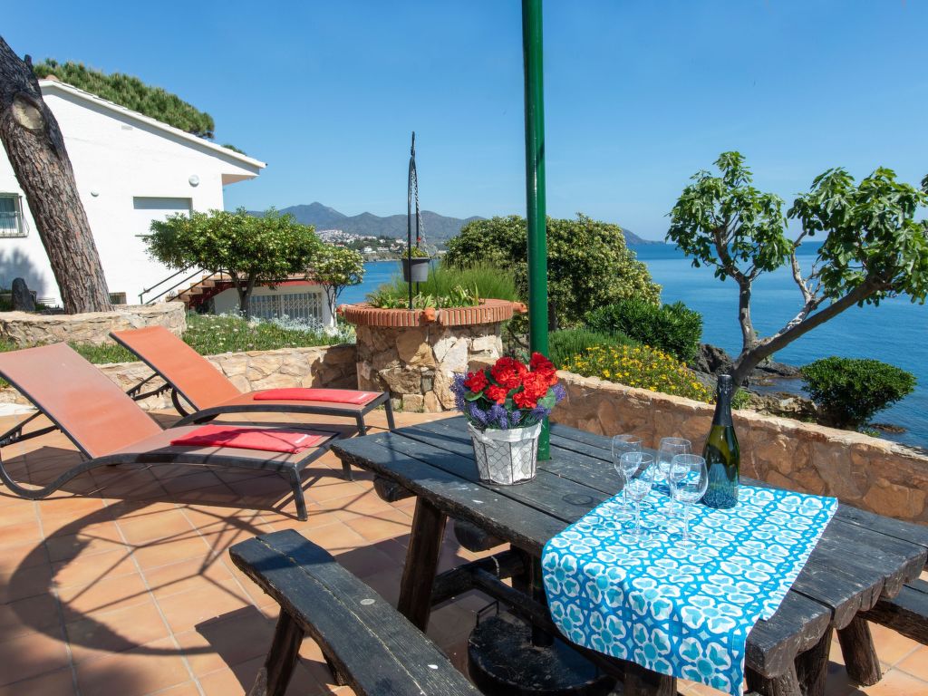 Fane de Baix 5 km von El Port de la Selva: Das Haus liegt an vorderster Reihe zum Meer. Schönes, gemütliches Haus "El Paraiso", auf 2 Stockwerken. 4 Häuser im Ferienresort. 11 Wohnungen in der Residenz. 2 km vom Zentrum von Llançà, ruhige, sonnige Lage, 25 m vom Meer. Zur Mitbenutzung: Grundstück 6'000 m2 mit Pflanzen und Bäumen, Schwimmbad (17 x 7 m, 200 cm tief, saisonale Verfügbarkeit: 01.Jun.-30.Sep.) mit Innentreppe und Salzelektrolyse-Reinigungssystem. Tennis, Kinderspielplatz. Zur Alleinbenutzung: Garten mit Rasen und Pflanzen, Schwimmbad eckig (10 x 4 m, 100 - 200 cm tief, 01.05.-30.10.) mit Innentreppe. Gartenmöbel. Treppenweg (4 Stufen) bis zum Haus. Einzelgarage. Einkaufszentrum 2 km, Kieselstrand 400 m. Golfplatz (18 Loch) 18 km. Nahe gelegene Sehenswürdigkeiten: Cadaqués 16 km, Golf Peralada 18 km, Casino Peralada 18 km. Jugendgruppen nur auf Anfrage. Tennis 1 h, von 9-18 Uhr gratis. Das Haus liegt vor dem Camino de Ronda von Llançá-Port de la Selva (der Weg ist über Treppen erreichbar).