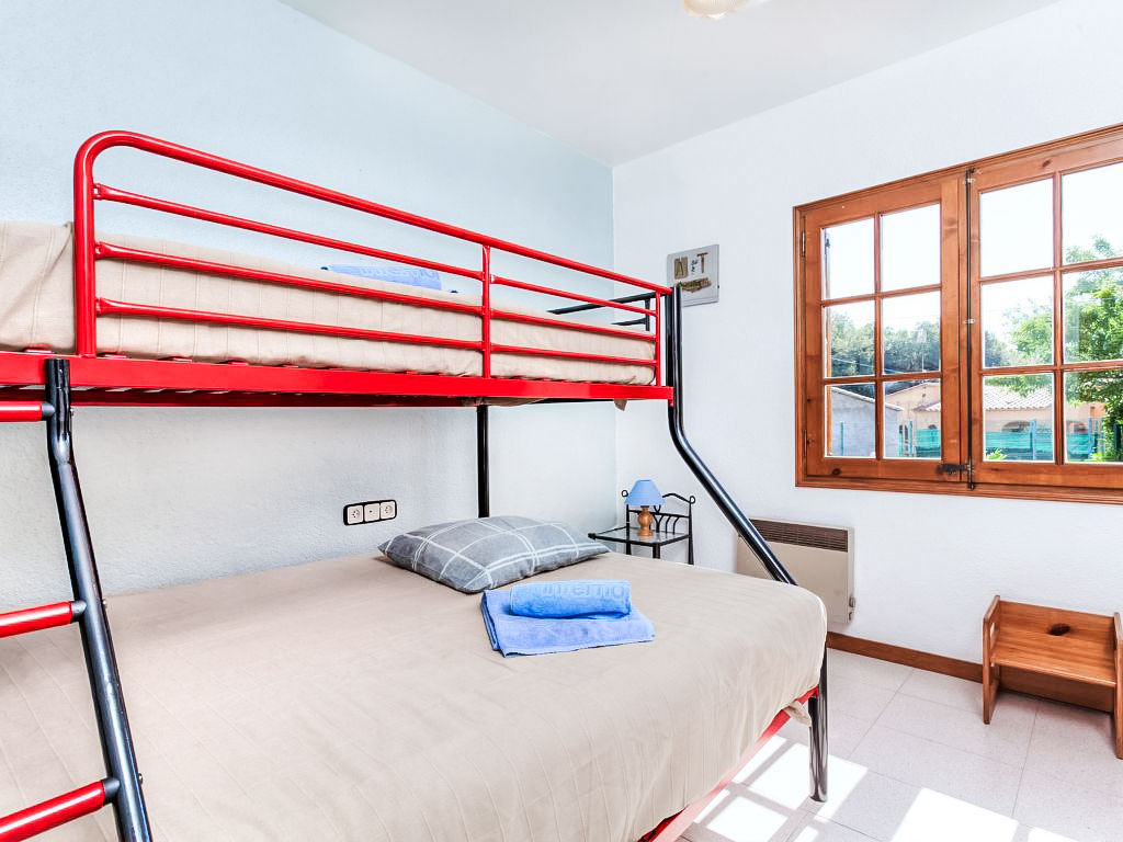 3-Zimmer-Haus 62 m2. Wohn-/Esszimmer mit offenem Kamin und Ventilator. 1 Zimmer mit 1 Bett (150 cm, Länge 190 cm), 1 x 1 Etagenbetten (90 cm, Länge 190 cm). 1 Zimmer mit 1 franz. Bett. Offene Küche (4 Kochplatten, Backofen, Toaster, Wasserkocher, Mikrowelle, Tiefkühler, elektrische Kaffeemaschine). Bad/WC. Terrasse. Terrassenmöbel, Gartengrill, Liegestühle (4). Zur Verfügung: Waschmaschine, Kinderhochstuhl. Internet (Wireless LAN, gratis). Bitte beachten: TV nur FR. HUTG022616