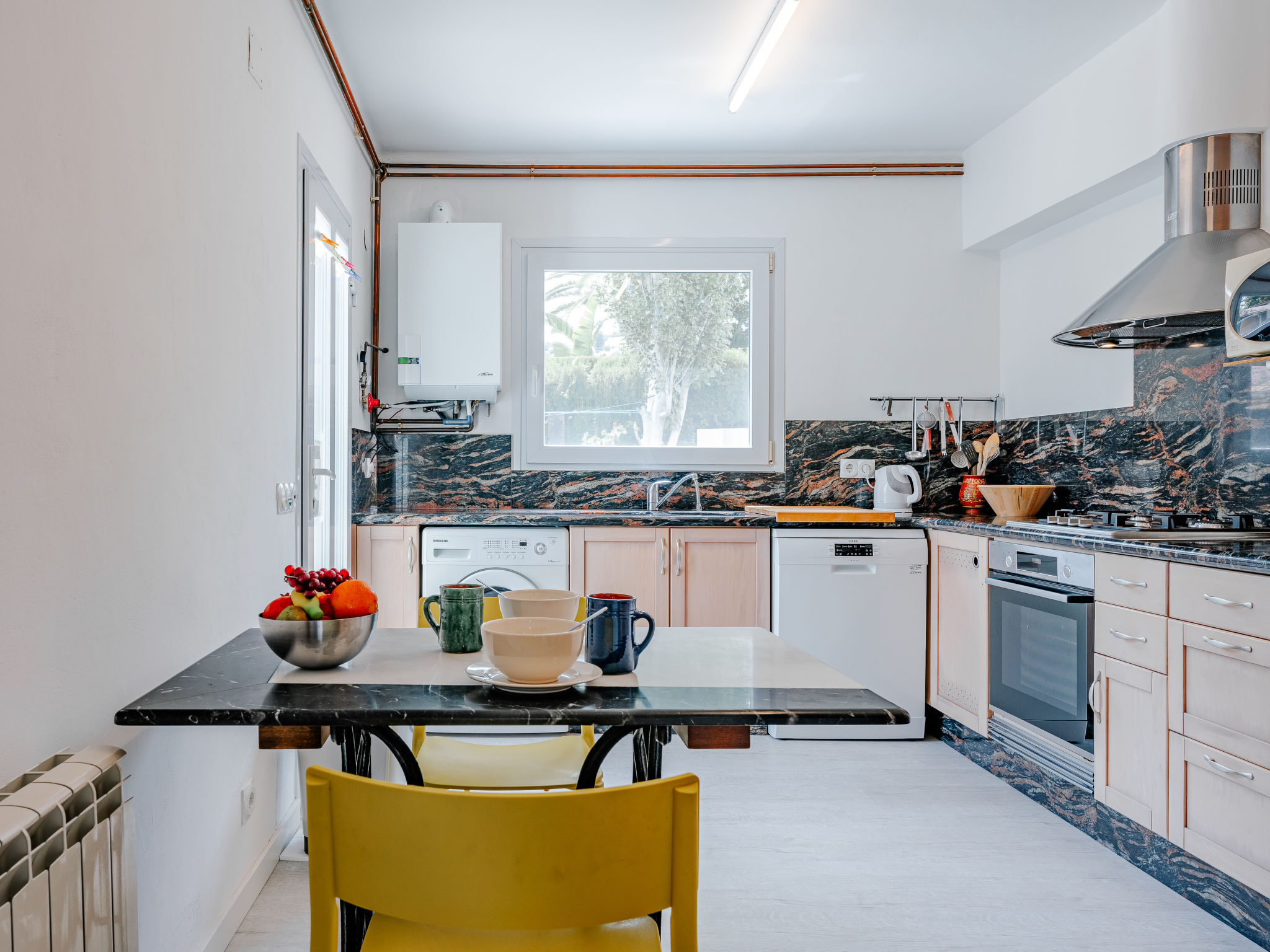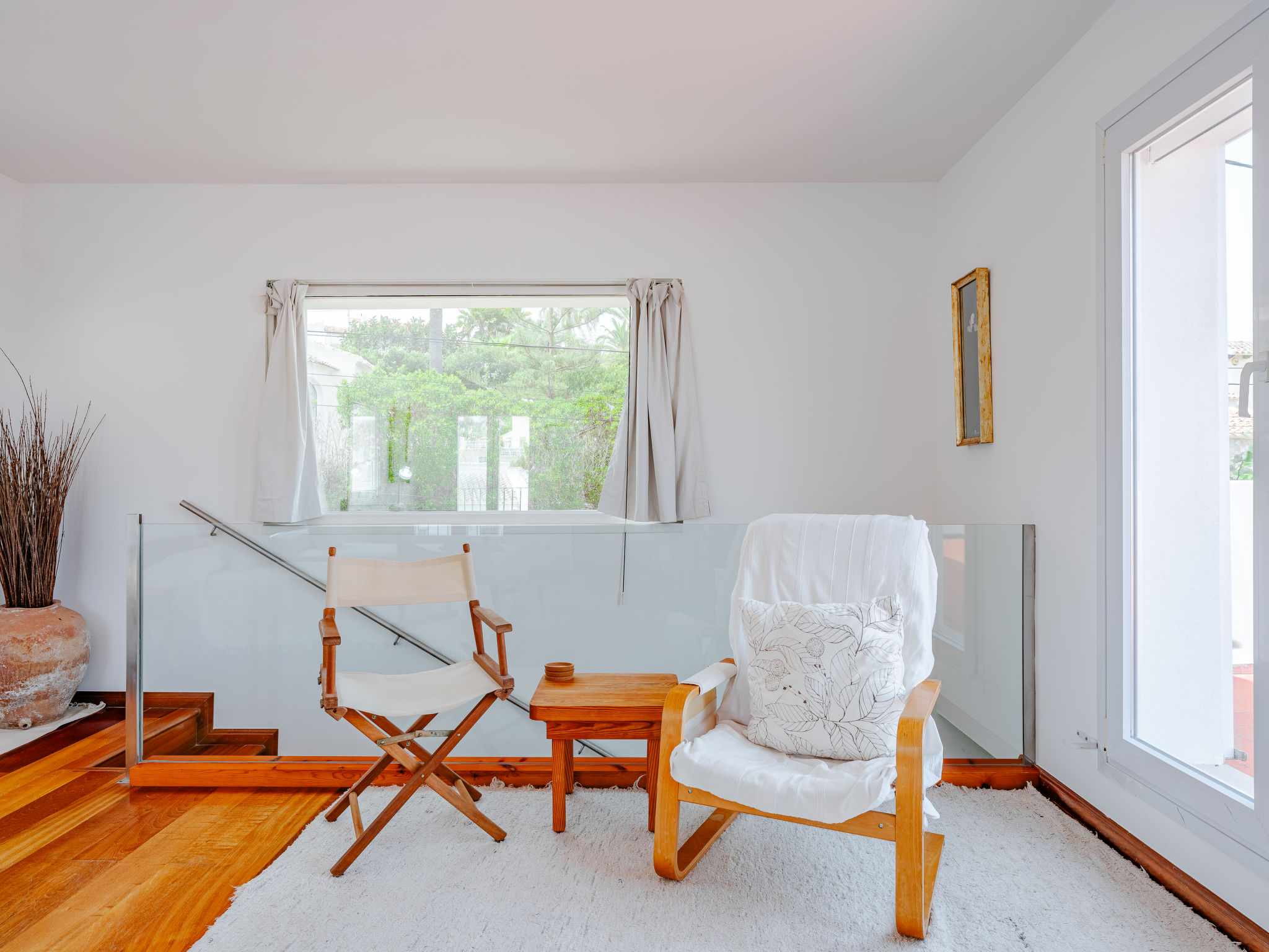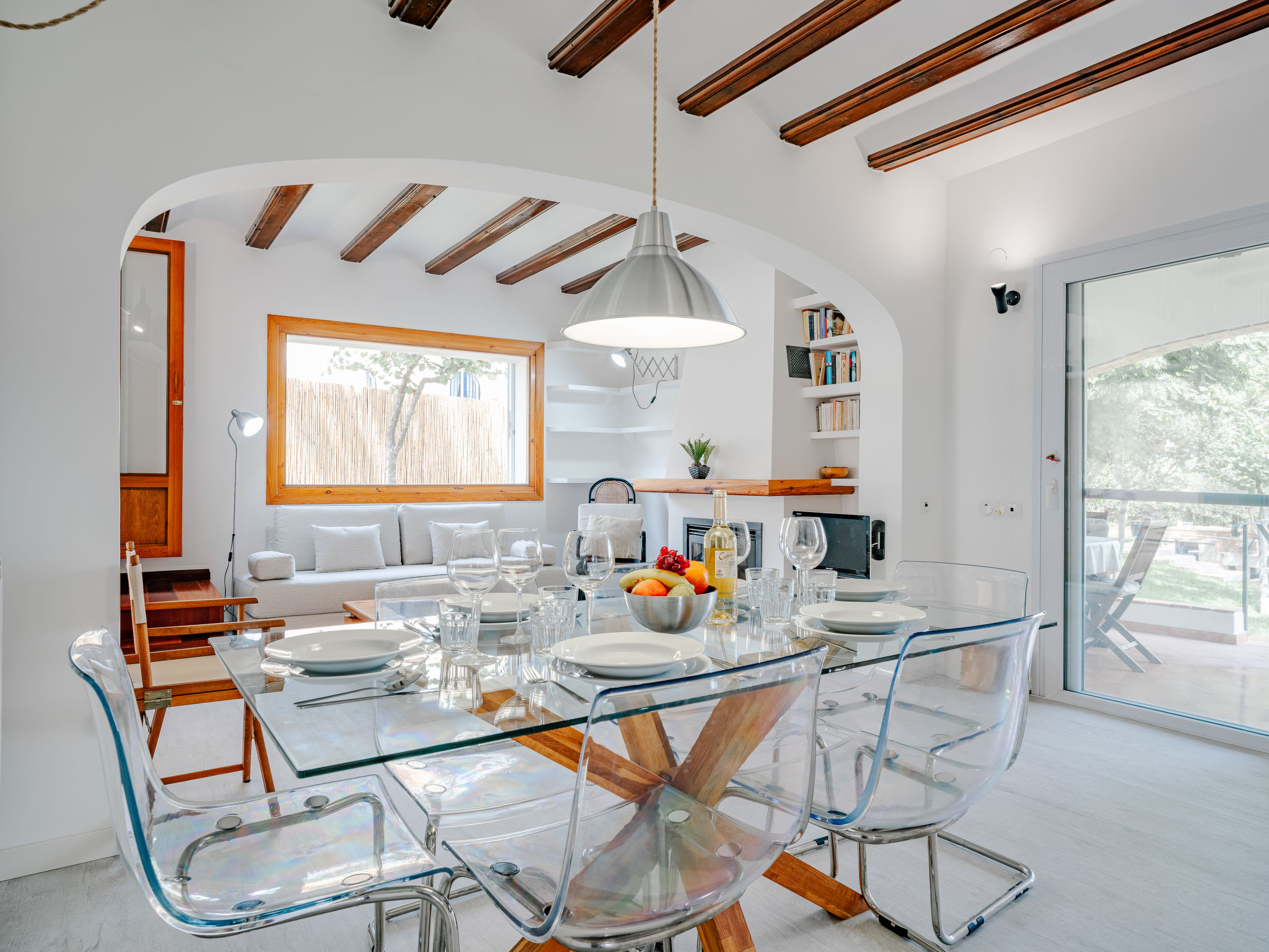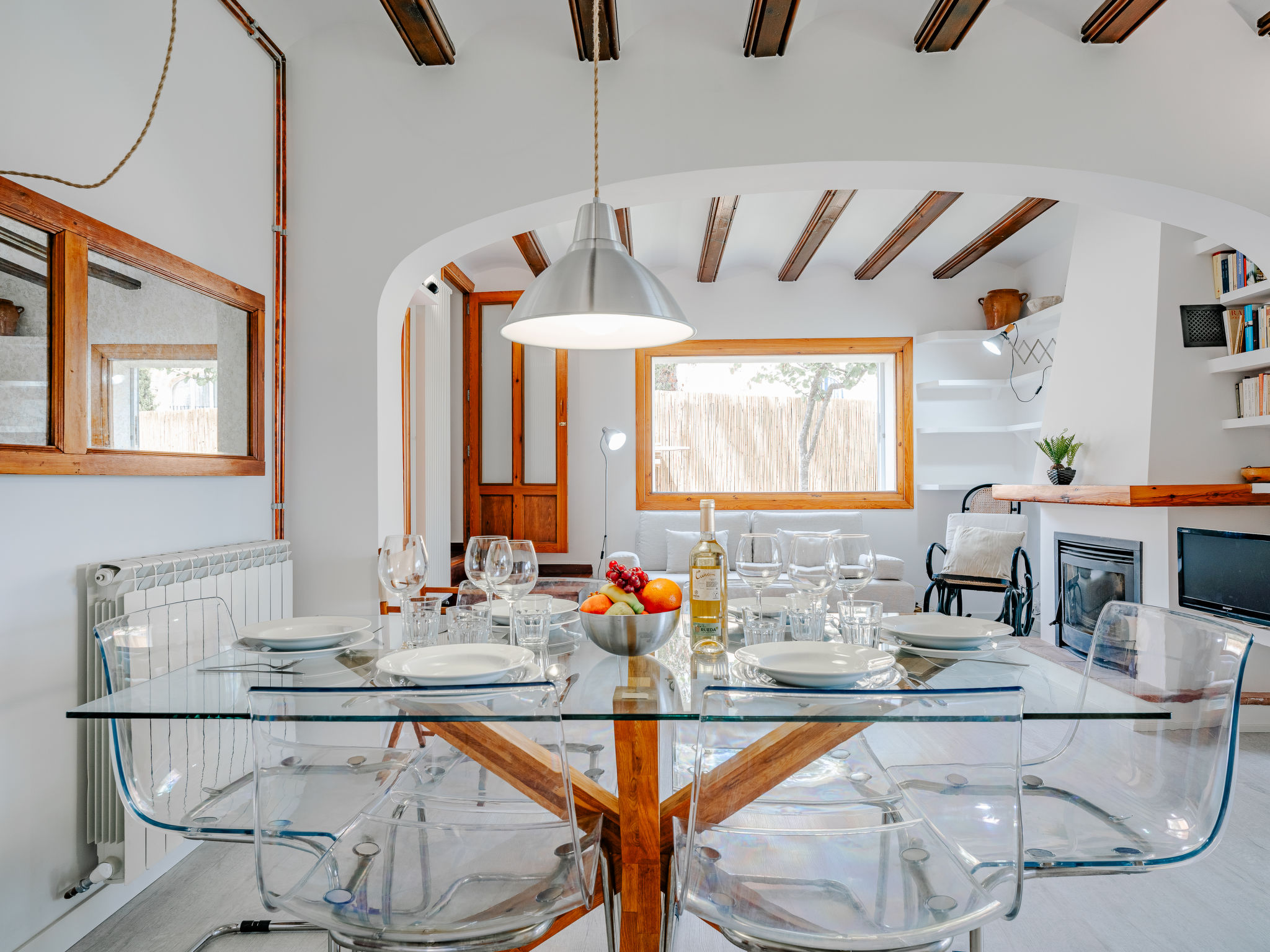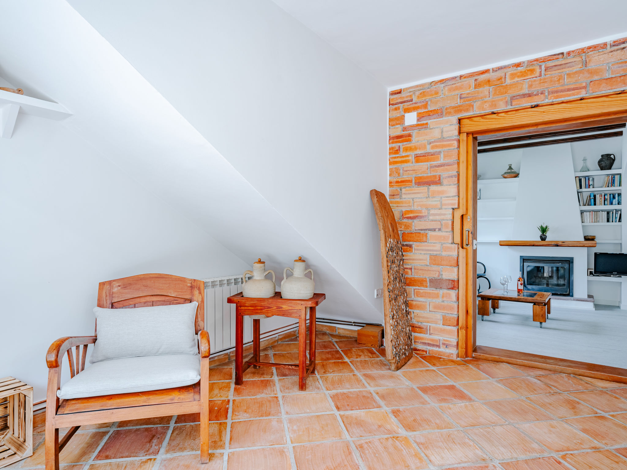 4-Zimmer-Haus 120 m2 auf 2 Stockwerken. Hell, zweckmässig und komfortabel eingerichtet: Wohn-/Esszimmer mit offenem Kamin und Digital-TV. Ausgang zur Terrasse. 1 Zimmer mit 1 franz. Bett (150 cm, Länge 200 cm). 1 Zimmer mit 2 Betten (90 cm, Länge 190 cm). Küche (4 Kochplatten, Backofen, Geschirrspüler, Mikrowelle, Tiefkühler). Dusche/Bidet/WC. Obergeschoss: 1 Zimmer mit 2 Betten (90 cm, Länge 190 cm), Bad/WC. Ausgang zur Terrasse. Terrasse überdacht. Terrassenmöbel, Gartengrill, Liegestühle (6). Zur Verfügung: Waschmaschine, Bügeleisen, Kinderhochstuhl, Babybett bis 2 Jahre. Internet (Wireless LAN, gratis). Parkplatz (eingezäunt). AT-421603-A