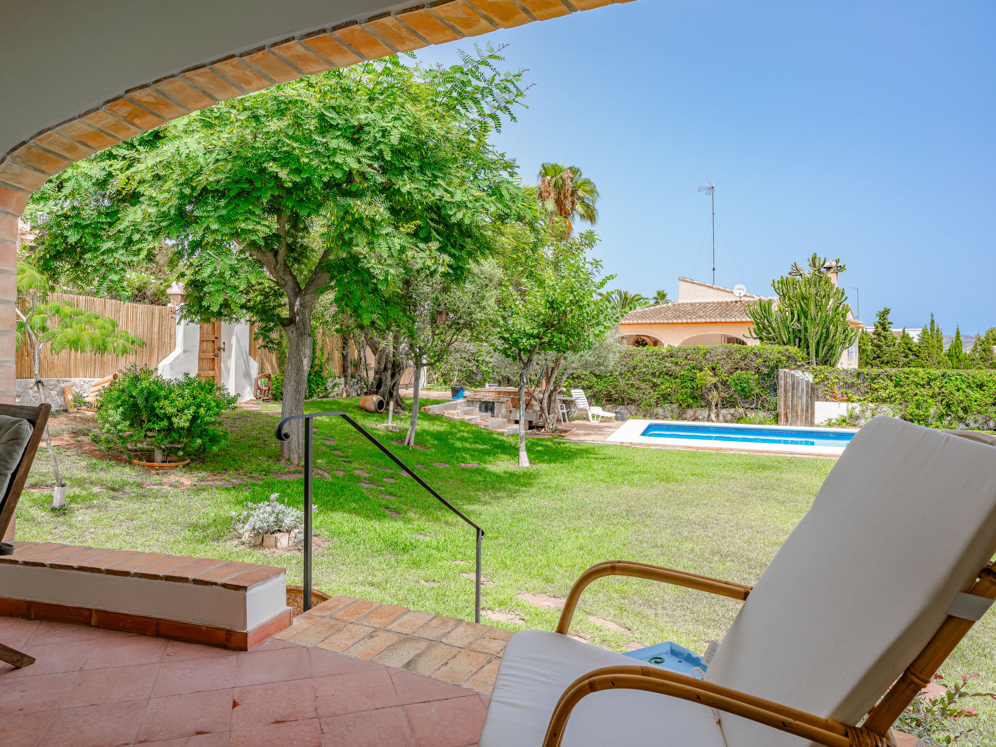Haus "Toscal". Im Ortsteil Toscal, 2.5 km vom Meer. Zur Alleinbenutzung: Garten (eingezäunt) mit Rasen und Bäumen, Schwimmbad (4 x 10 m, 140 - 200 cm tief, 01.01.-31.12.) mit Innentreppe. Im Hause: Dachterrasse. Einkaufsgeschäft 2.5 km, Supermarkt, Restaurant 500 m, Sandstrand "Arenal" 2.5 km. Jugendgruppen nur auf Anfrage.