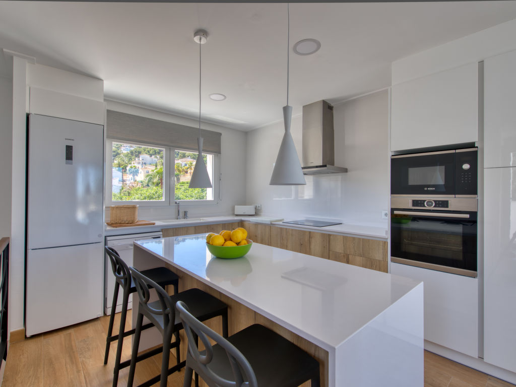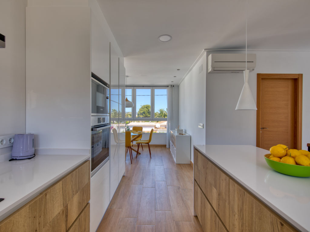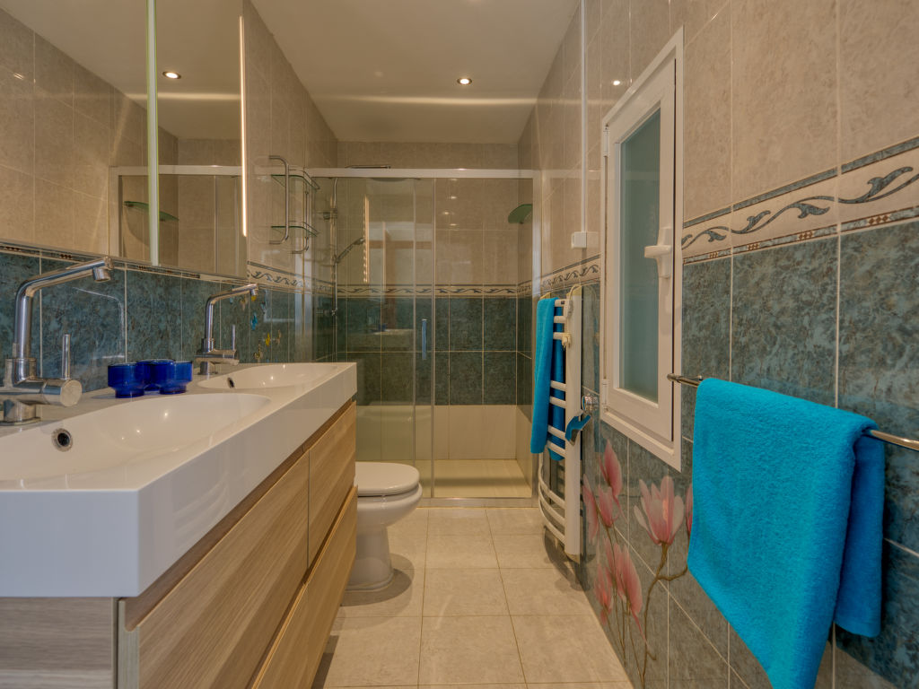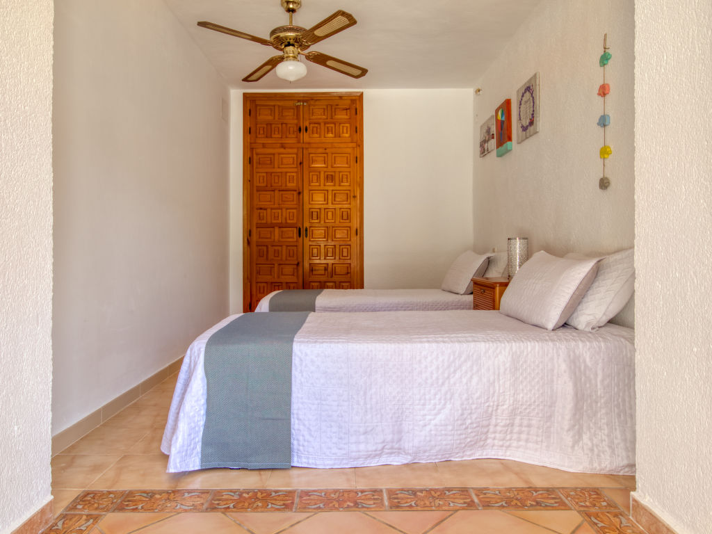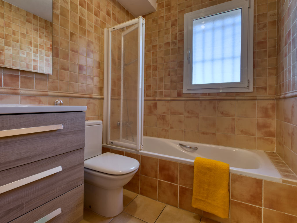 5-Zimmer-Haus 140 m2 auf 2 Stockwerken. Geräumig und hell, schön und geschmackvoll eingerichtet: grosses Wohn-/Esszimmer mit Schwedenofen, Digital-TV, Flachbildschirm und Stereoanlage. Ausgang zum Garten, zum Schwimmbad. 1 Zimmer mit 2 Betten (90 cm, Länge 180 cm), Dusche/WC und Ventilator. Ausgang zum Garten, zum Schwimmbad. 1 Zimmer mit 1 franz. Bett (140 cm, Länge 180 cm), Ventilator. Bad/WC. Obergeschoss: Esszimmer mit Klimaanlage und Warmluftheizung. 1 Zimmer mit 1 franz. Bett (160 cm, Länge 190 cm), TV und Ventilator. Ausgang zur Terrasse. Offene Küche (Backofen, Geschirrspüler, 3 Induktionskochplatten, Mikrowelle, Tiefkühler, elektrische Kaffeemaschine) mit Klimaanlage und Warmluftheizung. Dusche/WC. Terrasse überdacht Terrasse 12 m2. Terrassenmöbel, Gartengrill, Liegestühle. Sehr schöne Sicht auf das Meer, die Berge und das Tal. Zur Verfügung: Waschmaschine. Internet (Wireless LAN, gratis). Parkplatz (überdacht, eingezäunt, 2 Autos) beim Haus. Bitte beachten: TV nur ES. AT-437739-A