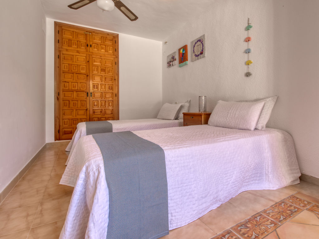 Schönes Einfamilienhaus "Anguilaga". Im Ortsteil Toscal, ruhige, sonnige Lage in einem Wohnquartier, 3 km vom Meer. Zur Alleinbenutzung: Garten 800 m2 (eingezäunt) mit Pflanzen und Blumen, Schwimmbad (4 x 8 m, 01.01.-31.12.) mit Innentreppe. Supermarkt 2 km, Restaurant 2 km, Sandstrand "Arenal" 3 km. Sporthafen 3 km, Jacht-Hafen 3 km, Surfschule 3 km, Tennis 3 km. Jugendgruppen nur auf Anfrage.