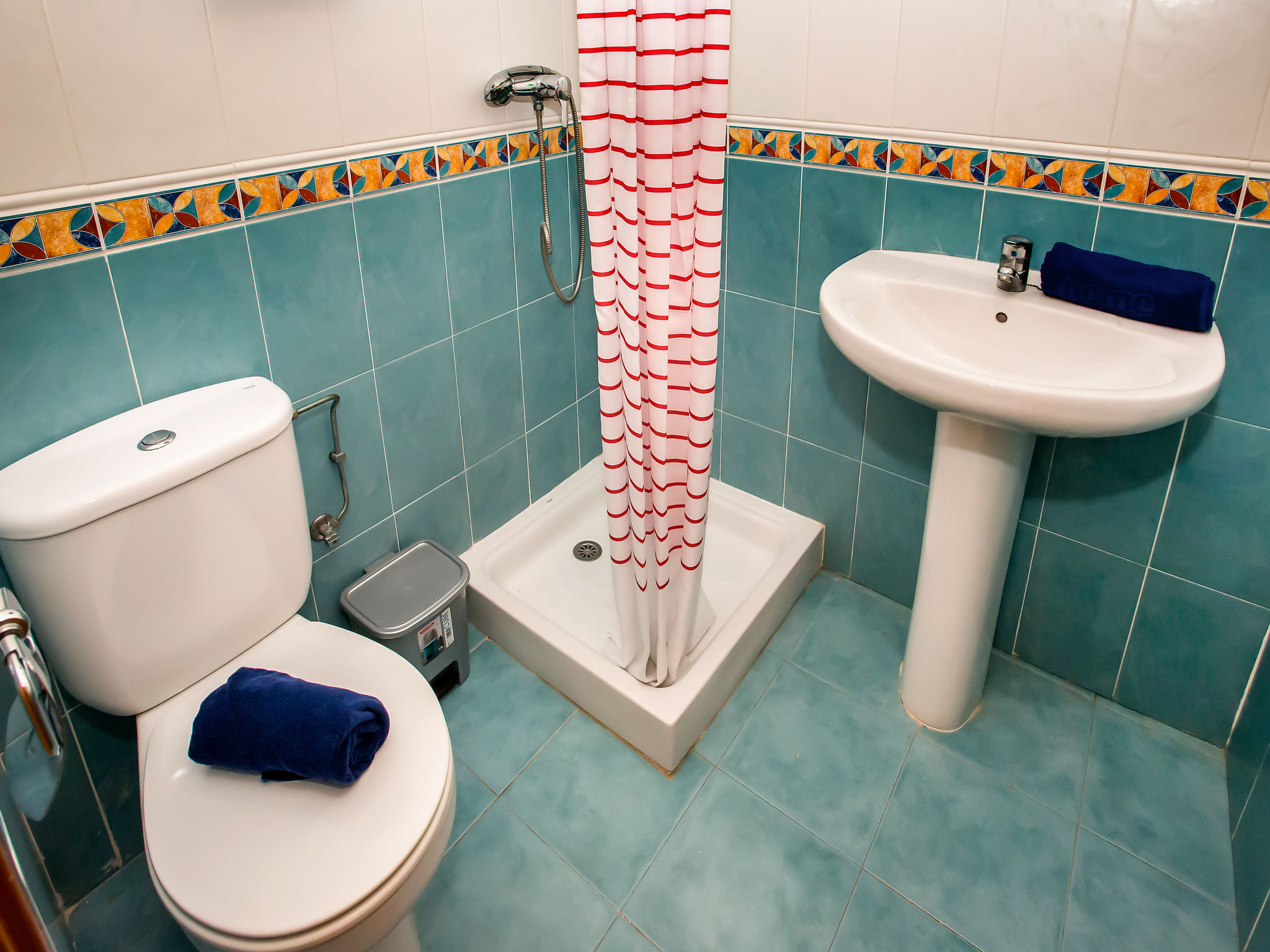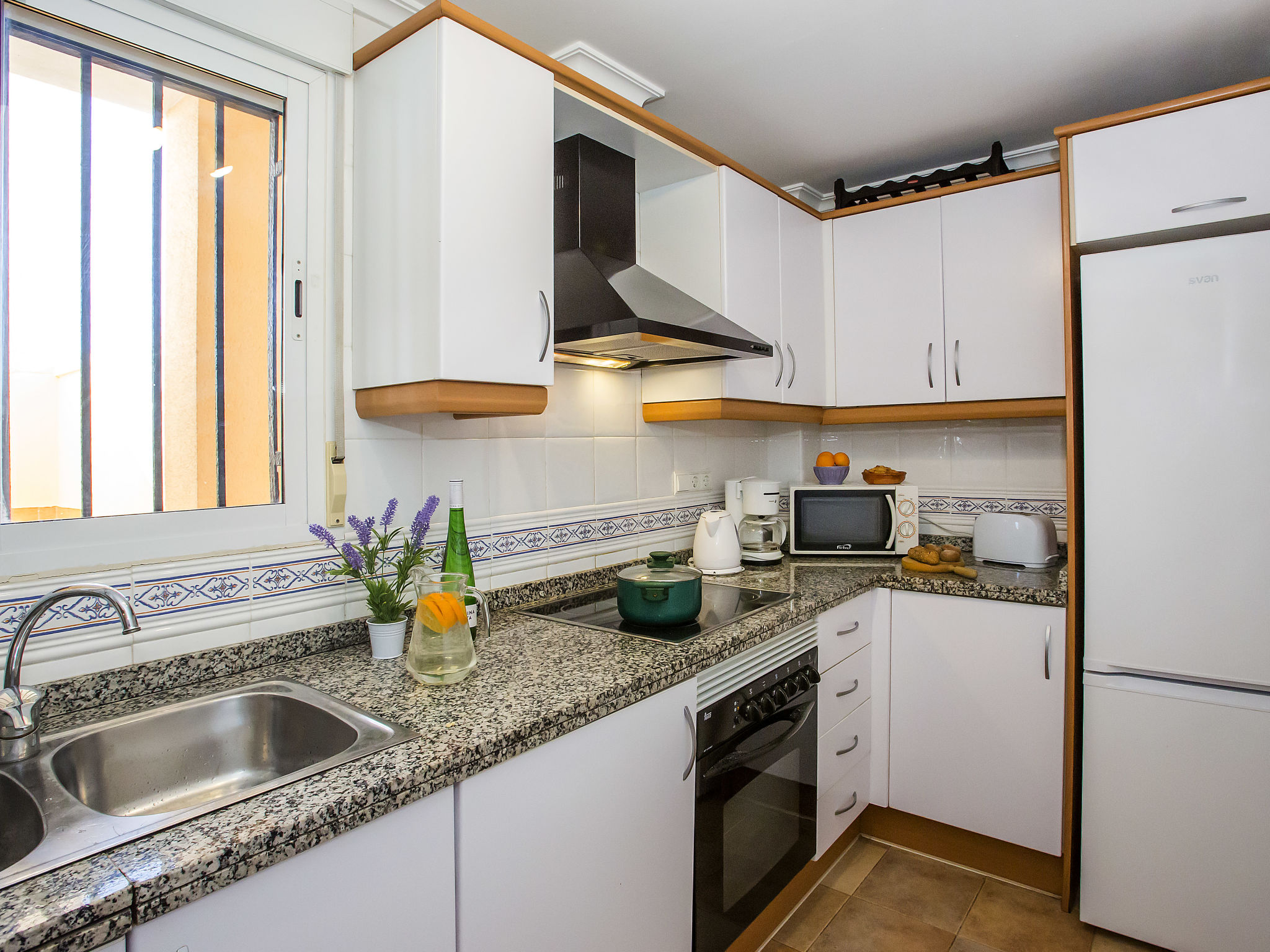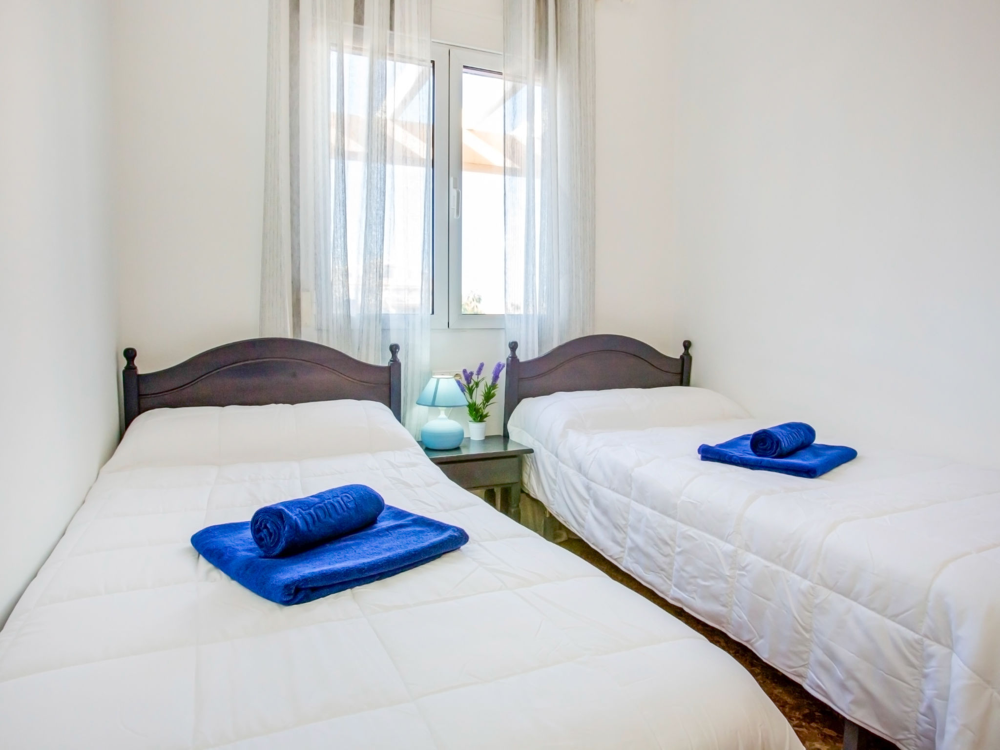 "Luz del Mediterraneo", 3-Zimmer-Wohnung 60 m2 im 2. Stock. Geräumig und hell, schön und geschmackvoll eingerichtet: Wohn-/Esszimmer mit Sat-TV (Flachbildschirm), DVD, Klimaanlage und Warmluftheizung. Ausgang zur Terrasse. 1 Zimmer mit 1 franz. Bett (1 x 150 cm, Länge 190 cm), Klimaanlage und Warmluftheizung. 1 Zimmer mit 2 Betten (90 cm, Länge 190 cm), E-Heizofen. Küche (Backofen, 4 Glaskeramikherd Platten, Toaster, Wasserkocher, Mikrowelle, Tiefkühler, elektrische Kaffeemaschine). Bad/Bidet/WC, Dusche/WC. Grosse Terrasse 25 m2 teilweise überdacht. Terrassenmöbel, Liegestühle (2). Schöne Sicht auf die Berge, das Schwimmbad und den Garten. Zur Verfügung: Waschmaschine, Wäschetrockner, Bügeleisen, Kinderhochstuhl, Babybett bis 2 Jahre, Haartrockner. Internet (Wireless LAN, gratis). Parkplatz Nr. 68 (überdacht). 1 Haustier/Hund erlaubt. AT-423408-A