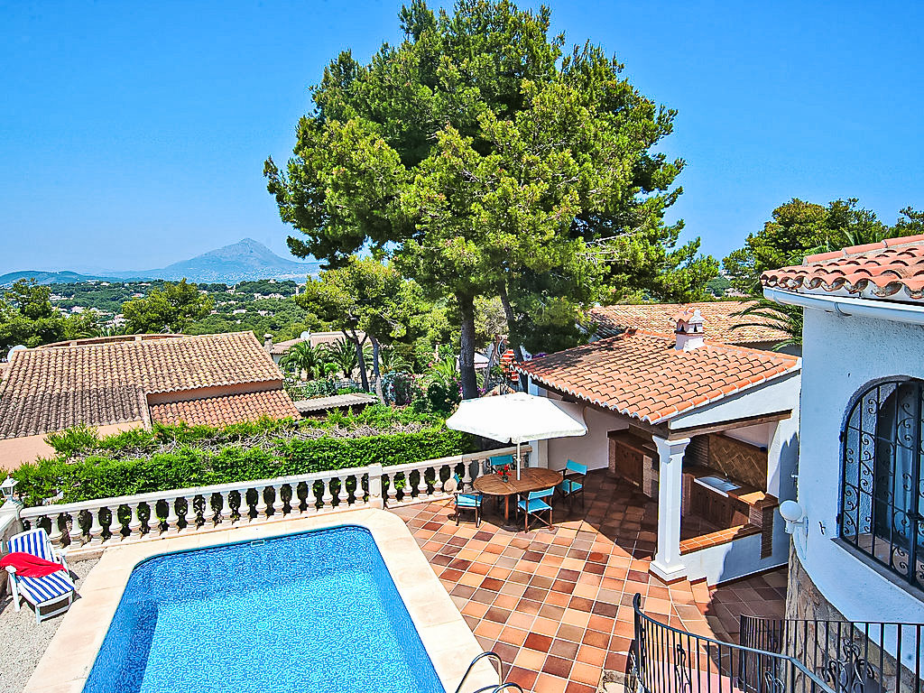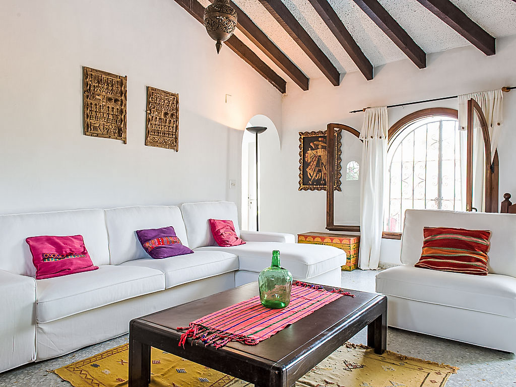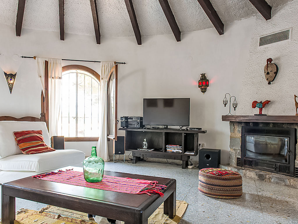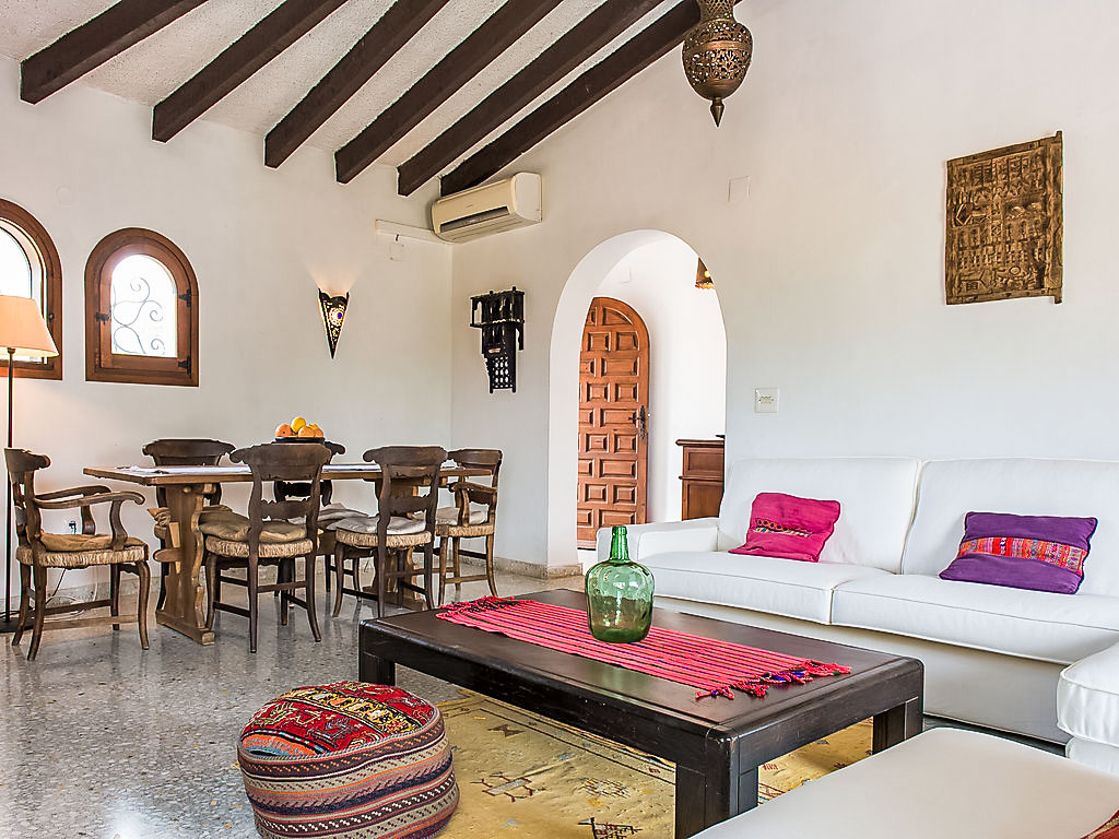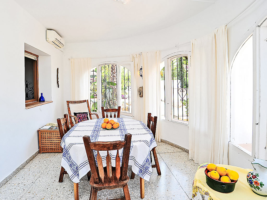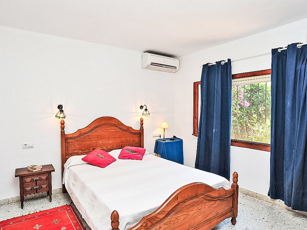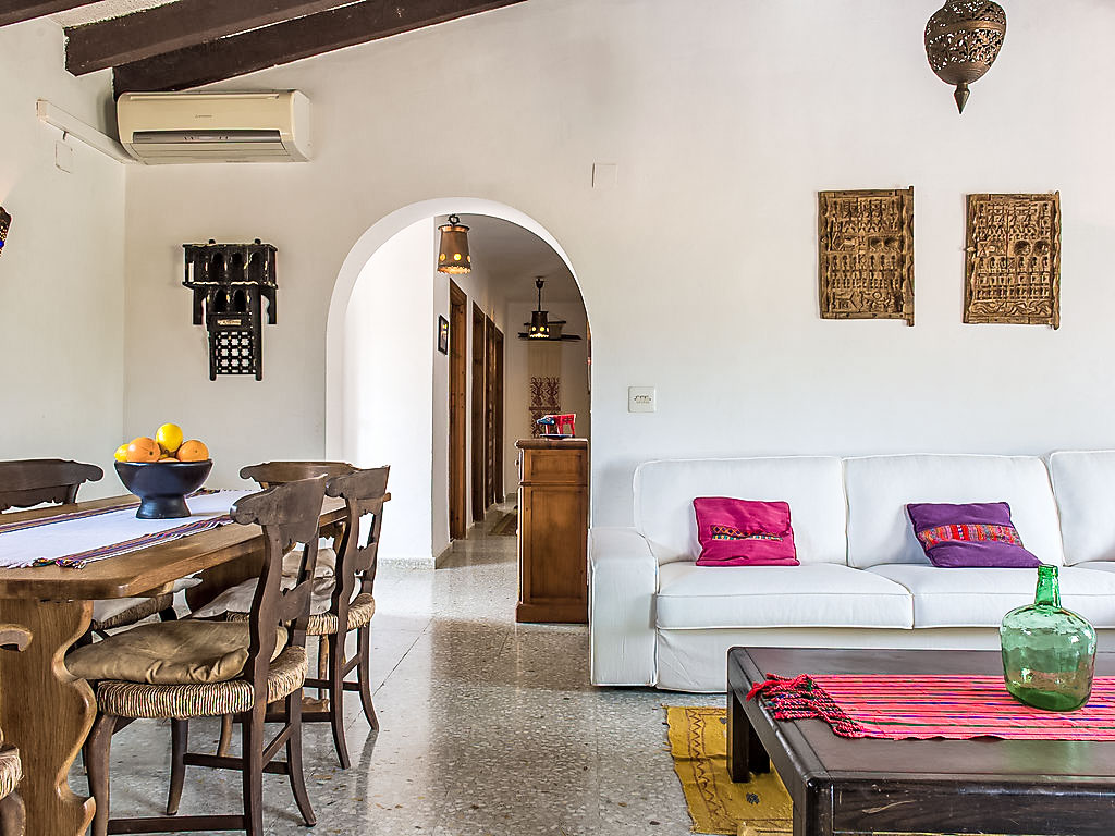 4-Zimmer-Haus 130 m2. Komfortabel eingerichtet: Wohn-/Esszimmer mit Schwedenofen, Sat-TV und Digital-TV (Flachbildschirm), Klimaanlage. Ausgang zur Veranda. 1 Zimmer mit 2 Betten (90 cm, Länge 200 cm), Klimaanlage. 1 Zimmer mit 1 franz. Bett (150 cm, Länge 200 cm), Klimaanlage. 1 Zimmer mit 1 franz. Bett (155 cm, Länge 200 cm). Küche (Backofen, Geschirrspüler, 4 Induktionskochplatten, Toaster, Wasserkocher, Mikrowelle, Tiefkühler). 2 Duschen/Bidet/WC. Terrassenmöbel, Gartengrill. Zur Verfügung: Waschmaschine, Haartrockner. Internet (Wireless LAN, gratis). Maximal 1 Haustier/Hund erlaubt. Von der Dachterrasse schöne Sicht aufs Meer und Montgó. AT427048A